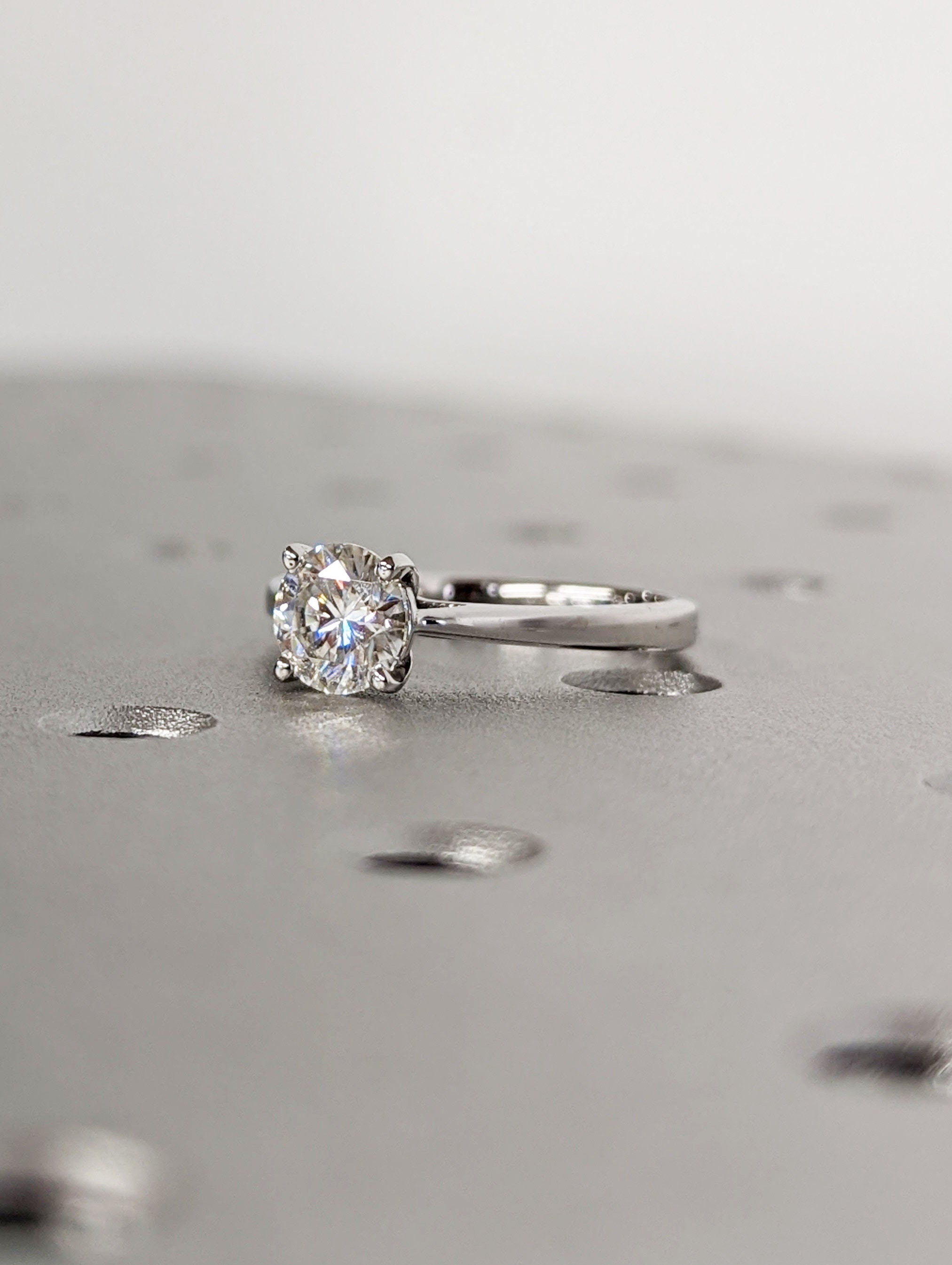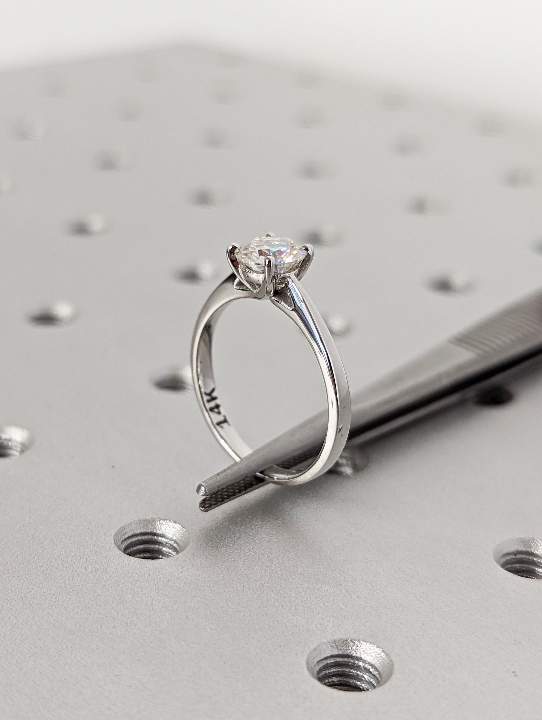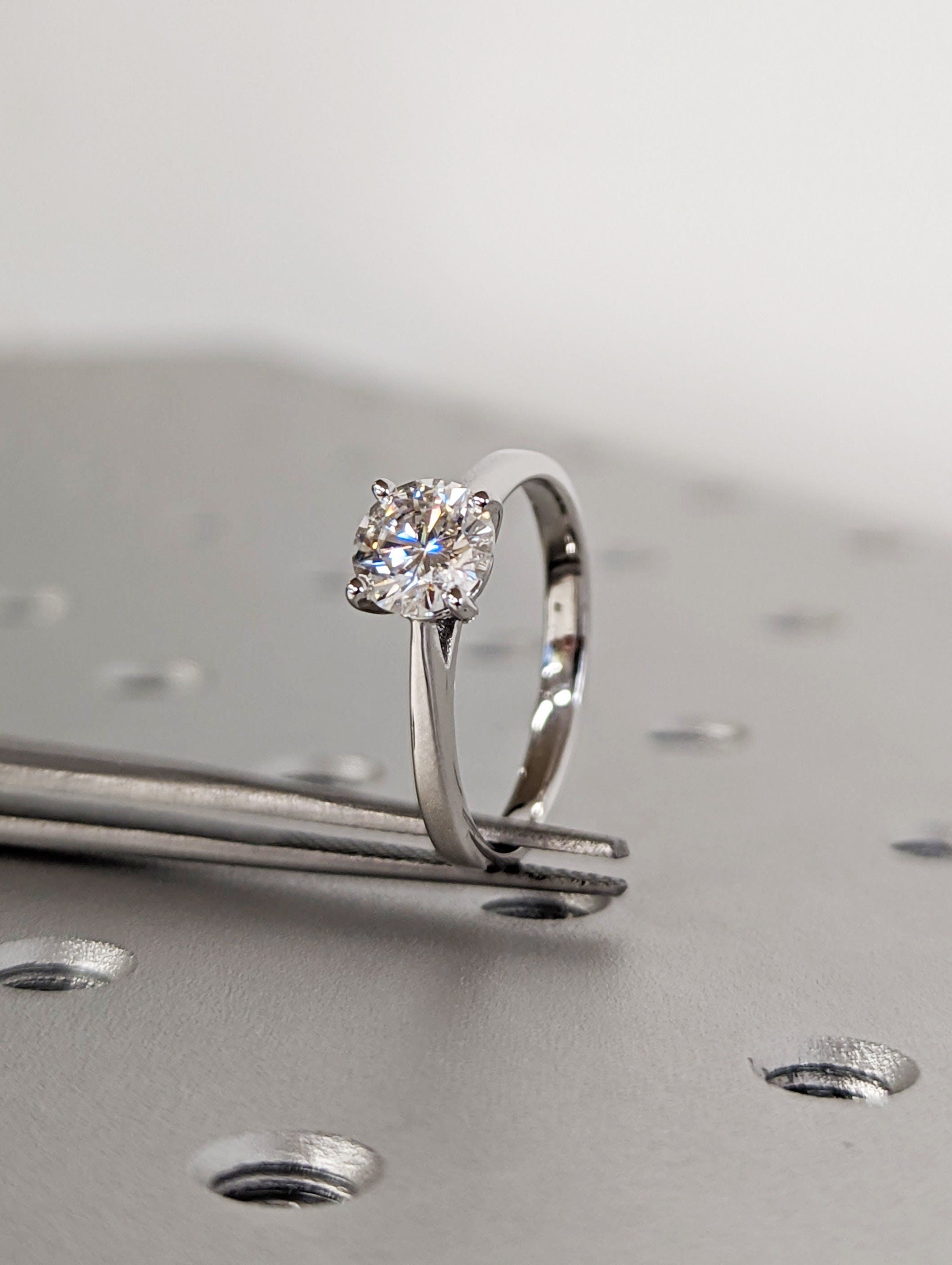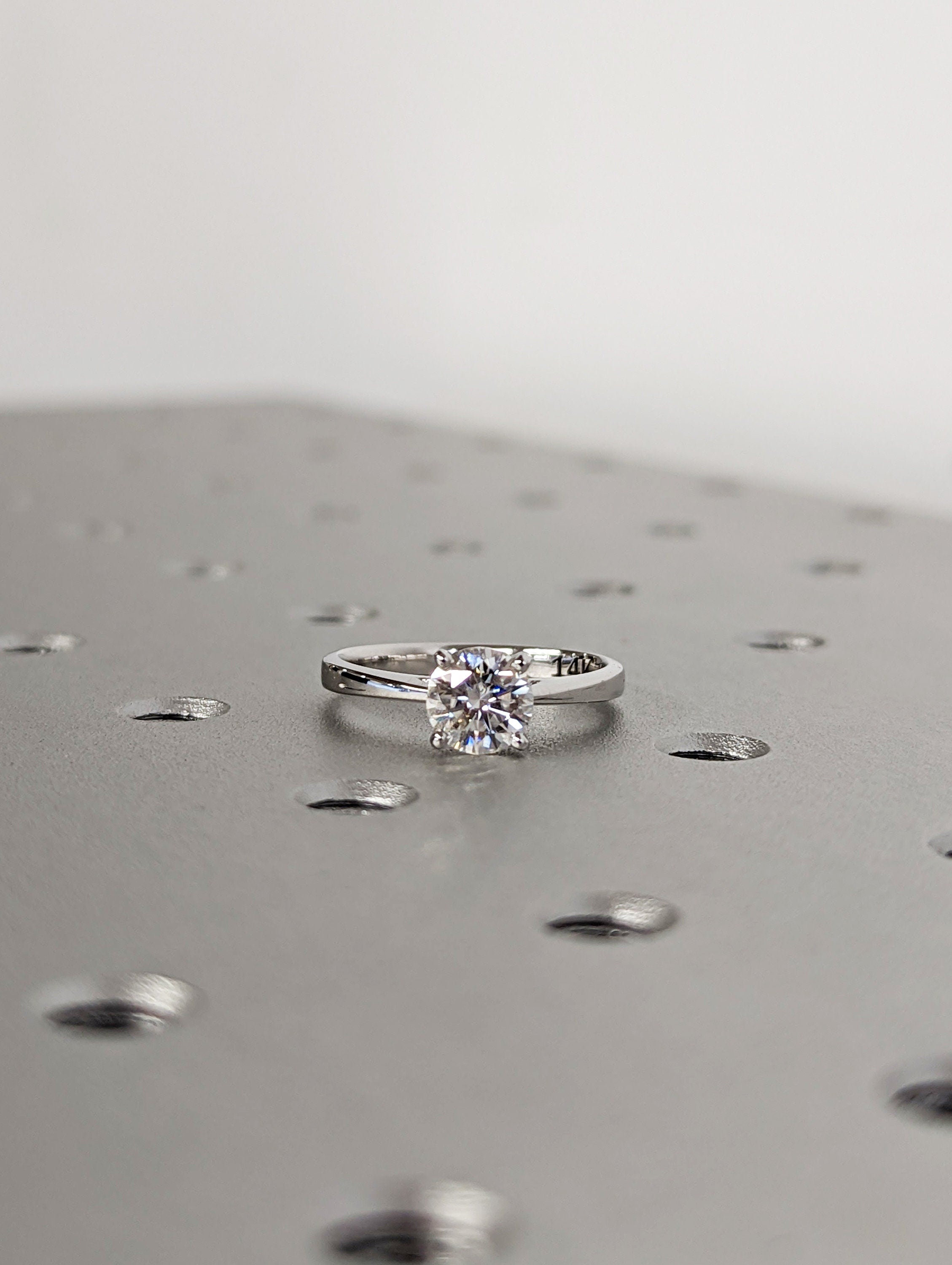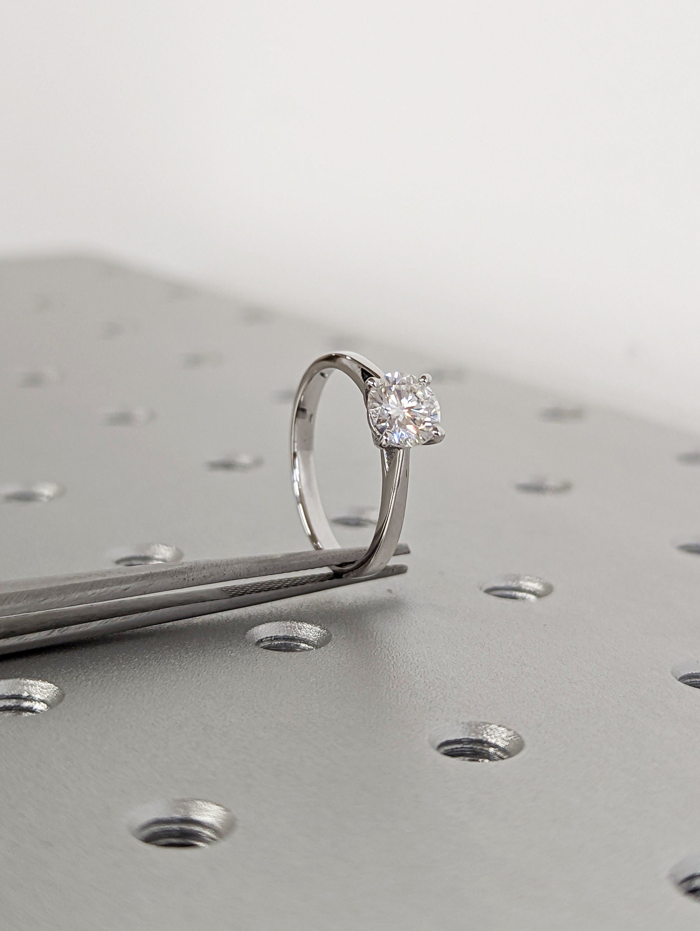 Solitaire Moissanite Engagement Ring Swirl Prongs Ring 14K White Gold Moissanite Ring Swirl Design Antique Engagement Ring Basket Setting