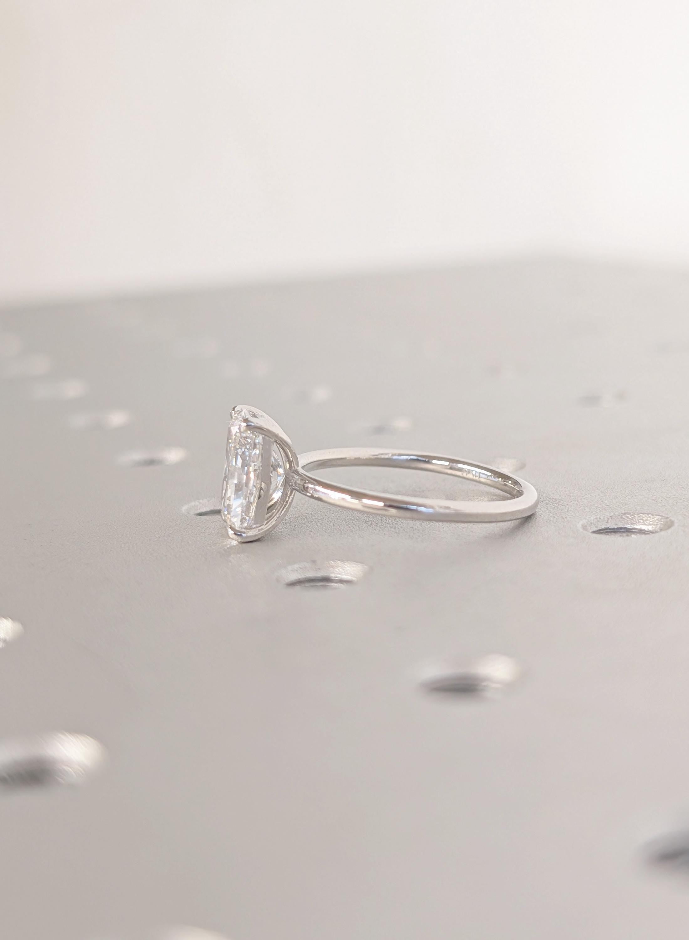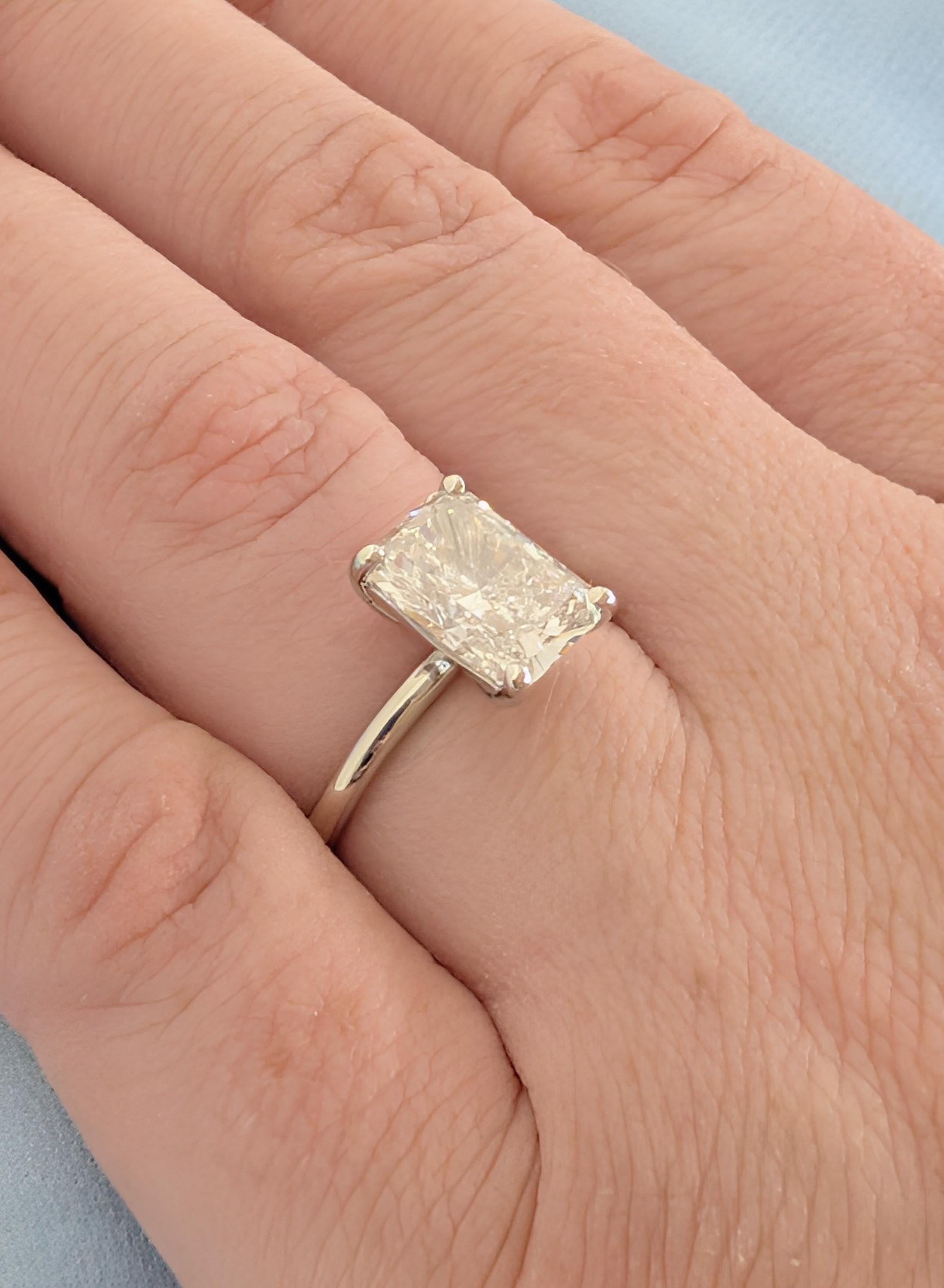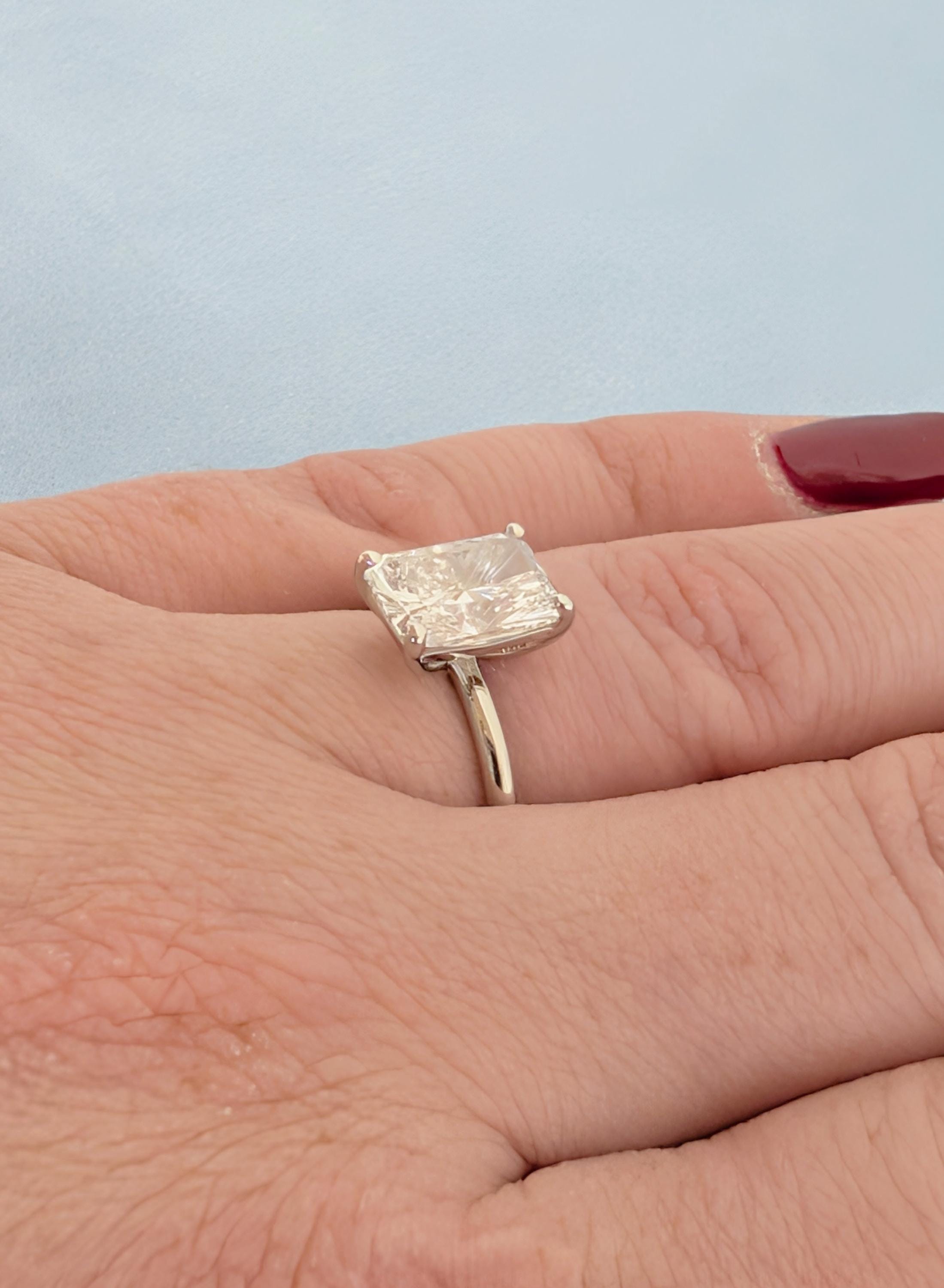 Solitaire Radiant Cut Platinum Diamond Ring, 14K / 18k Certified Lab Created Diamond Engagement Ring, Unique Wedding Jewelry, Statement Ring