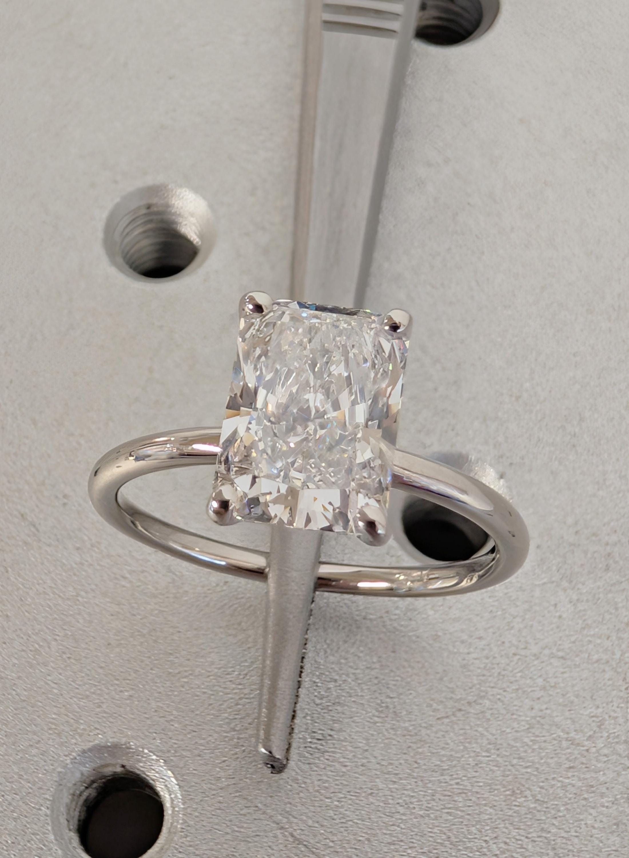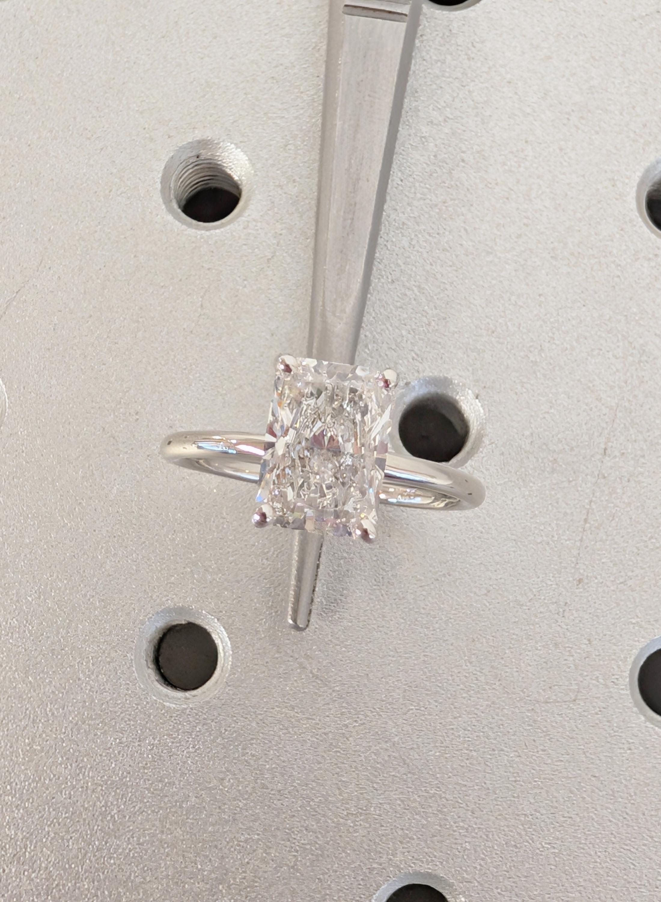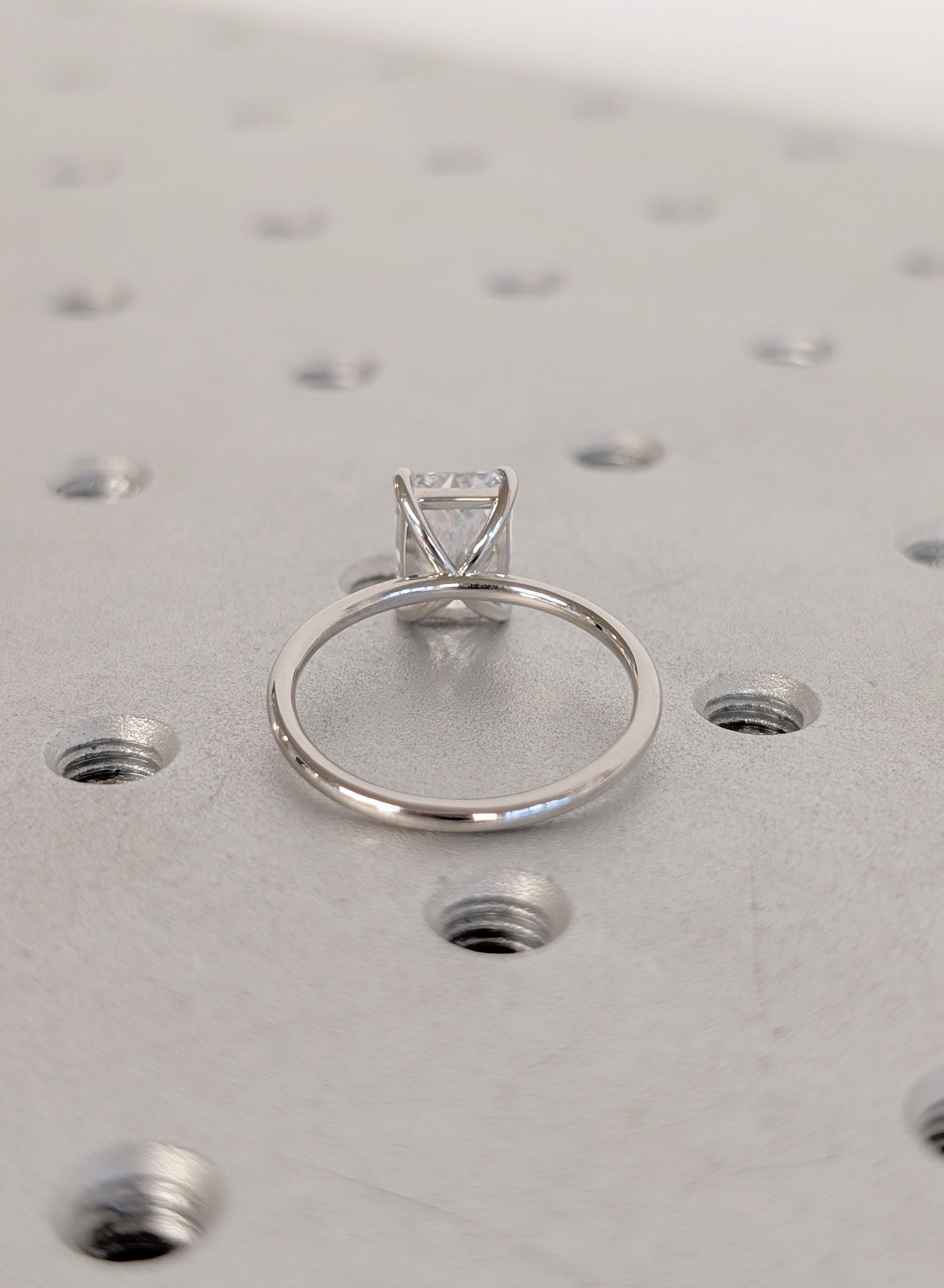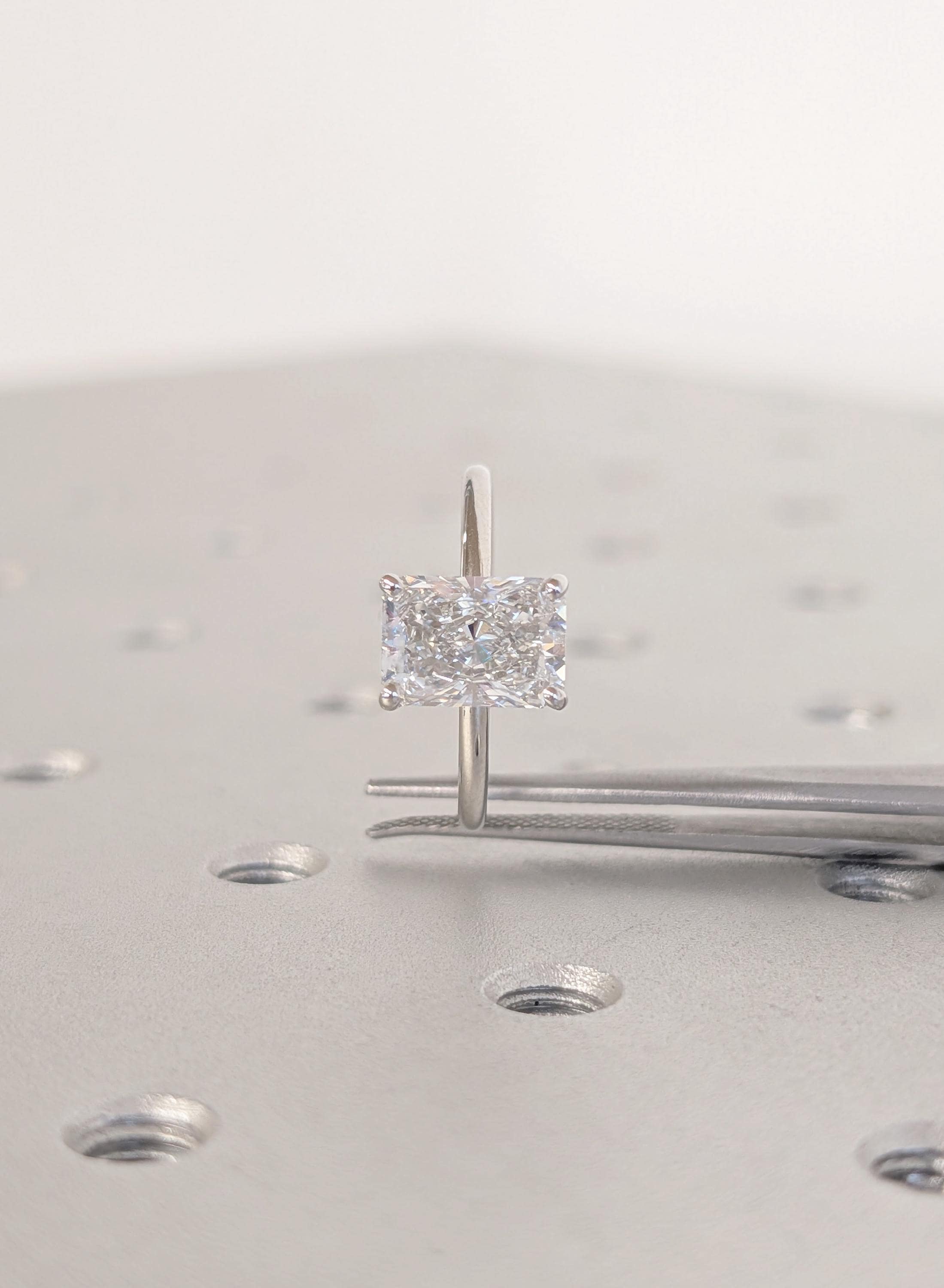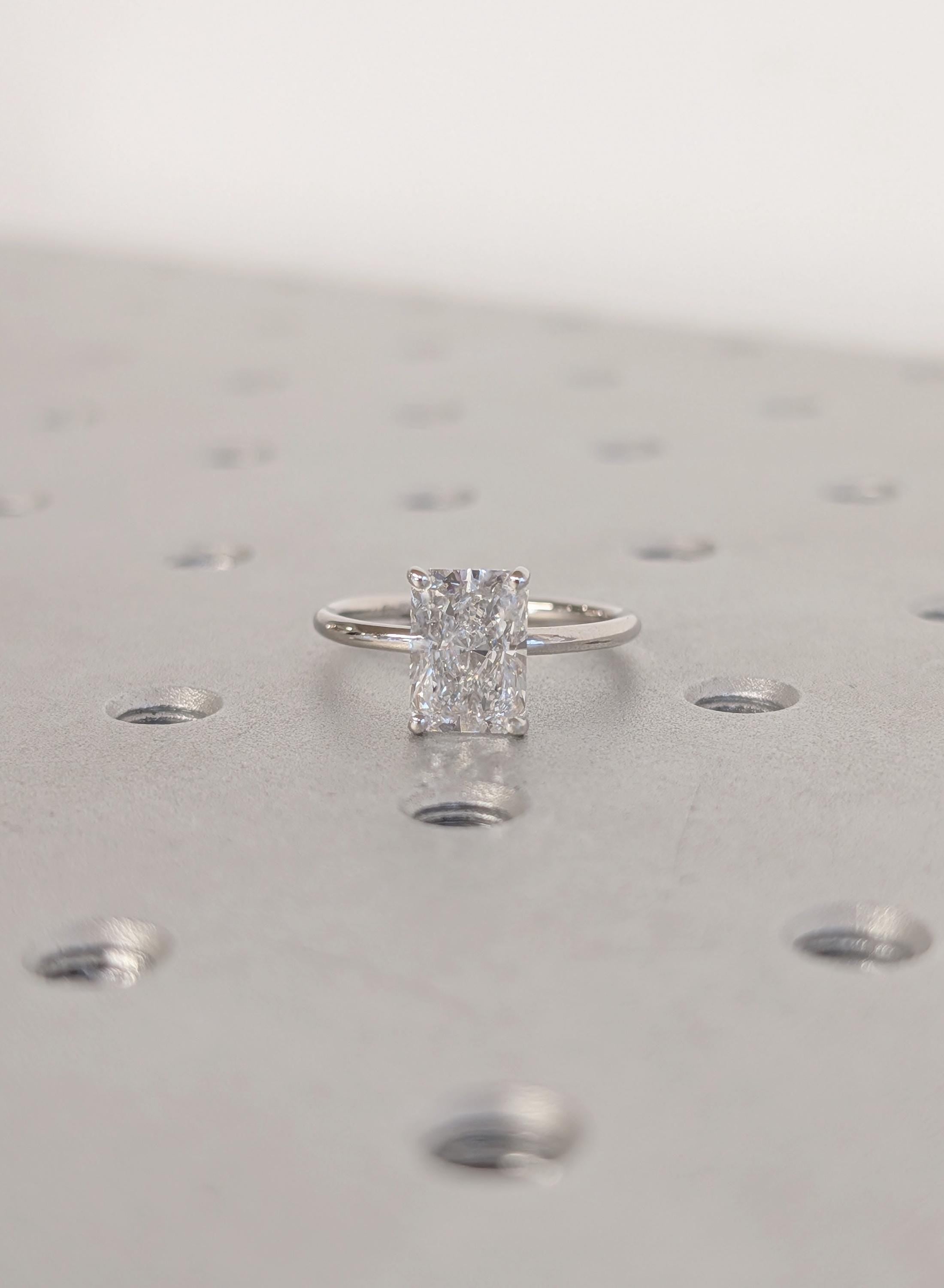 This engagement ring has radiant cut Lab Diamond center stone in prong setting to showcase the exceptional clarity and fire. A versatile addition to any jewelry collection, it serves as a beautiful wedding ring, bridal ring, or anniversary gift. Discover the brilliance of Lab Diamond with this timeless design, perfect for use as a promise ring or sophisticated everyday jewelry.