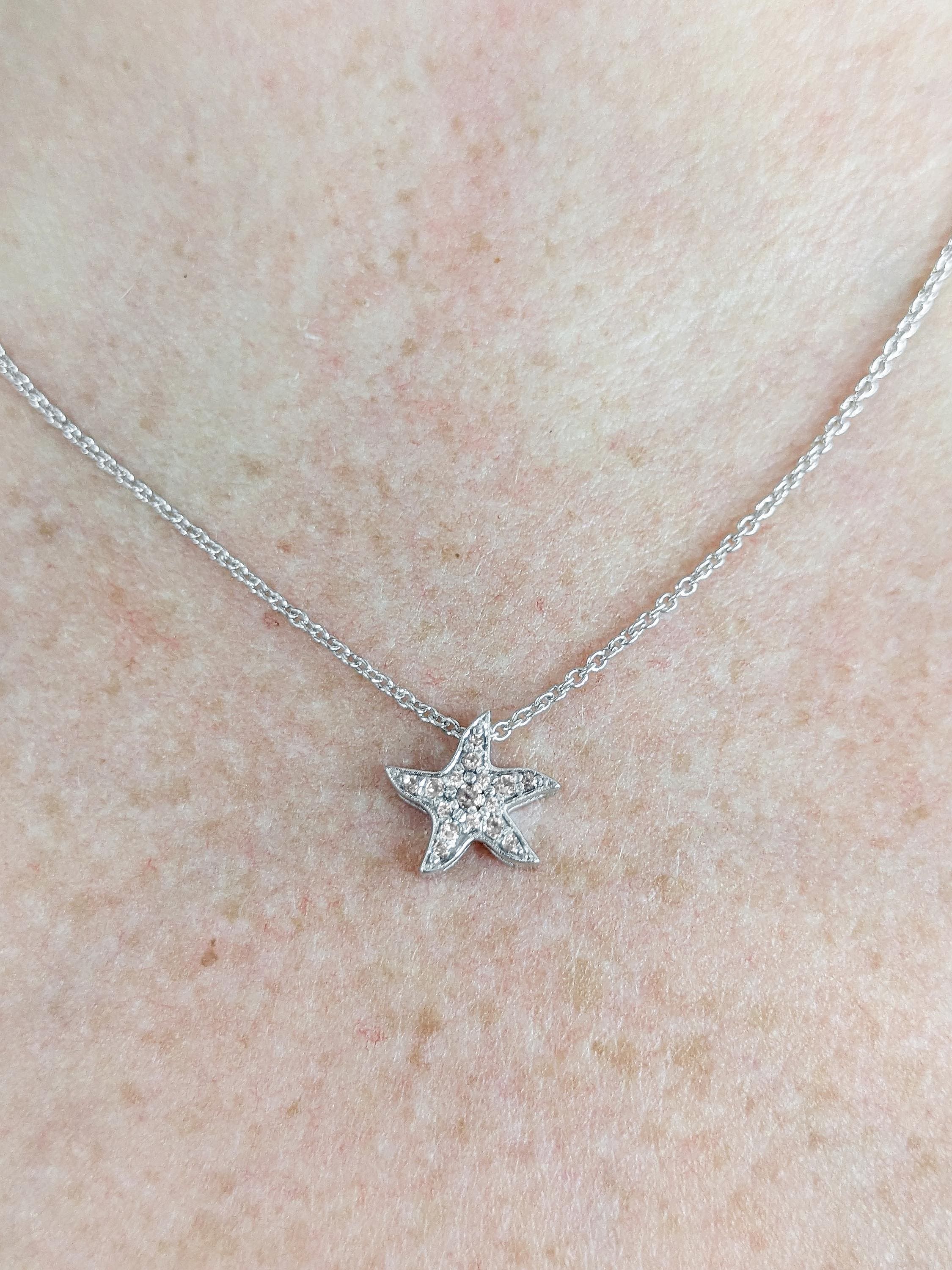 This necklace features a delicate star shaped pendant set with sparkling diamonds that catch the light with every movement. A dainty, feminine piece with a touch of celestial charm, perfect for any outfit. The diamonds are available in Natural Diamond, Lab Diamond and Moissanite so you can choose the option that suits you best.