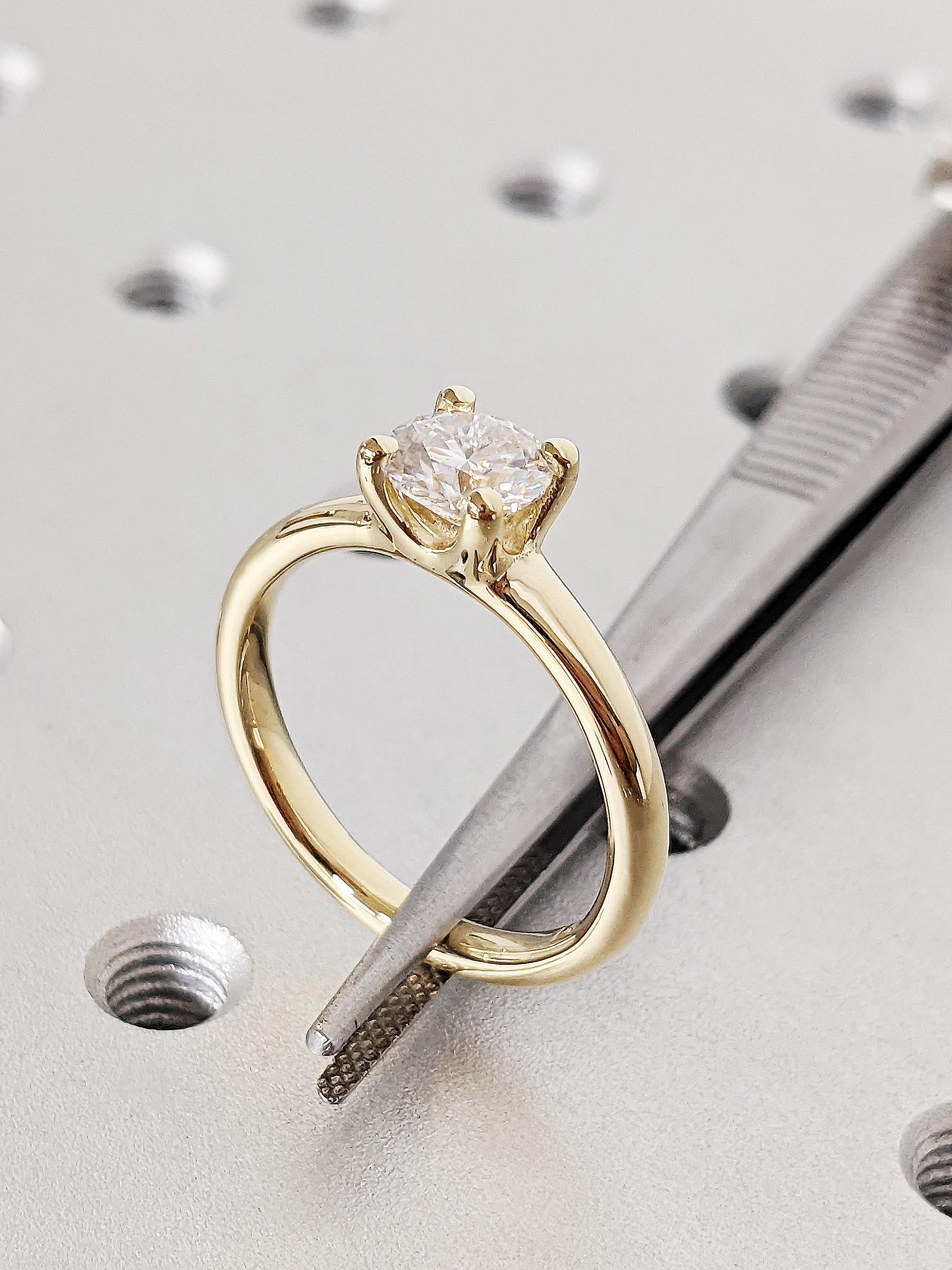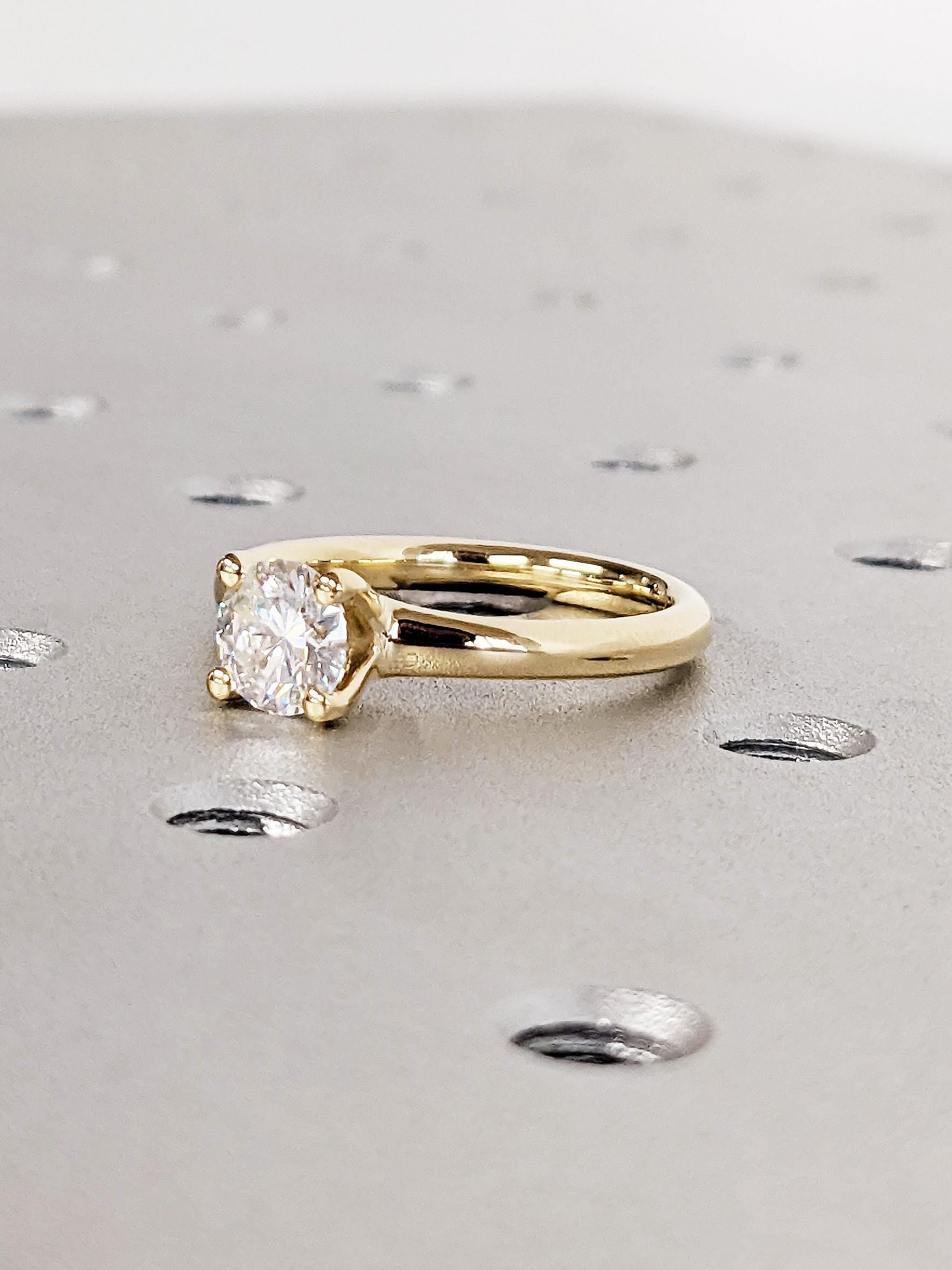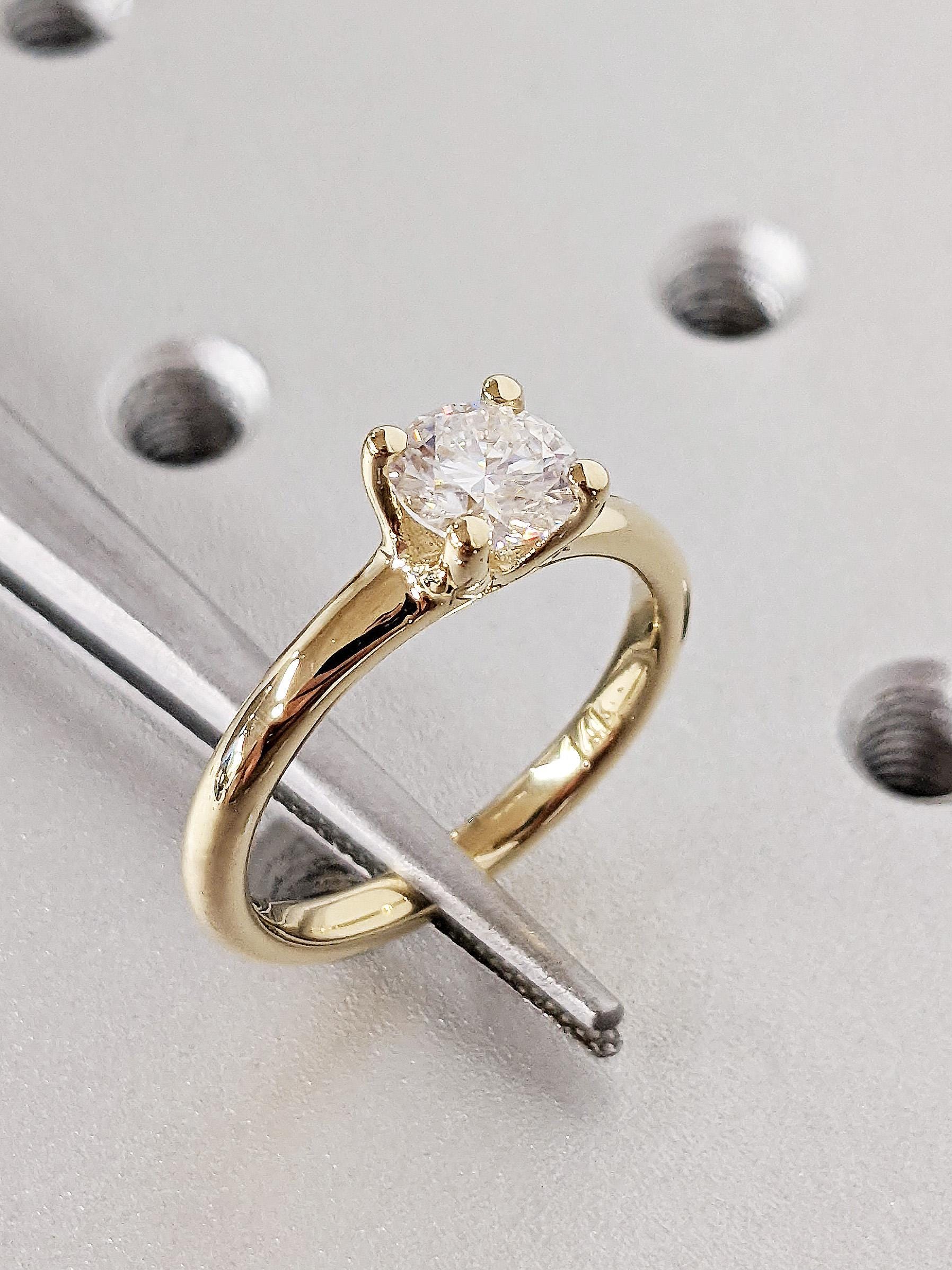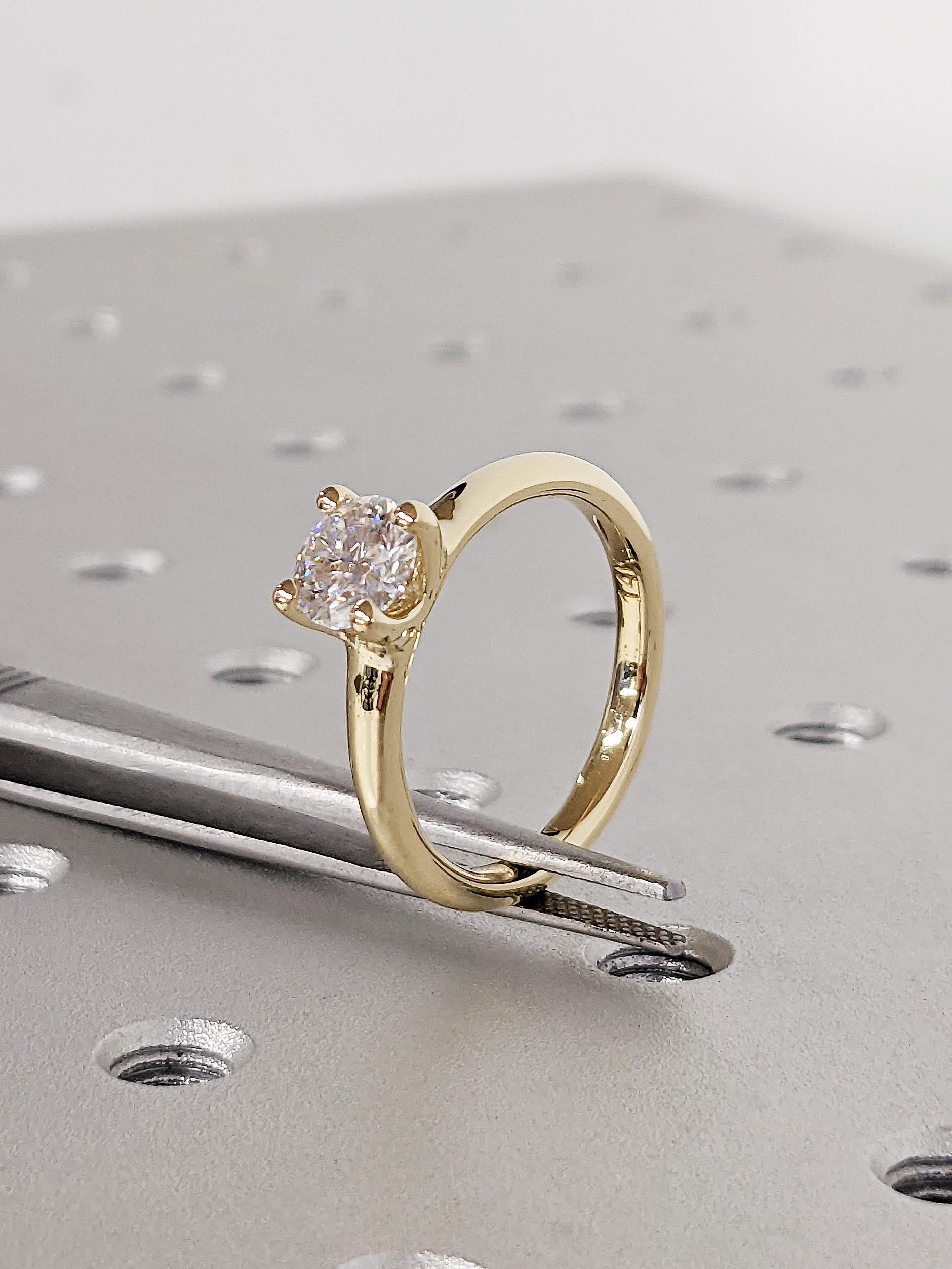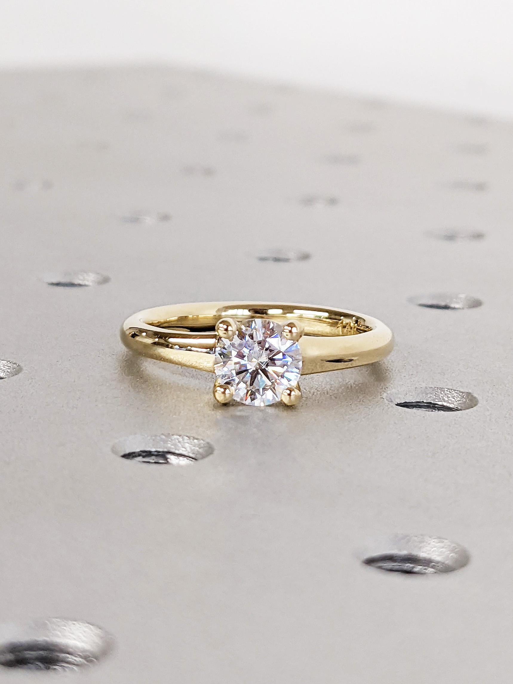 Sustainable Round Lab Diamond Classic Bridal Engagement Ring, 14k Yellow Gold White Diamond Ring, Gold Ring For Women, Custom Wedding Band