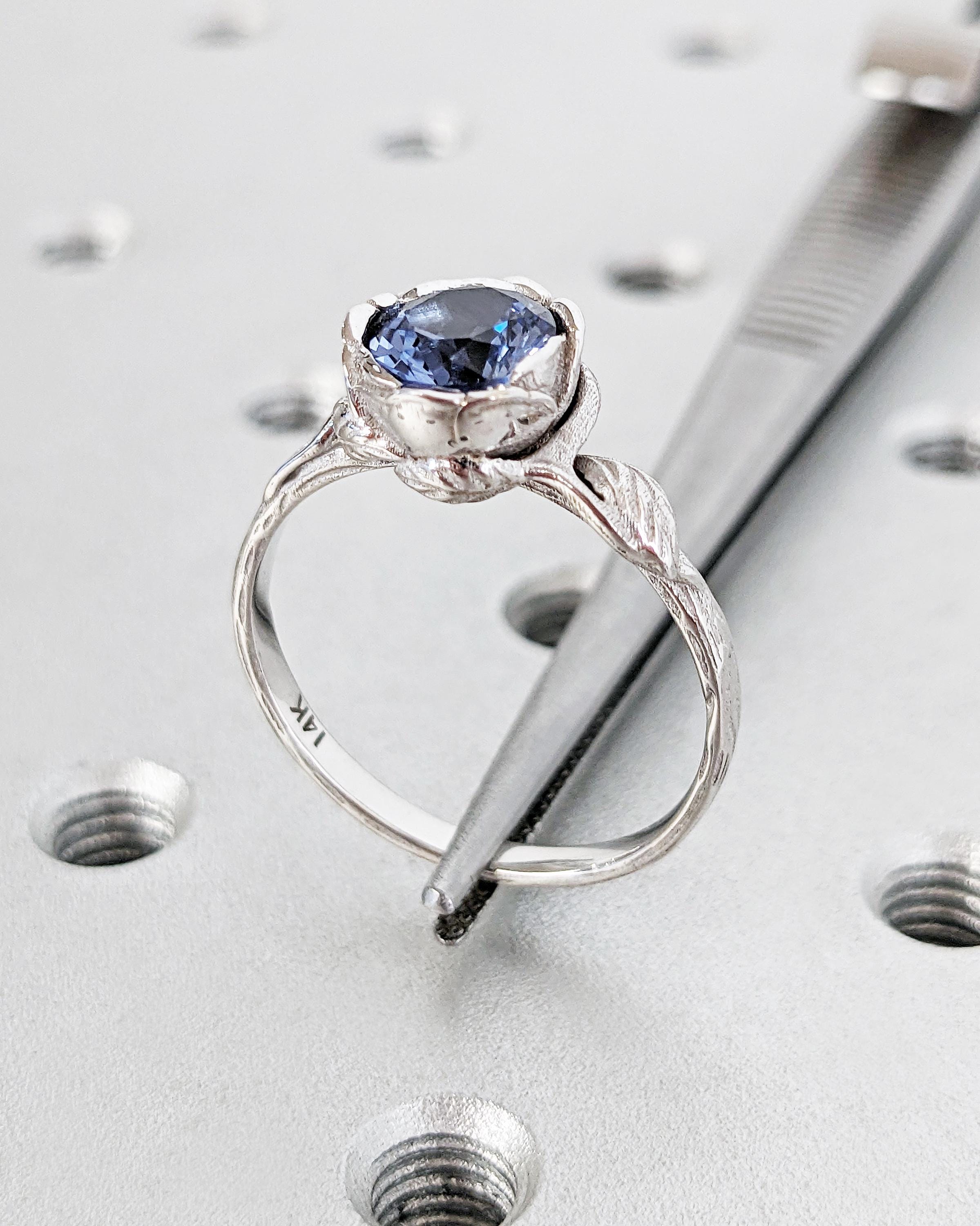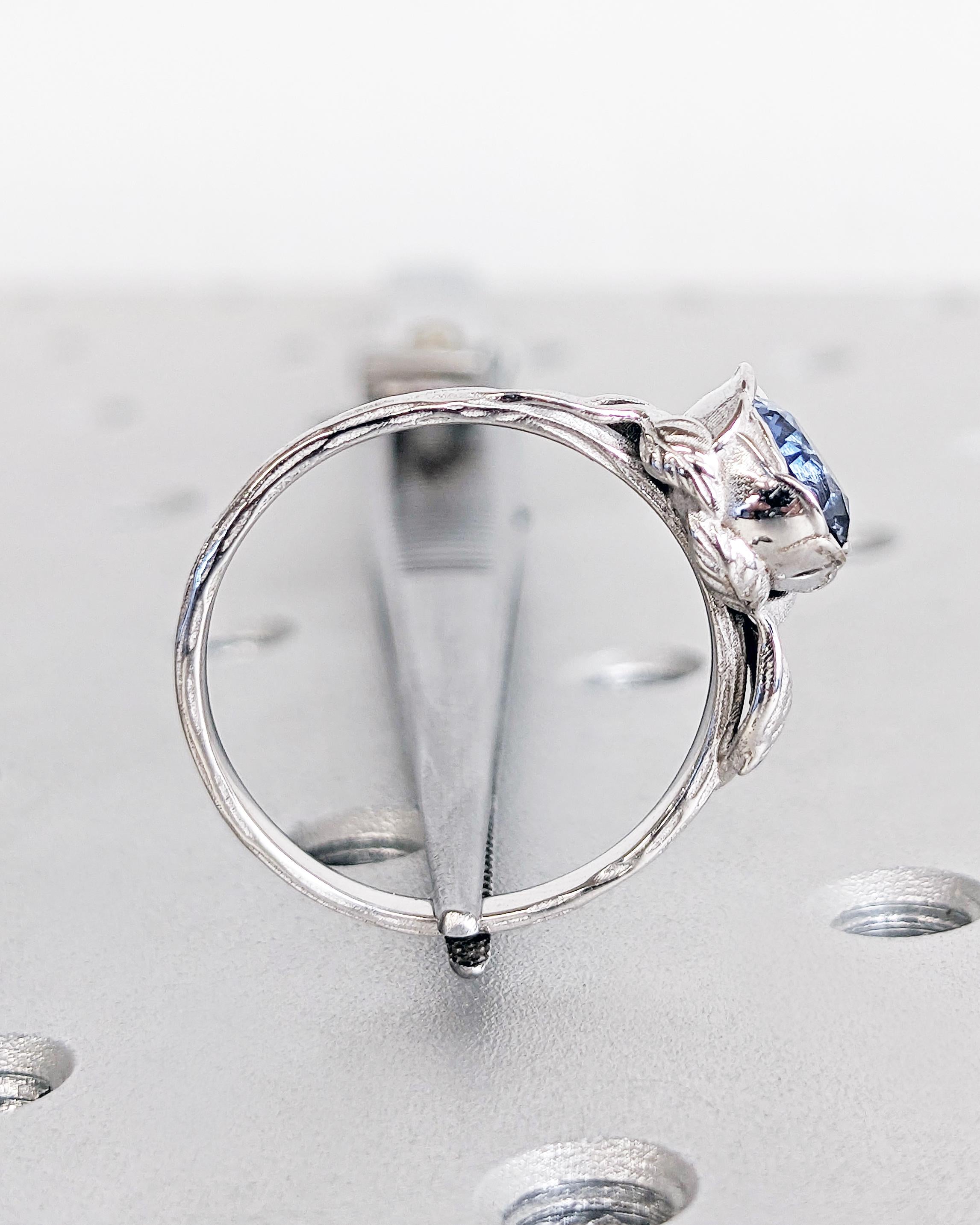 Tanzanite Floral Ring, Violet Purple Tanzanite Ring, Round Tanzanite Engagement Ring, White Gold Floral Promise Ring Women, Art Nouveau Ring