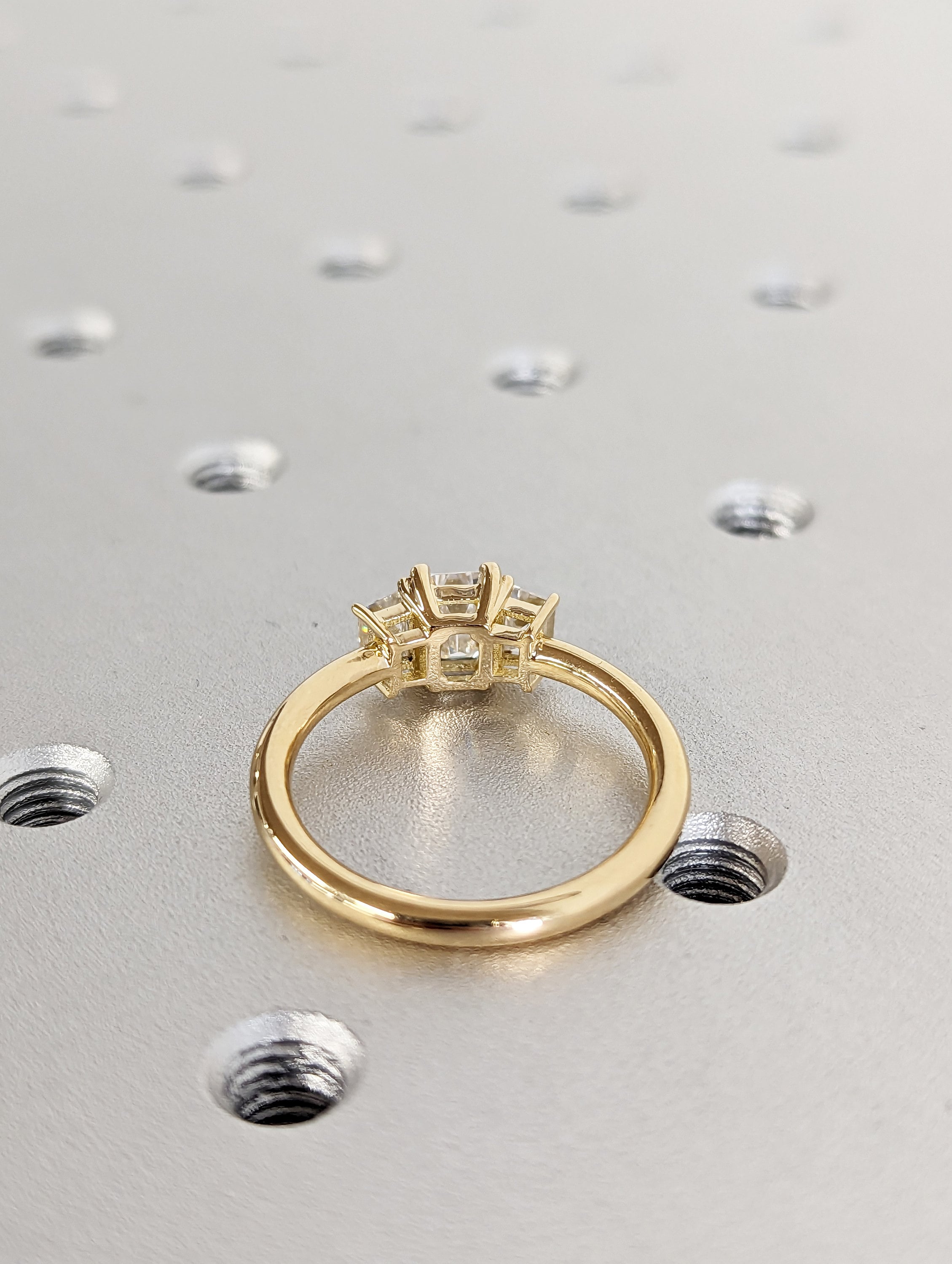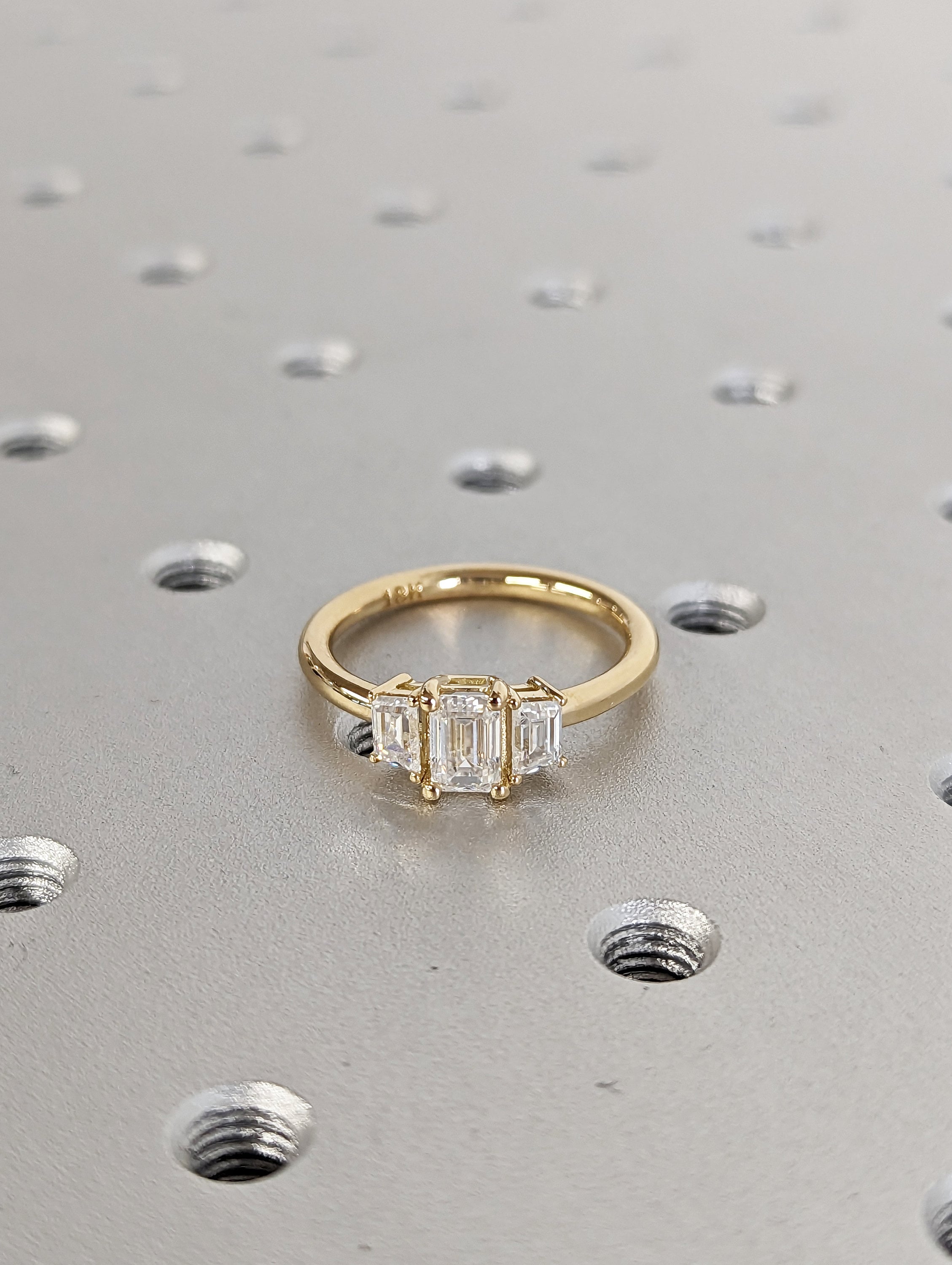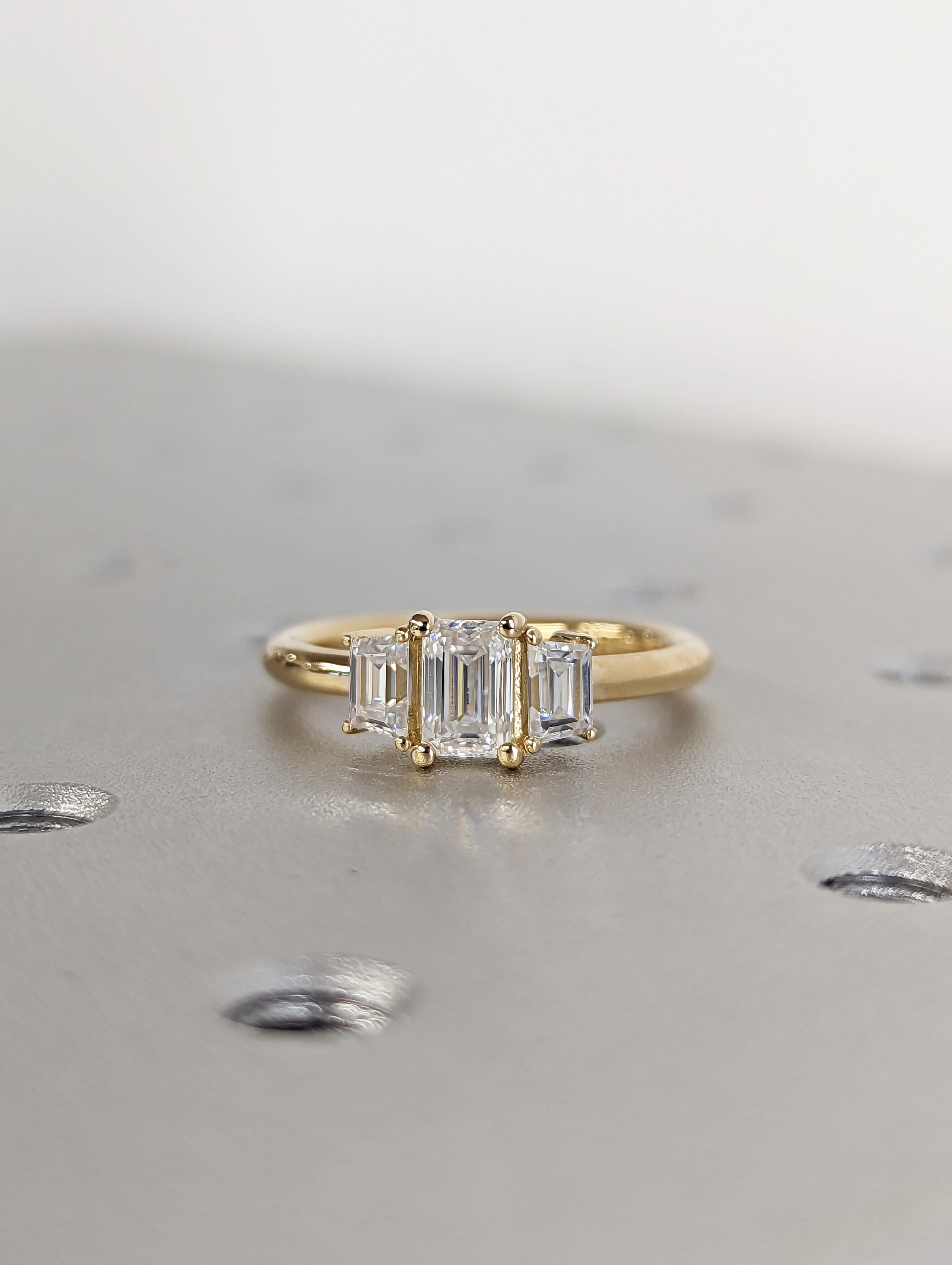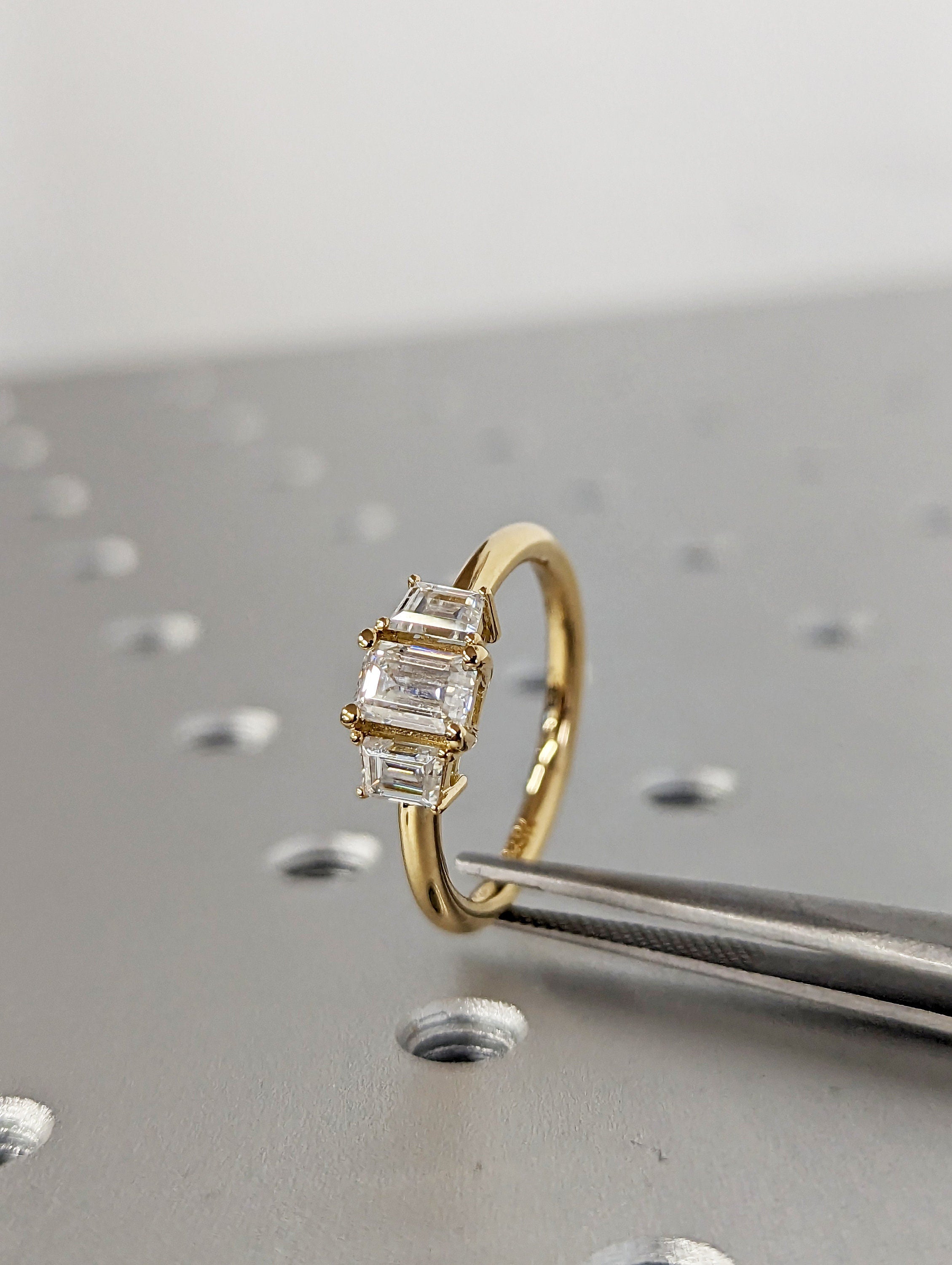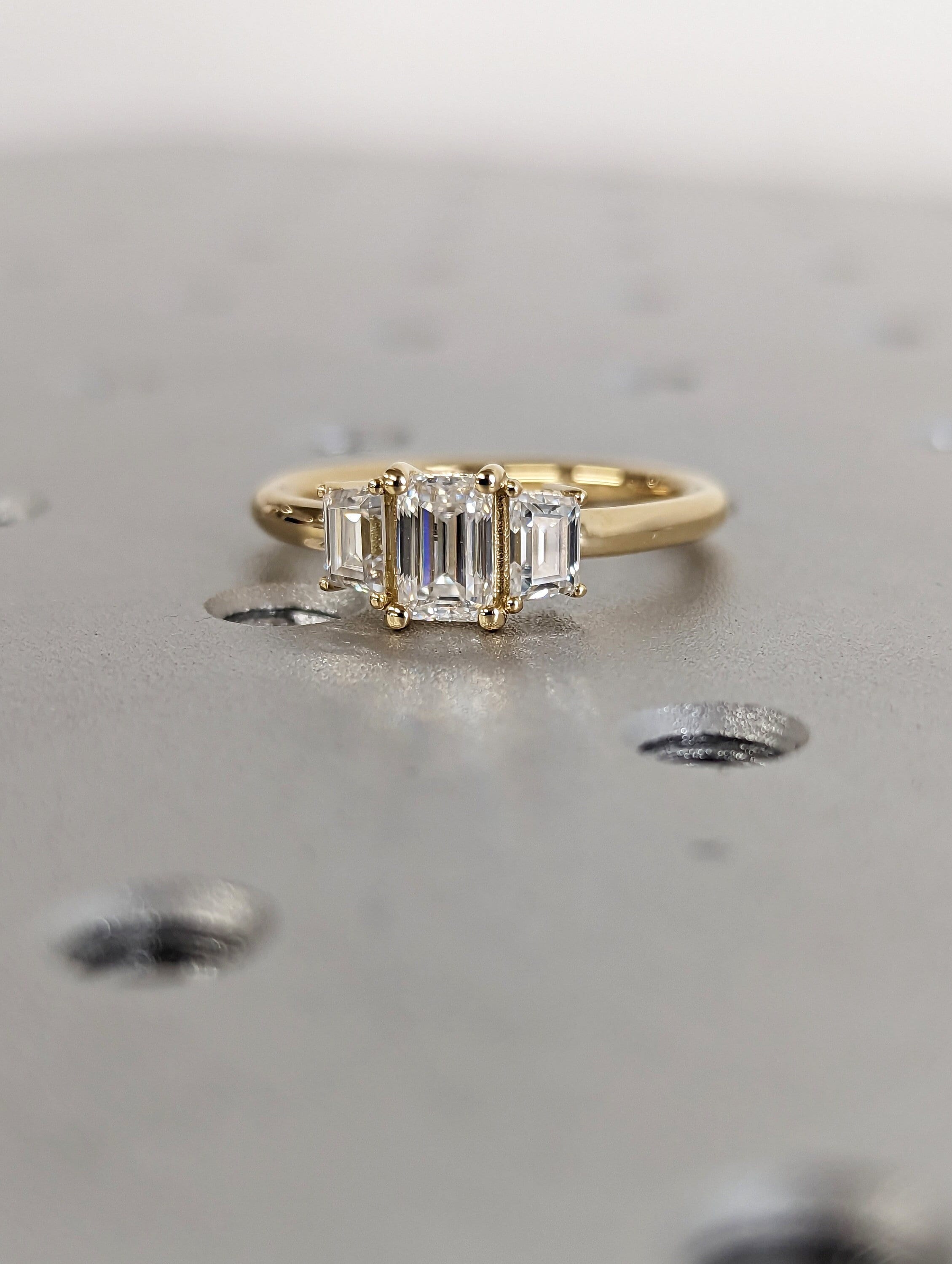 Three Stone Emerald Cut Moissanite Engagement Ring, Side Trapezoid Moissanite, Three Stone Engagement Ring, Emerald Cut and trapezoid Cut moissanite engagement ring