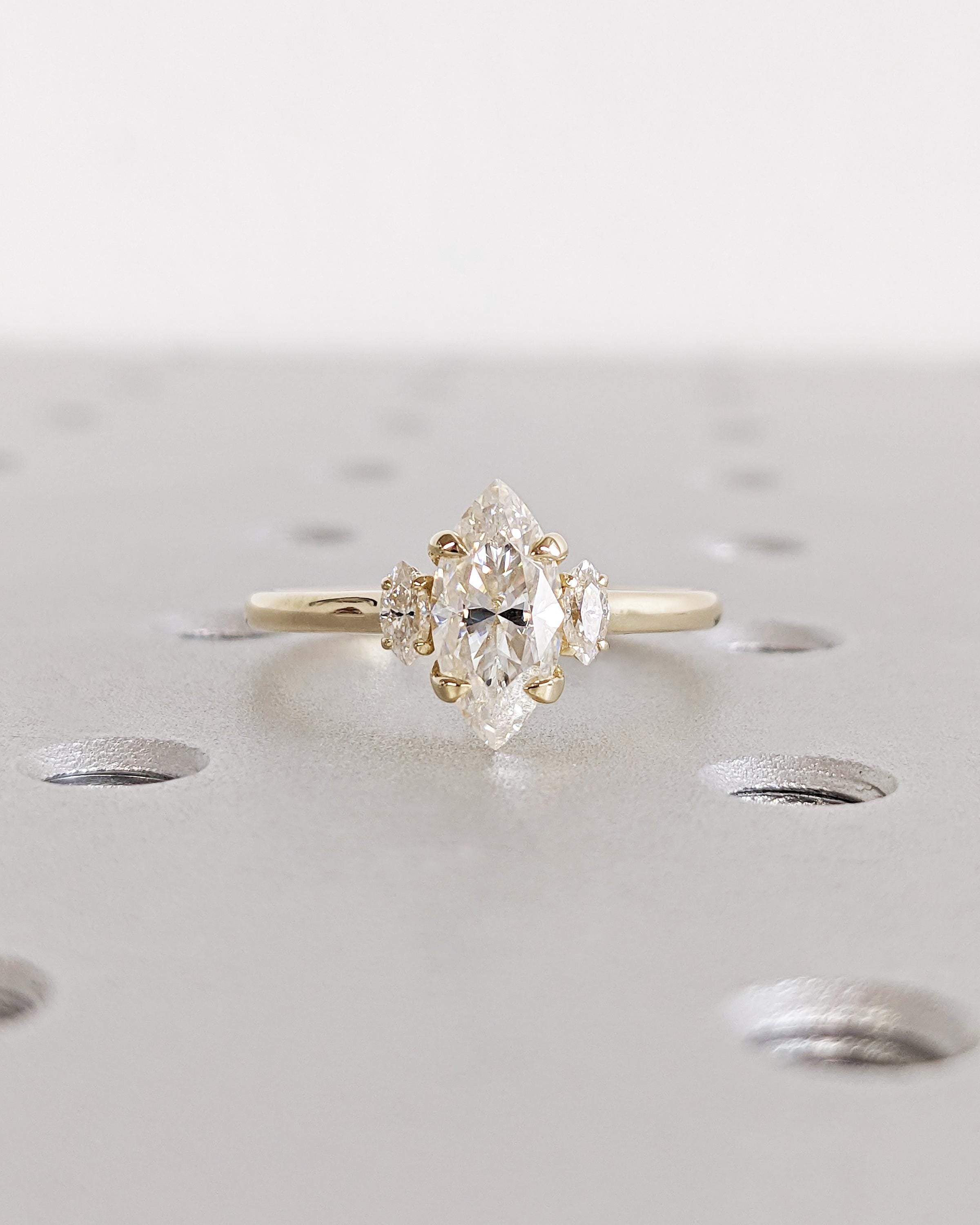 Three Stone Engagement Ring • 1CT Lab Grown Diamond Marquise Engagement Ring • Unique Vintage Marquise Trilogy Ring • 14K Gold Promise Ring