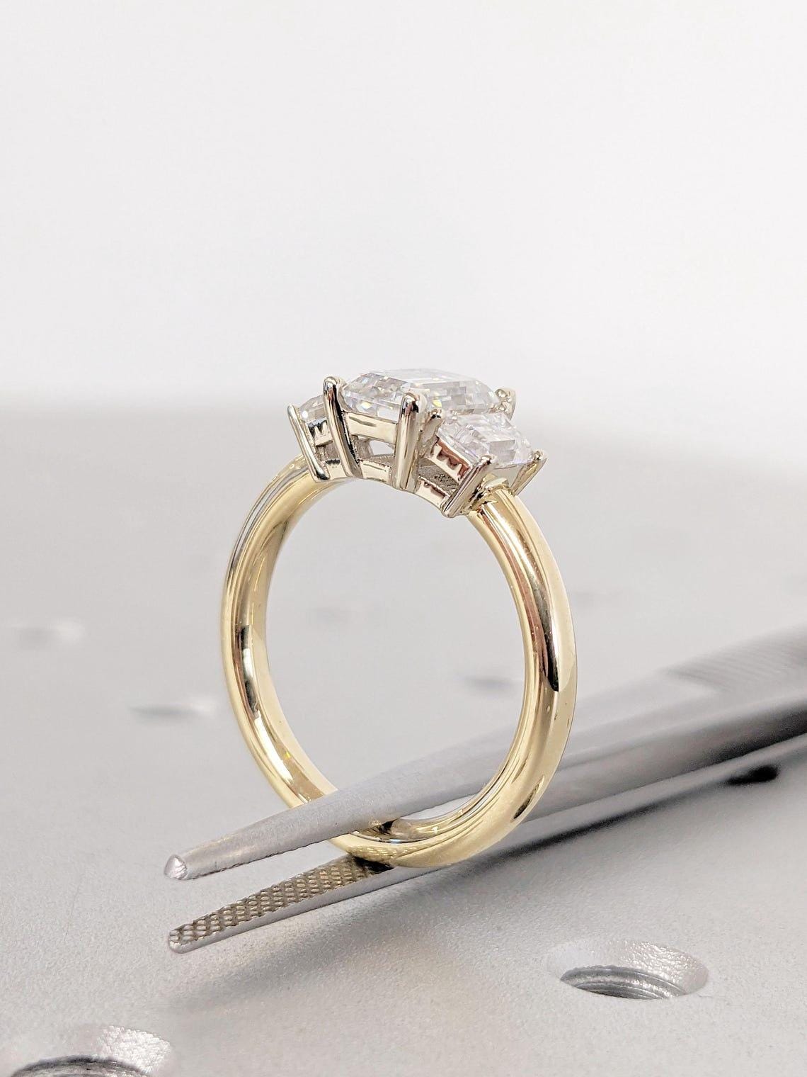 Three Stone Trilogy Lab Created Diamond Engagement Ring | Emerald Cut Diamond Ring | Anniversary Ring | Unique Promise ring | Gift for Her