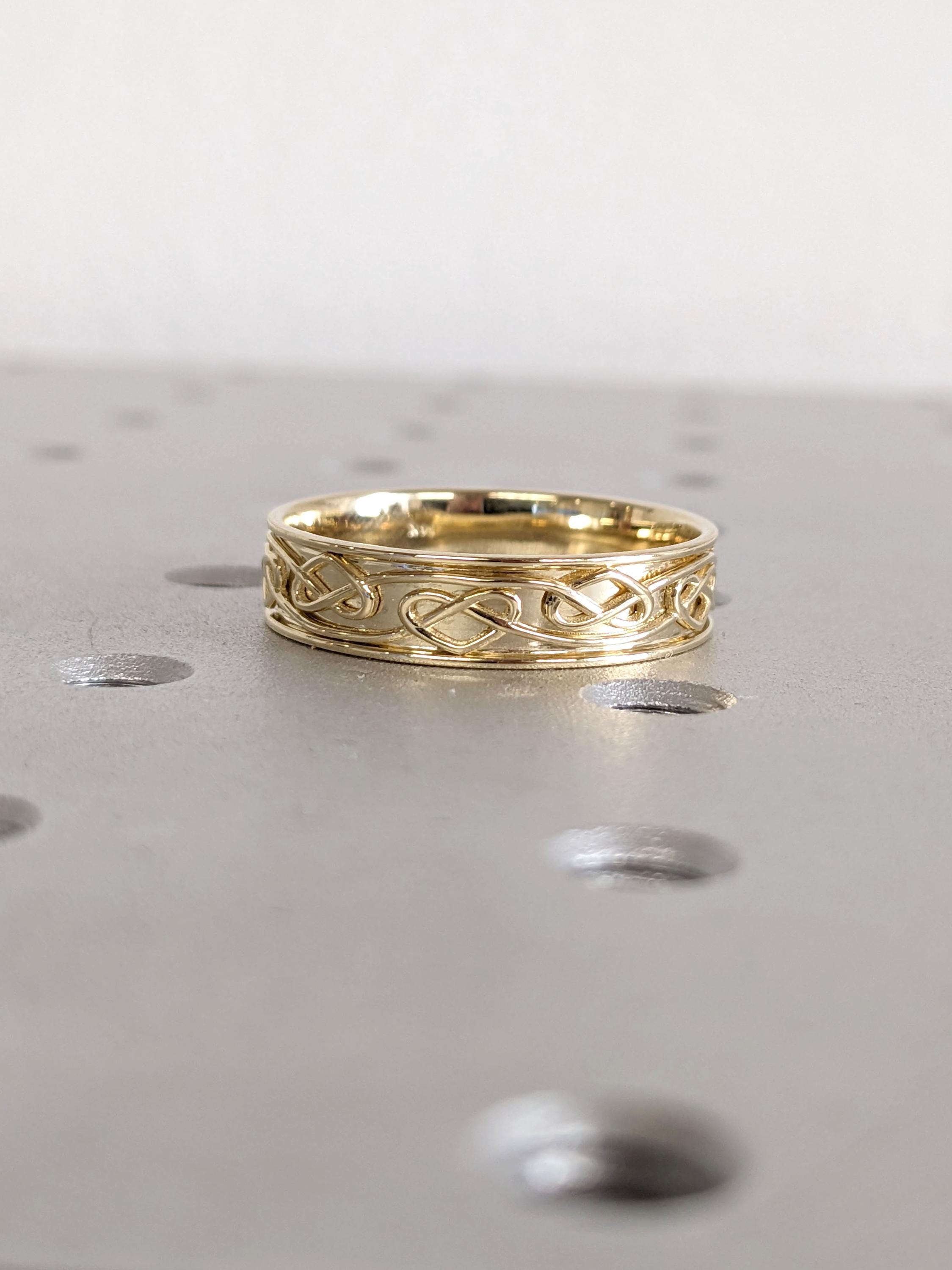 Timeless Love Shape Celtic Knot Men or Women Wedding Band: Yellow Gold 5mm Ring