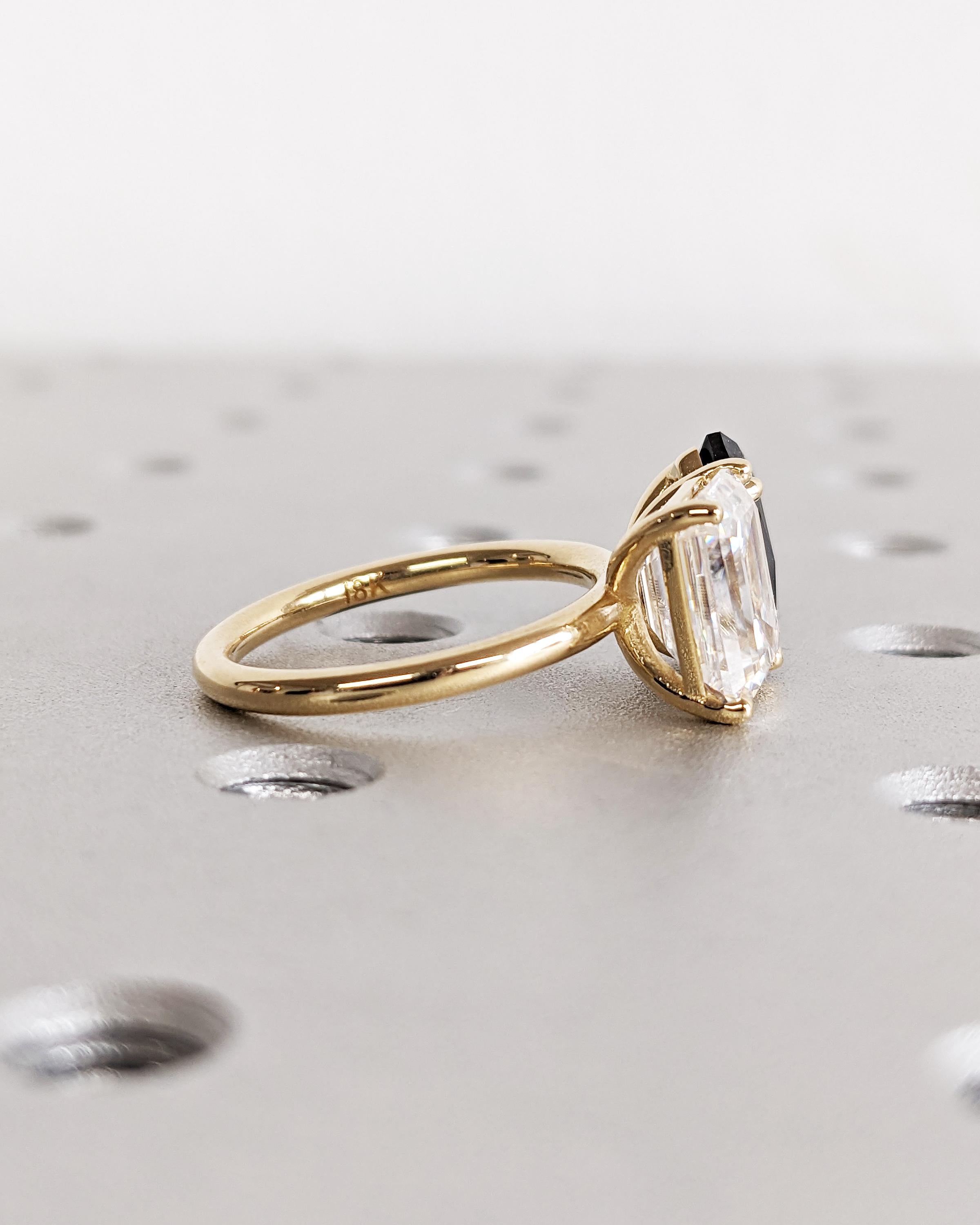 Toi et Moi Lab Diamond & Black Diamond Ring - Double Stone Emerald and Pear Engagement Ring - White and Black Stone Ring - Gold Promise Ring