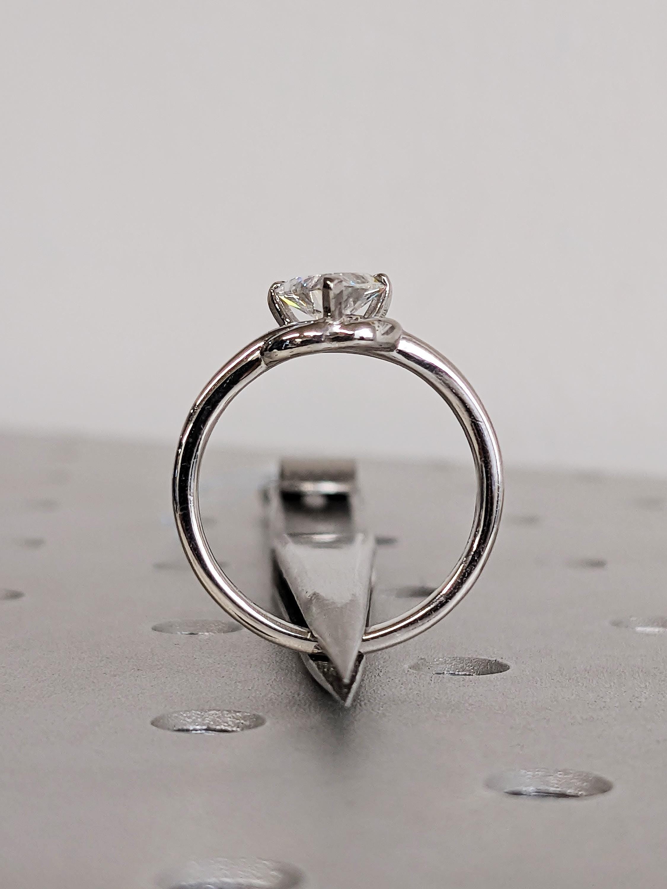 This elegant knot solitaire engagement ring features a striking trillion cut Moissanite that catches the light from every angle. The graceful knot design symbolizes unity, connection and a love that stays intertwined. This piece blends modern simplicity, making it a perfect choice for proposals, anniversaries or a timeless everyday symbol of love.