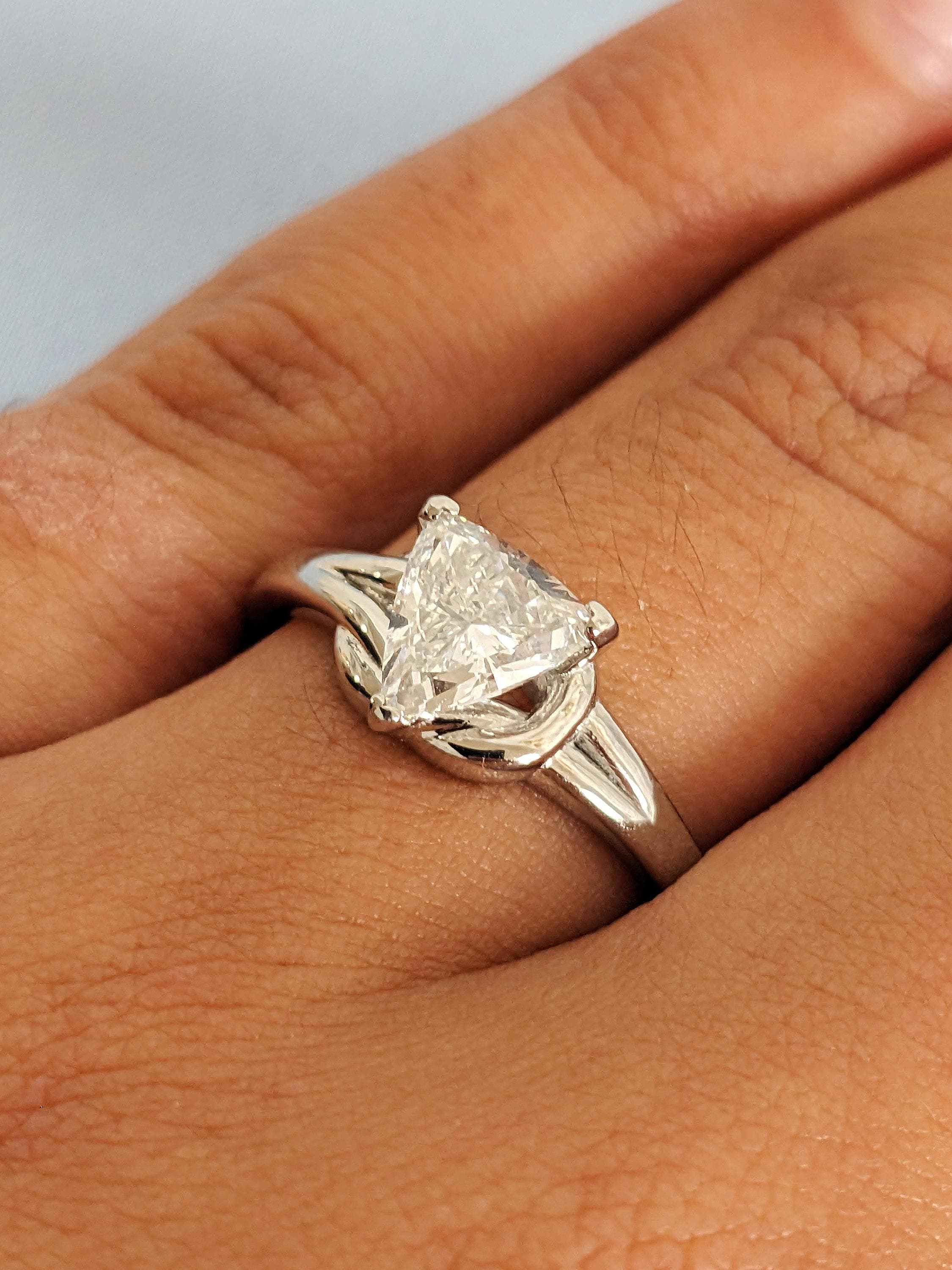 Trillion Knot Solitaire Moissanite Engagement Ring, Trilliant Cut VVS Moissanite, Platinum Band for Women