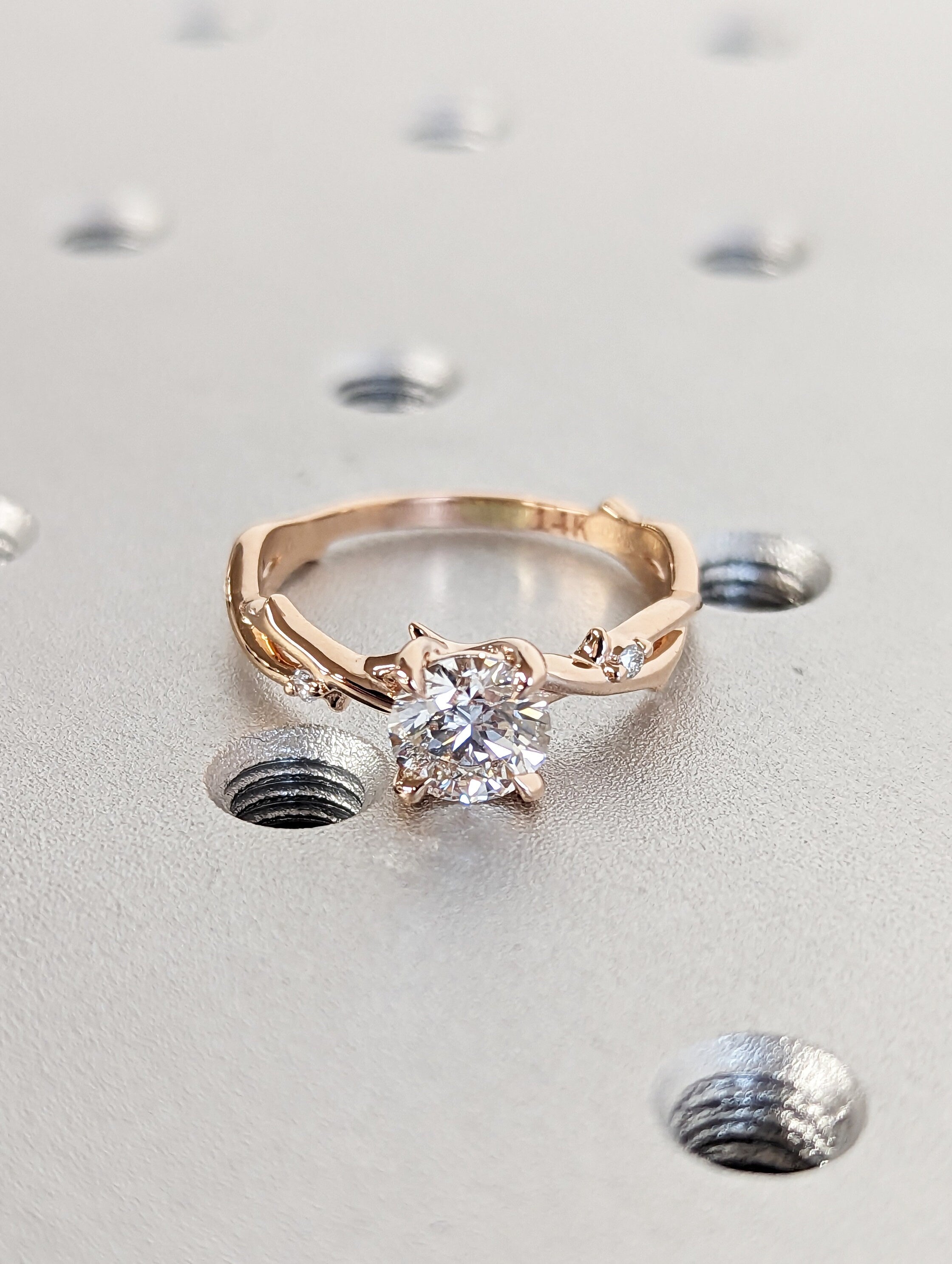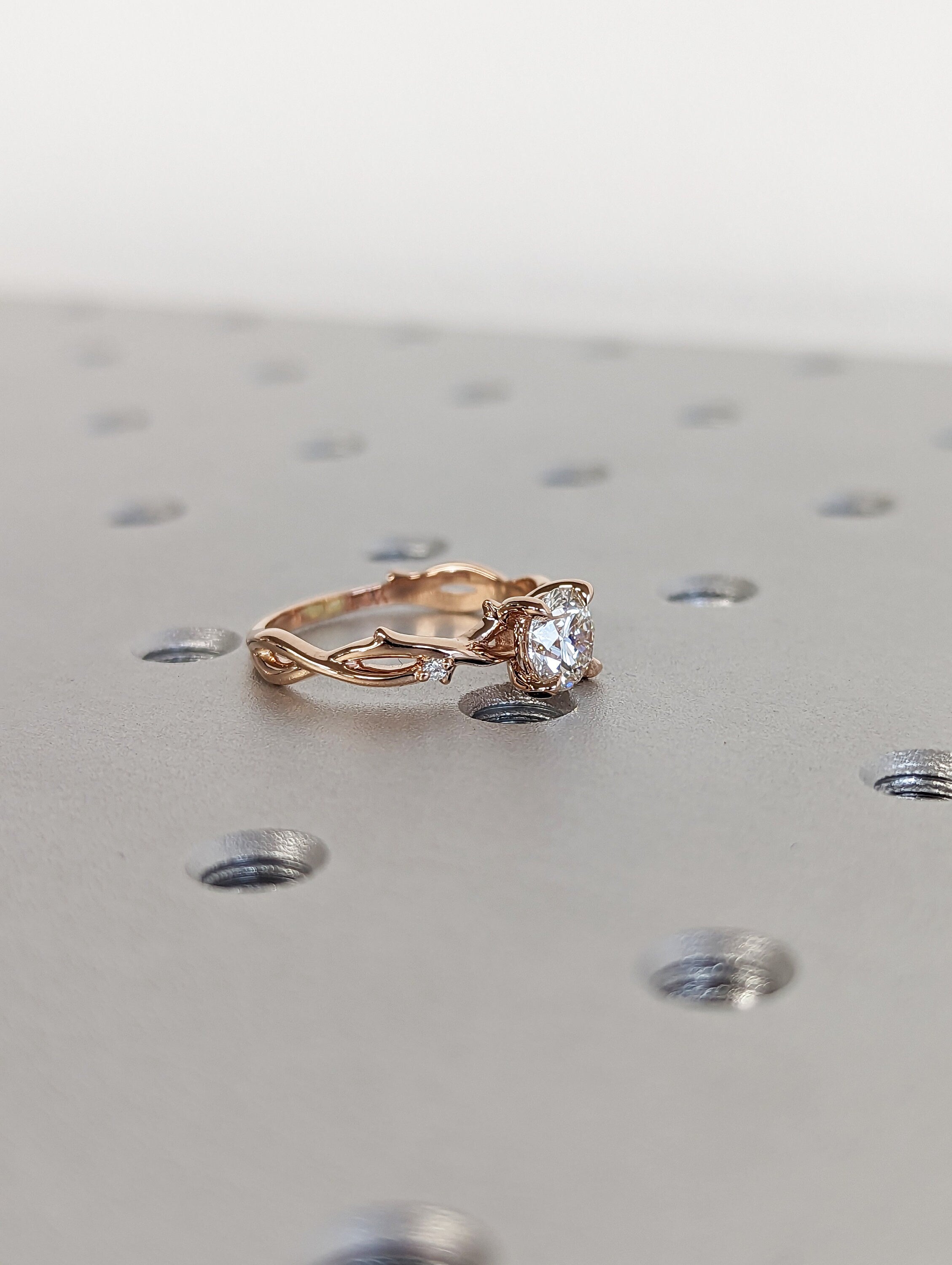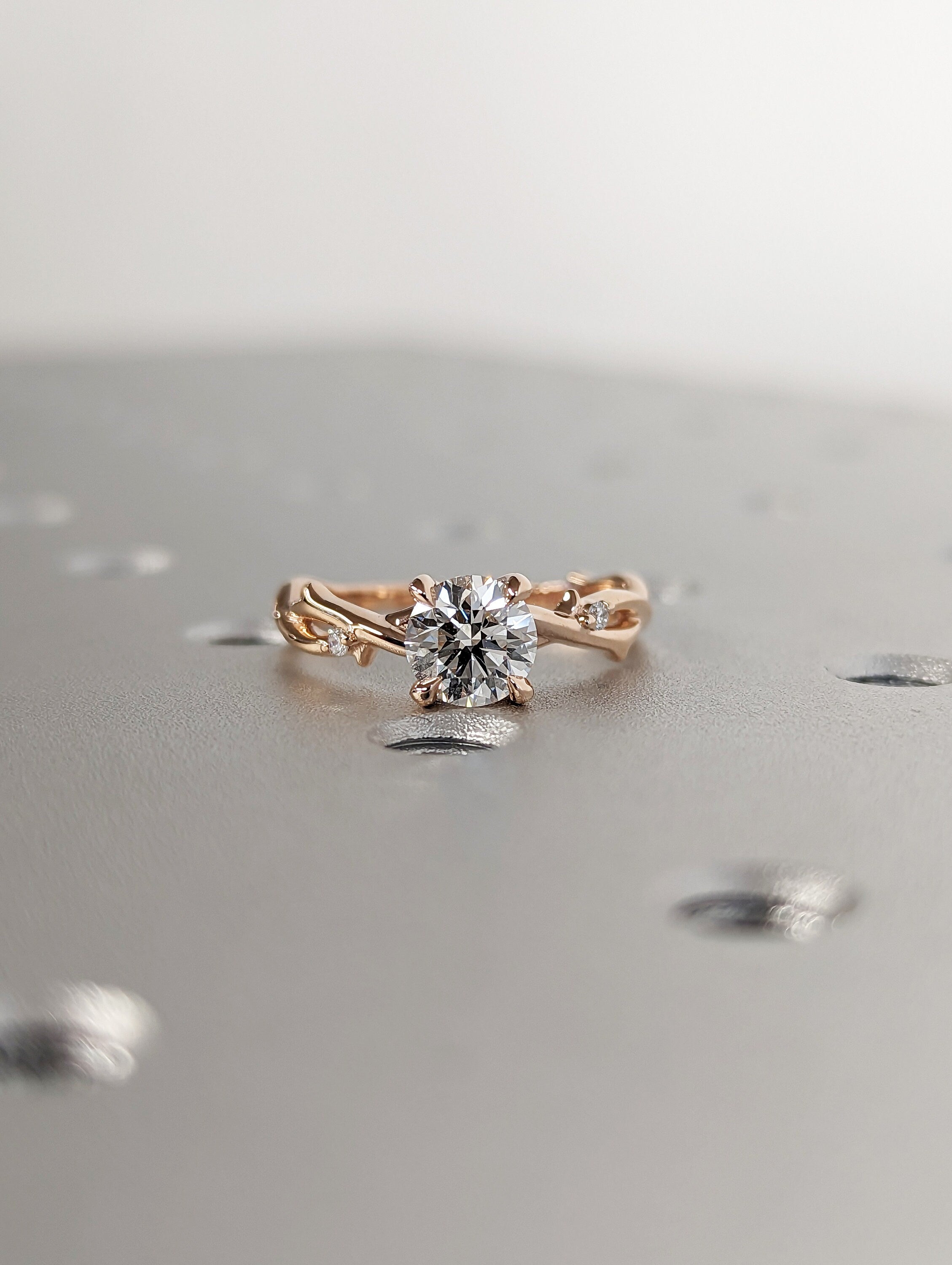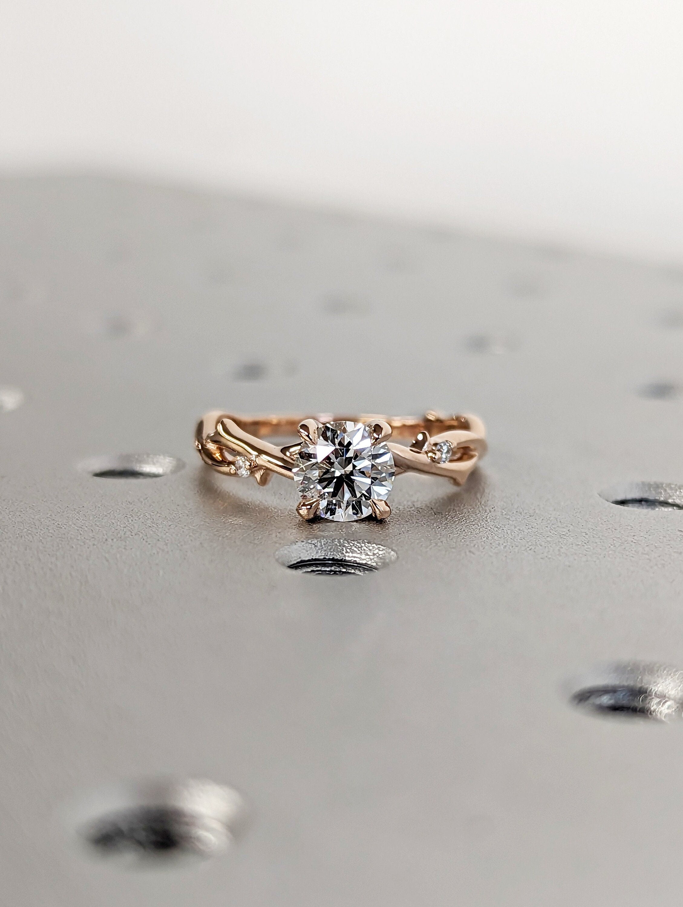 Twig Engagement Ring , 1ct Moissanite Diamond Simulant, Nature Ring Set, 14K/18K gold