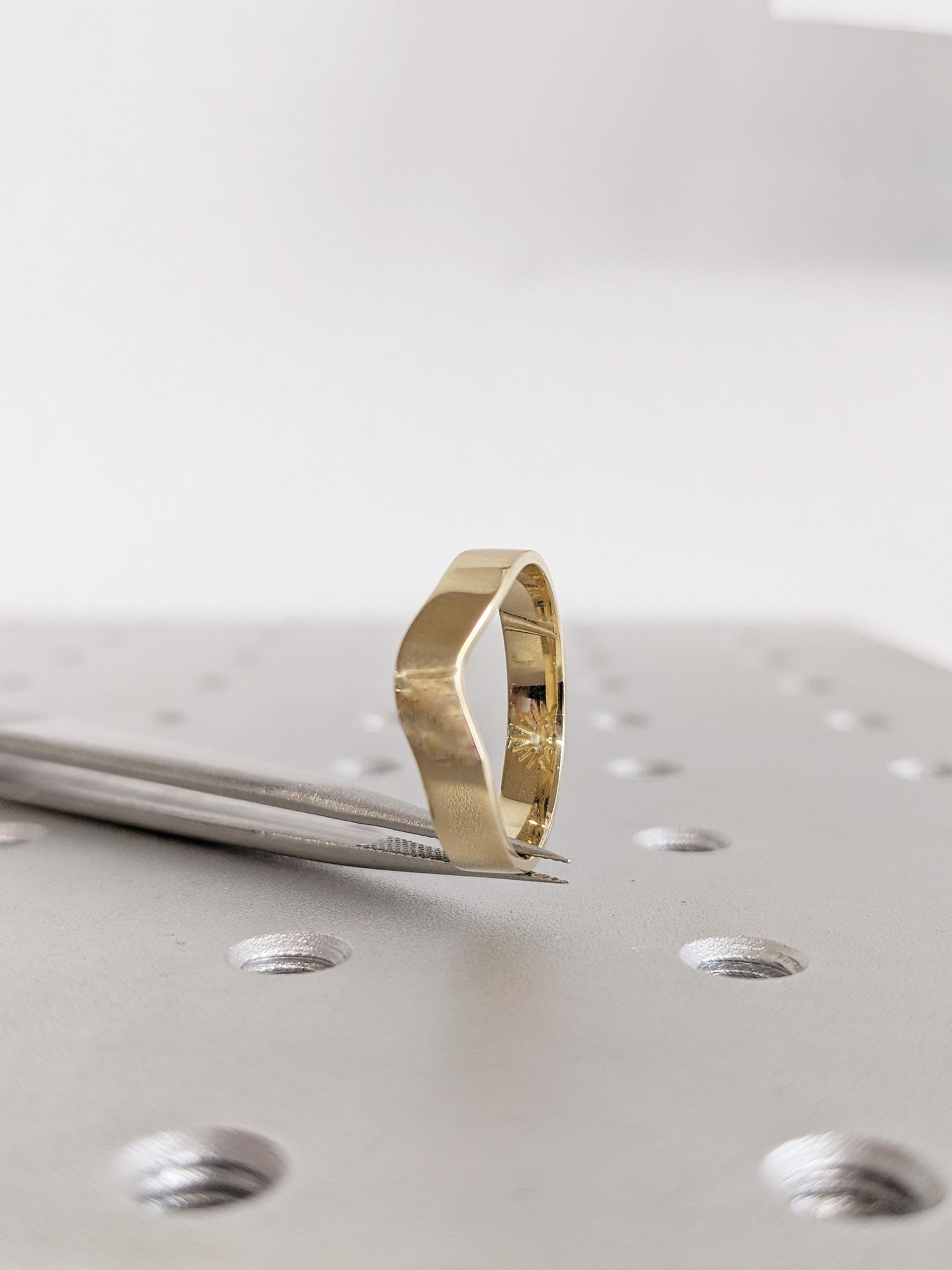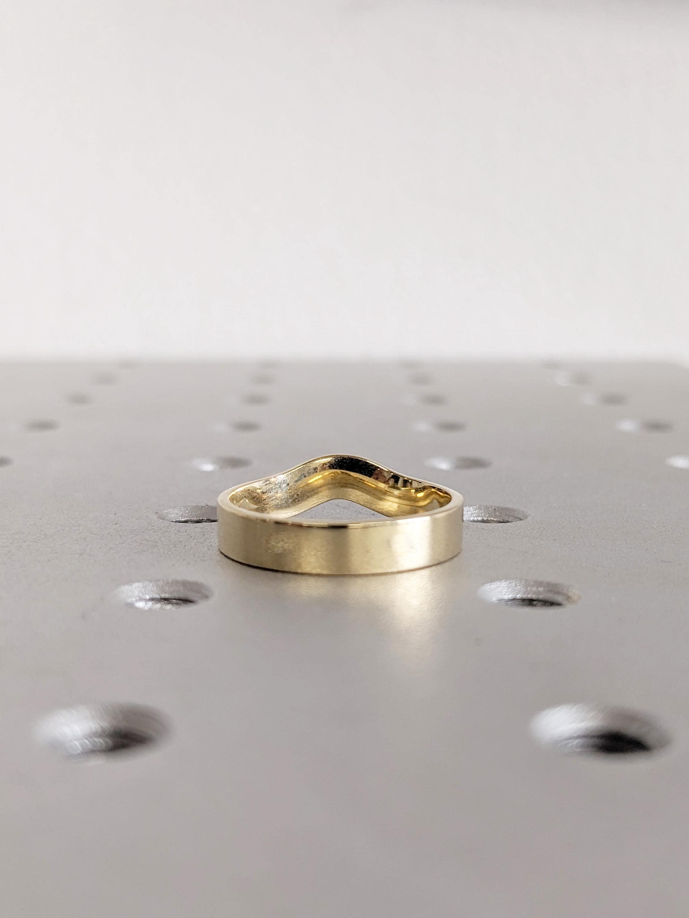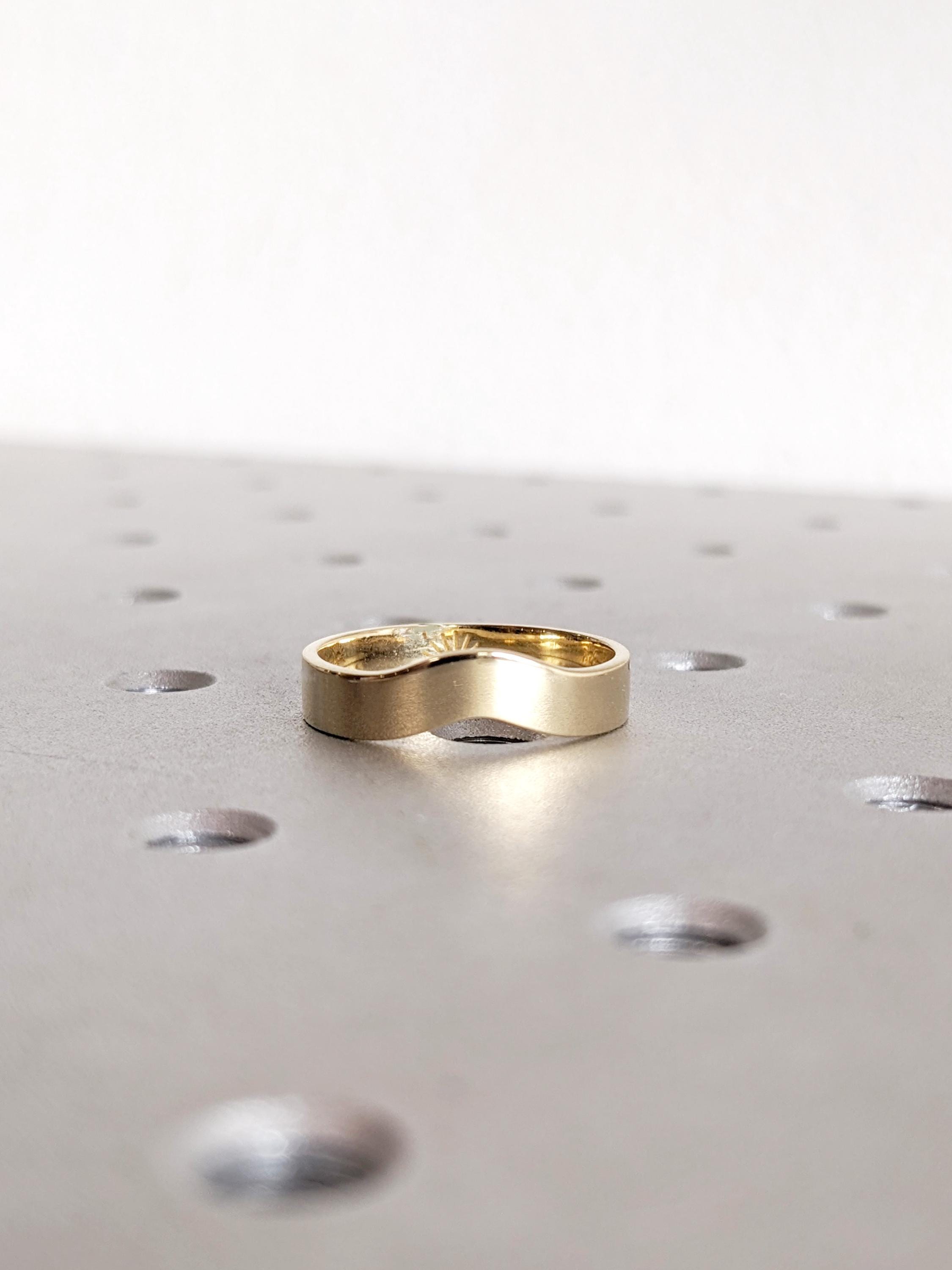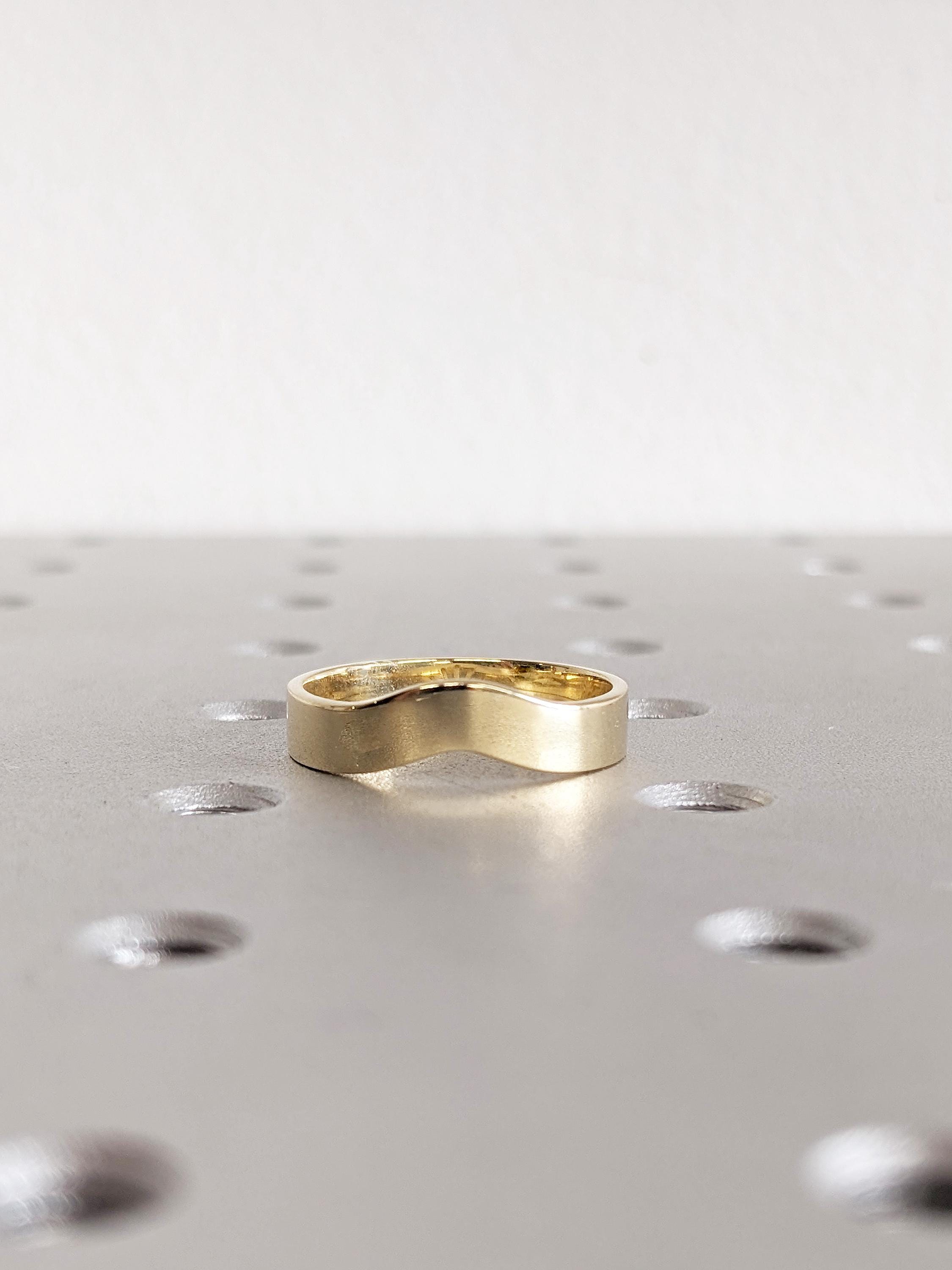 Unique Gold Wedding Band, 14K Yellow Gold Stacking Ring For Woman, Unique Matching Ring, Curved Simple Gold Ring, Wedding Gift, Promise Ring