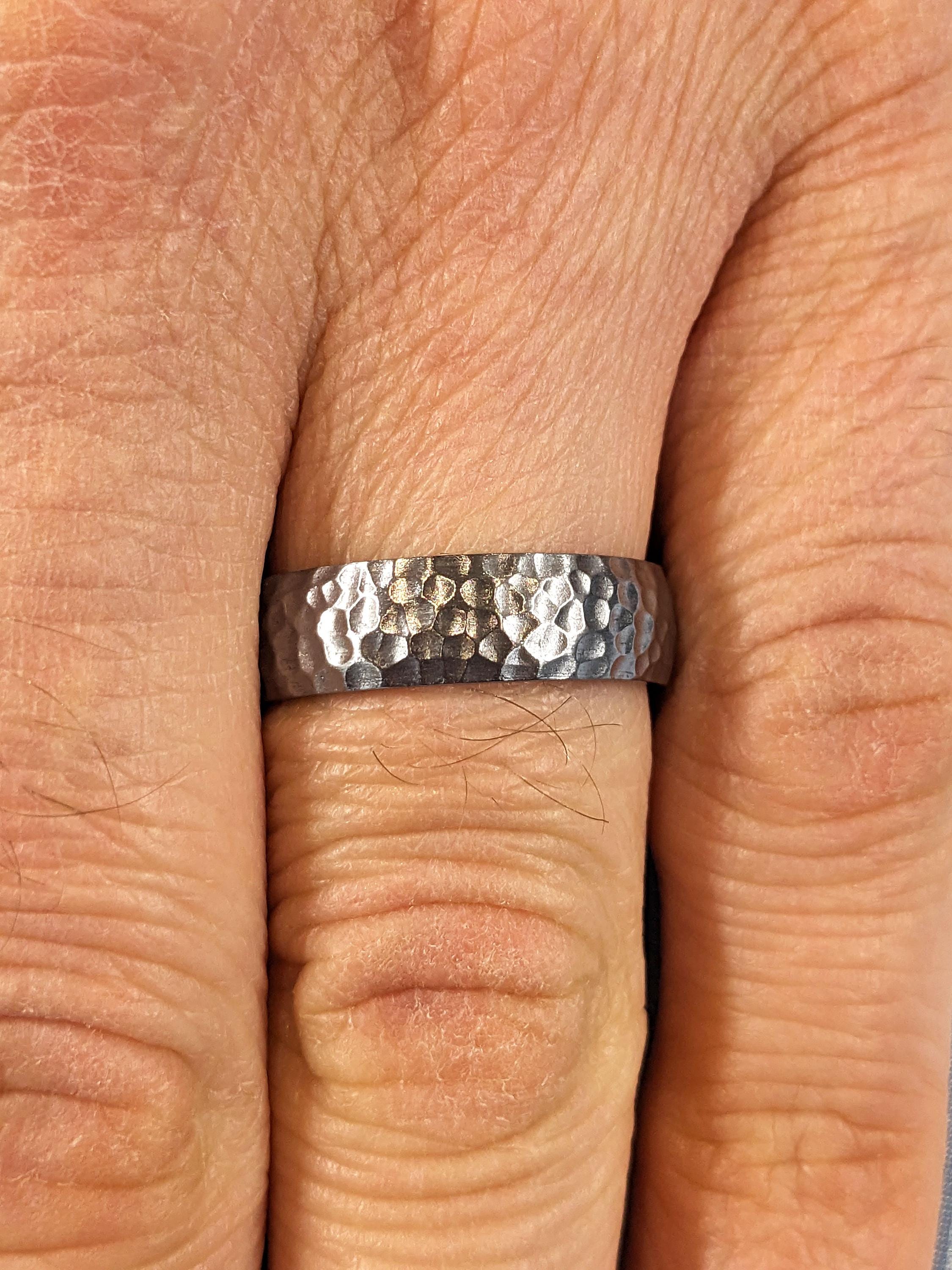 Unique Hammered Tantalum Ring, Dainty 6mm Comfort Fit Wedding Rings for Men, Black Mens Wedding Band, Tantalum Mens Ring, Tantalum Jewelry