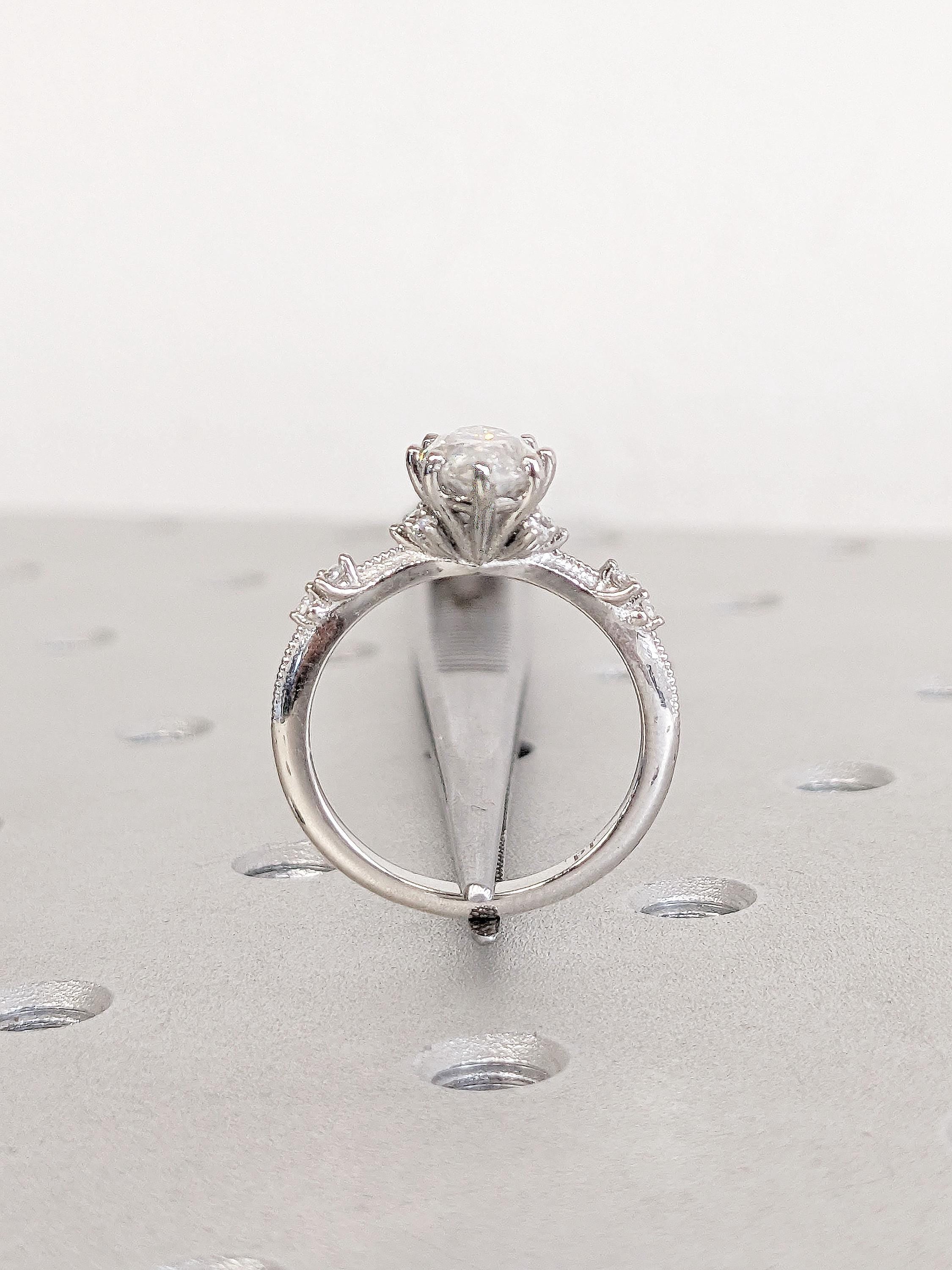 Unique Hidden Halo Ring | 1.5 Carat Diamond Marquise Engagement Ring | Vintage Milgrain Wedding Band | Delicate White Gold Ring Promise Ring