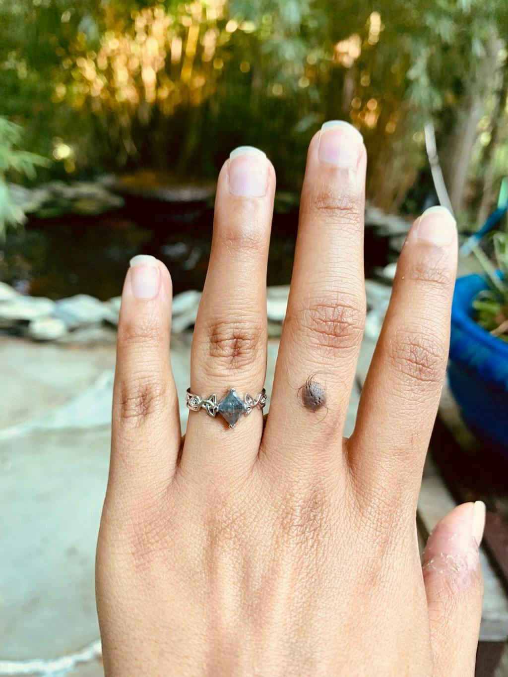 ONE-OF-A-KIND Kite salt and pepper diamond, set within a 4 prongs setting, adorned by a celtic twisted band with diamonds set aside, can be matched with a pointed celtic wedding band, pure love, endless and forever lasting.