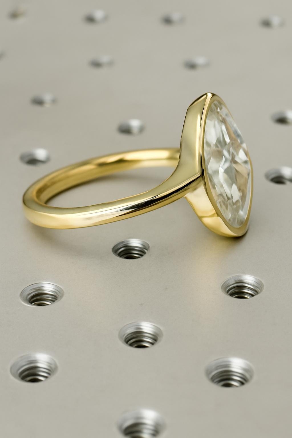 Modern and unique, a bezel set bypass ring featuring a marquise cut Lab Grown Diamond center stone, set on a dainty 1.6mm width band. This minimalist yet trendy statement ring makes it a wonderful complementing jewelry for any occasion.