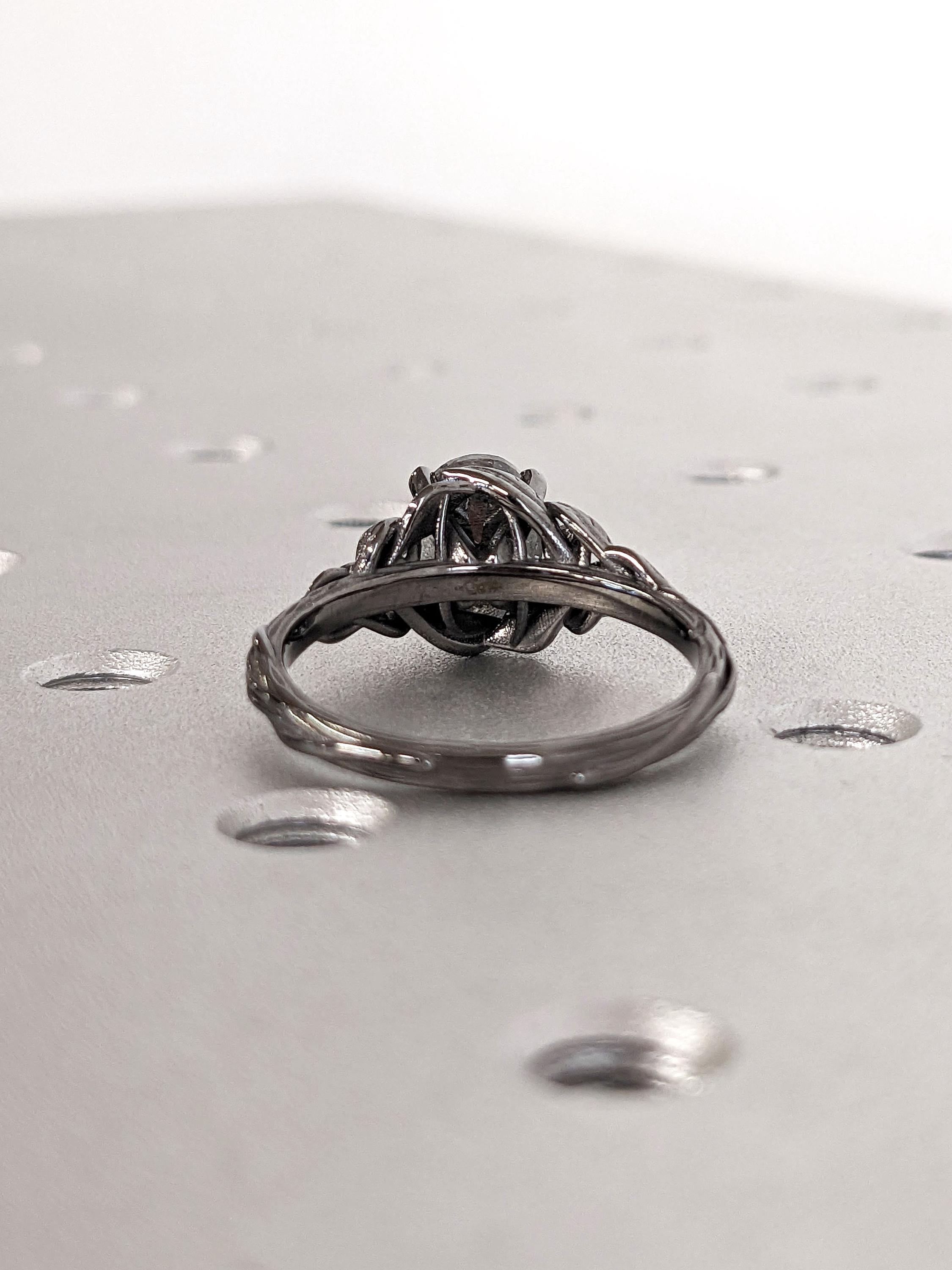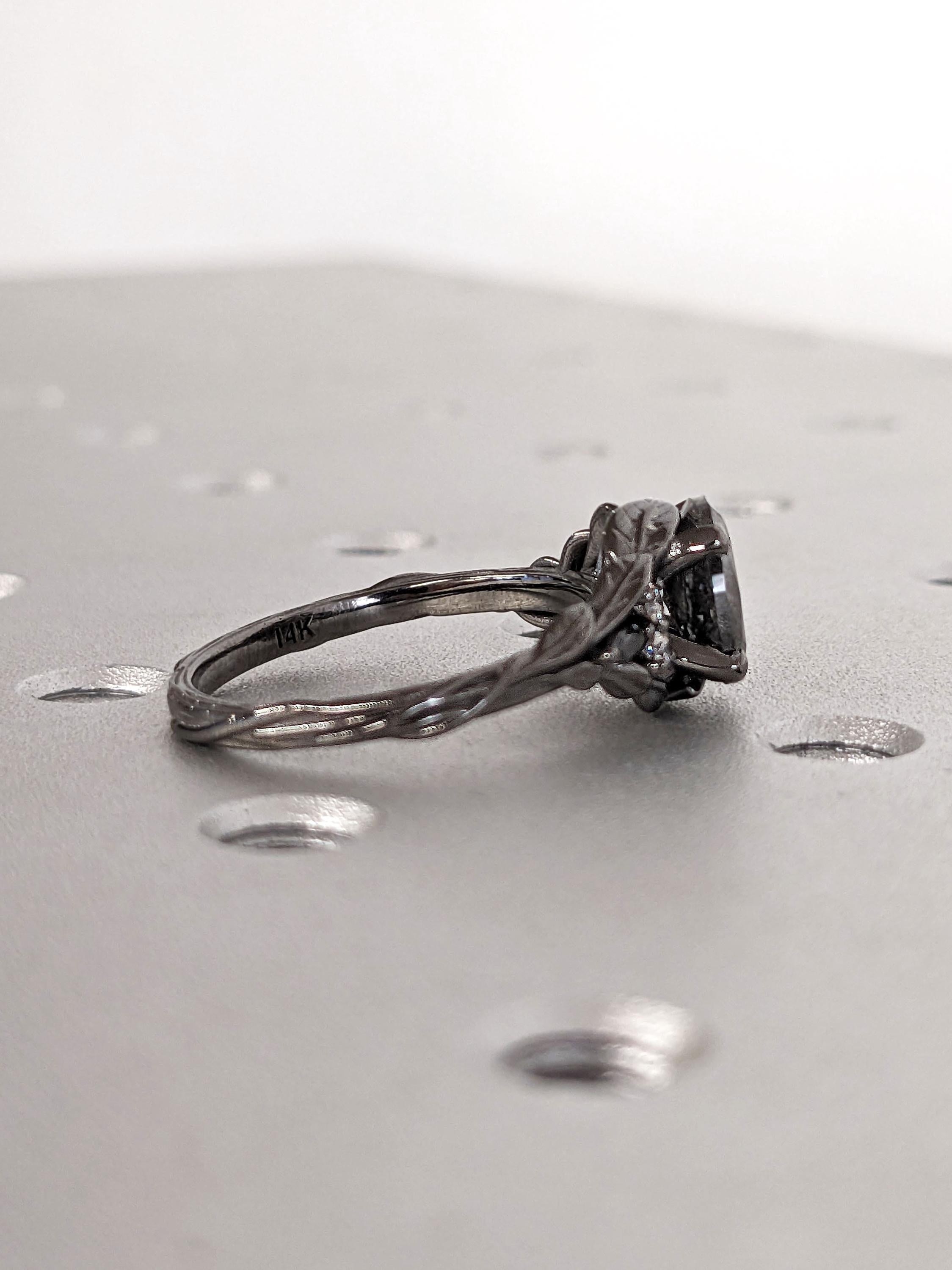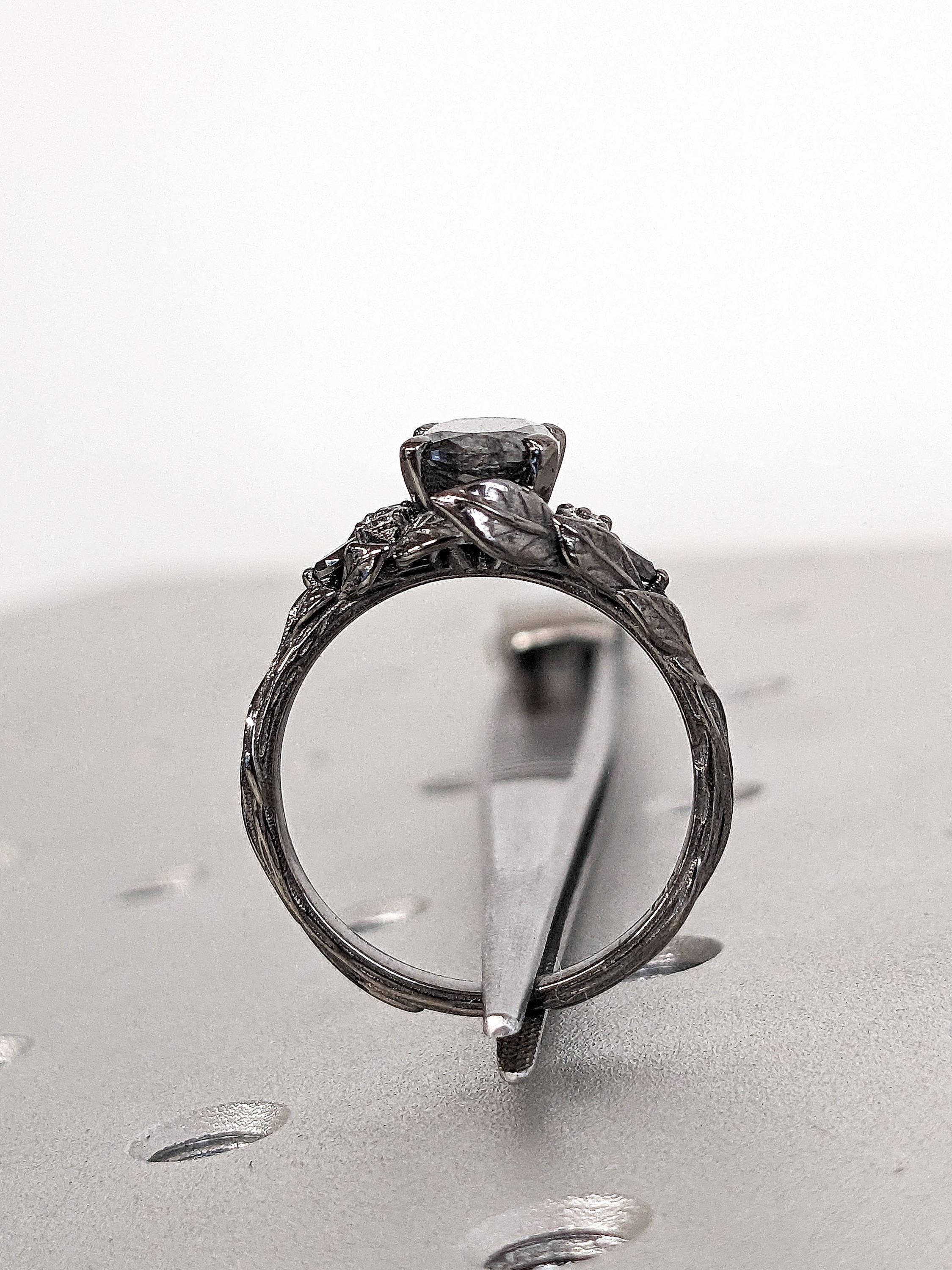 Unique Leaf Ring | Leaf Engagement Ring | 14k 18k Black Gold Rings for Women | Natural Black Diamond Ring | Gothic Ring | Black Wedding Ring