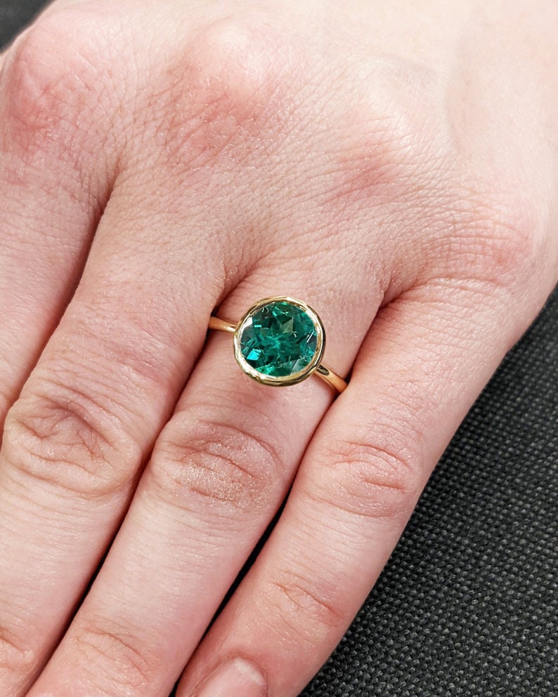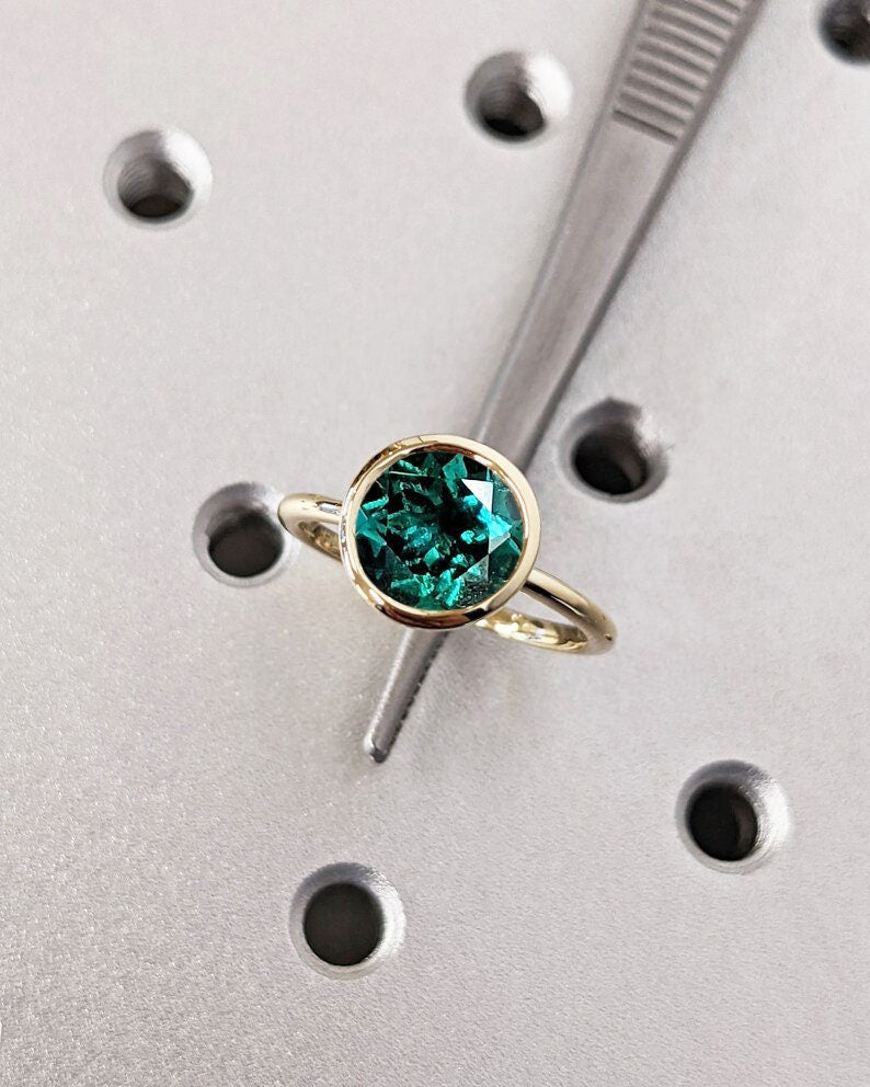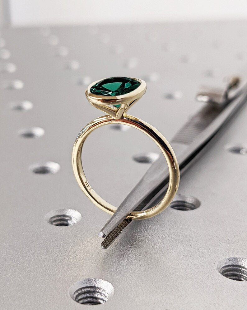 Unique May Birthstone Ring, Round Cut Emerald Engagement Ring, Bezel Set Emerald Anniversary Ring For Women, Vintage Solitaire Promise Ring