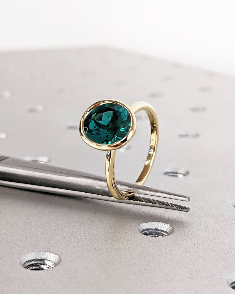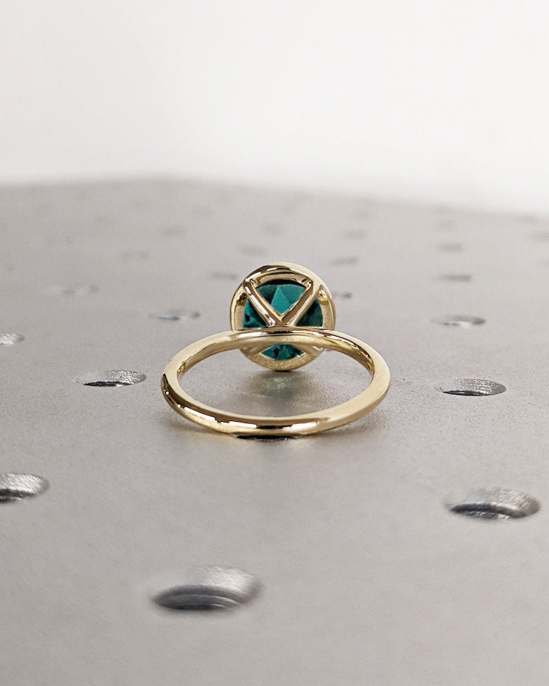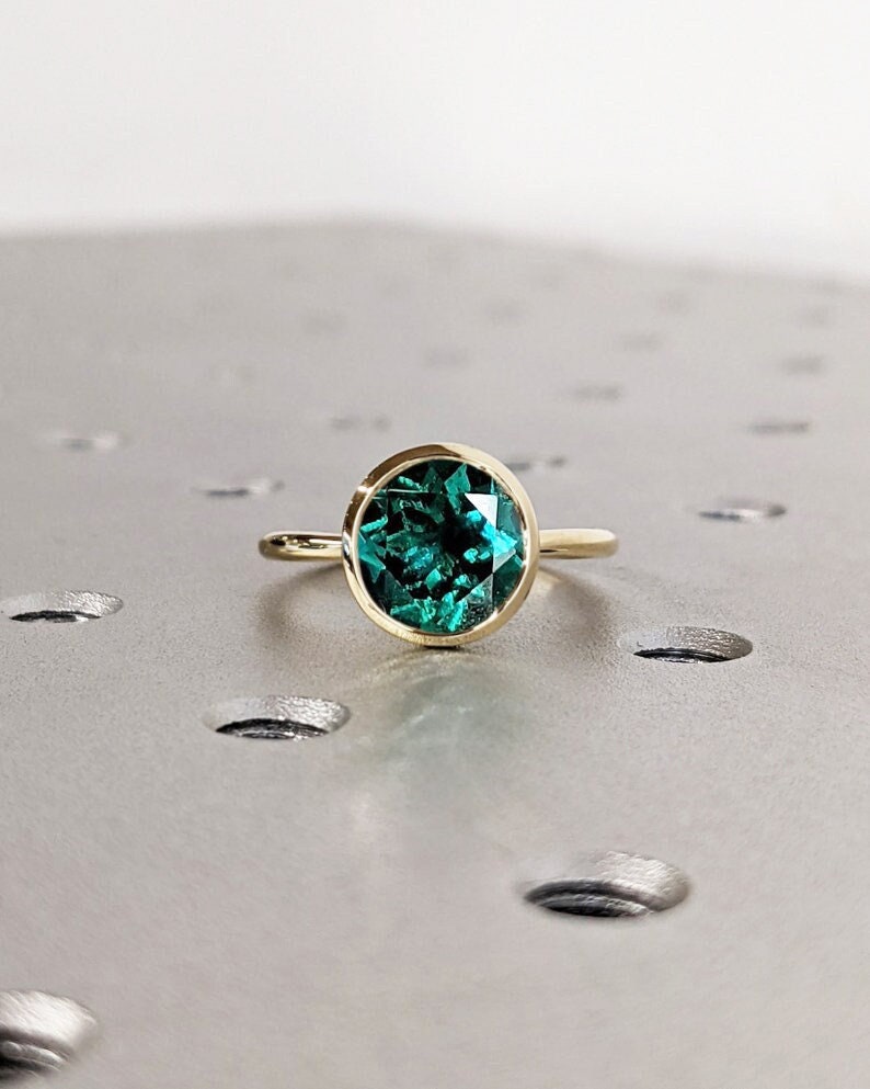 Transform your look with our striking statement ring, flaunting a radiant Emerald nestled securely in a fashionable bezel setting. The delicately rounded band evokes timeless vintage charm, ensuring this piece is not just a fashion statement but also a symbol of comfort.