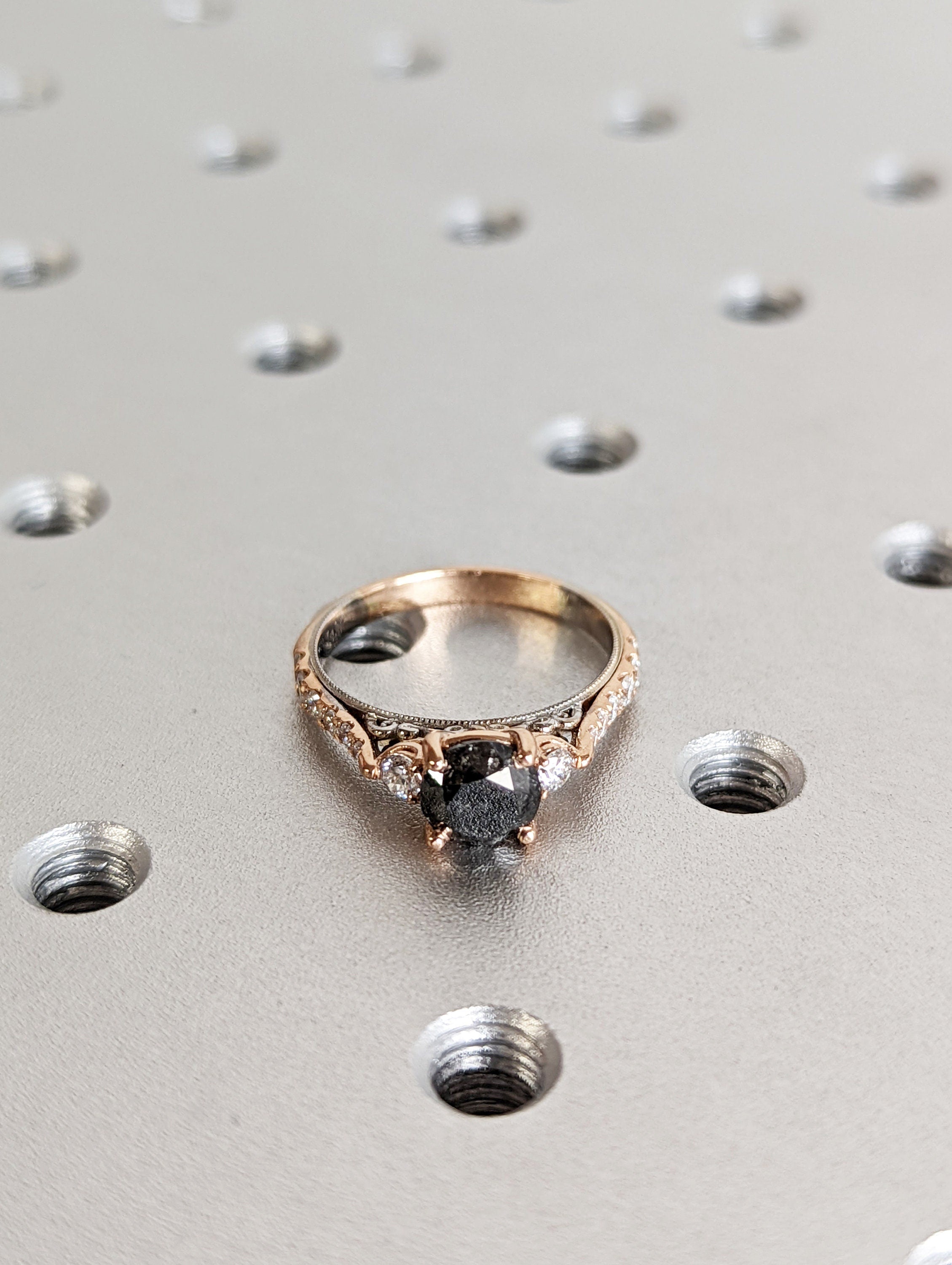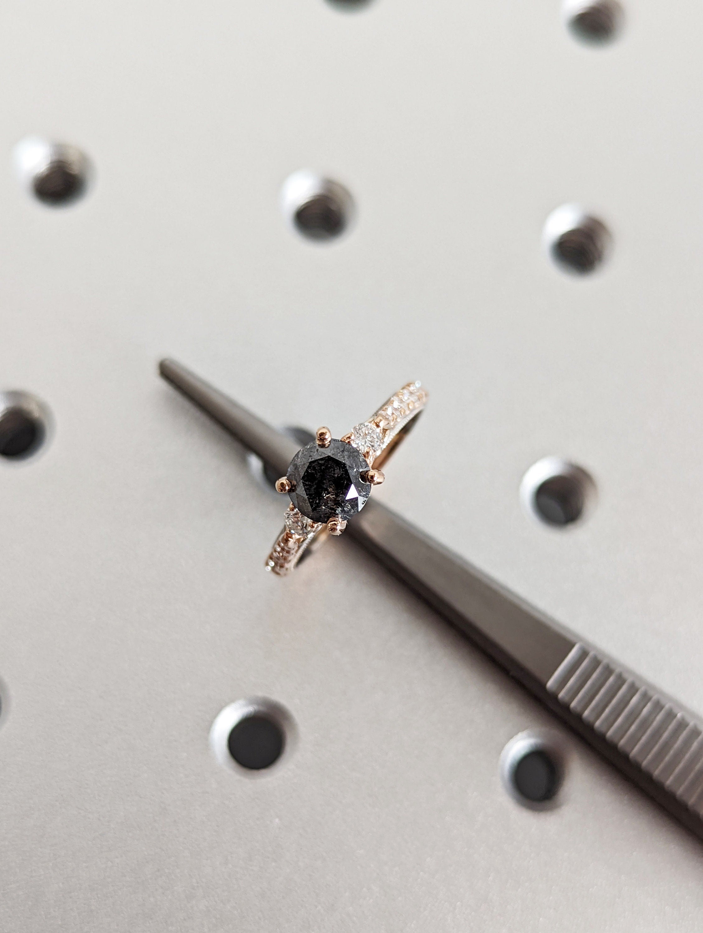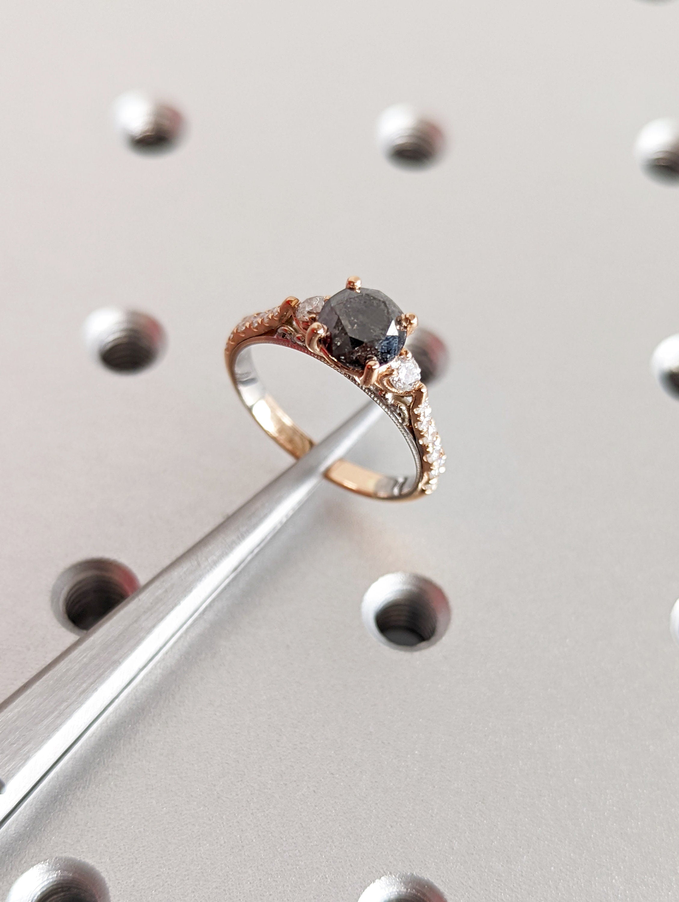 Unique Salt and Pepper Diamond Engagement Ring | Two Tone Half Eternity Promise Ring | 14k White/Rose Gold Vintage Filigree Ring for Her
