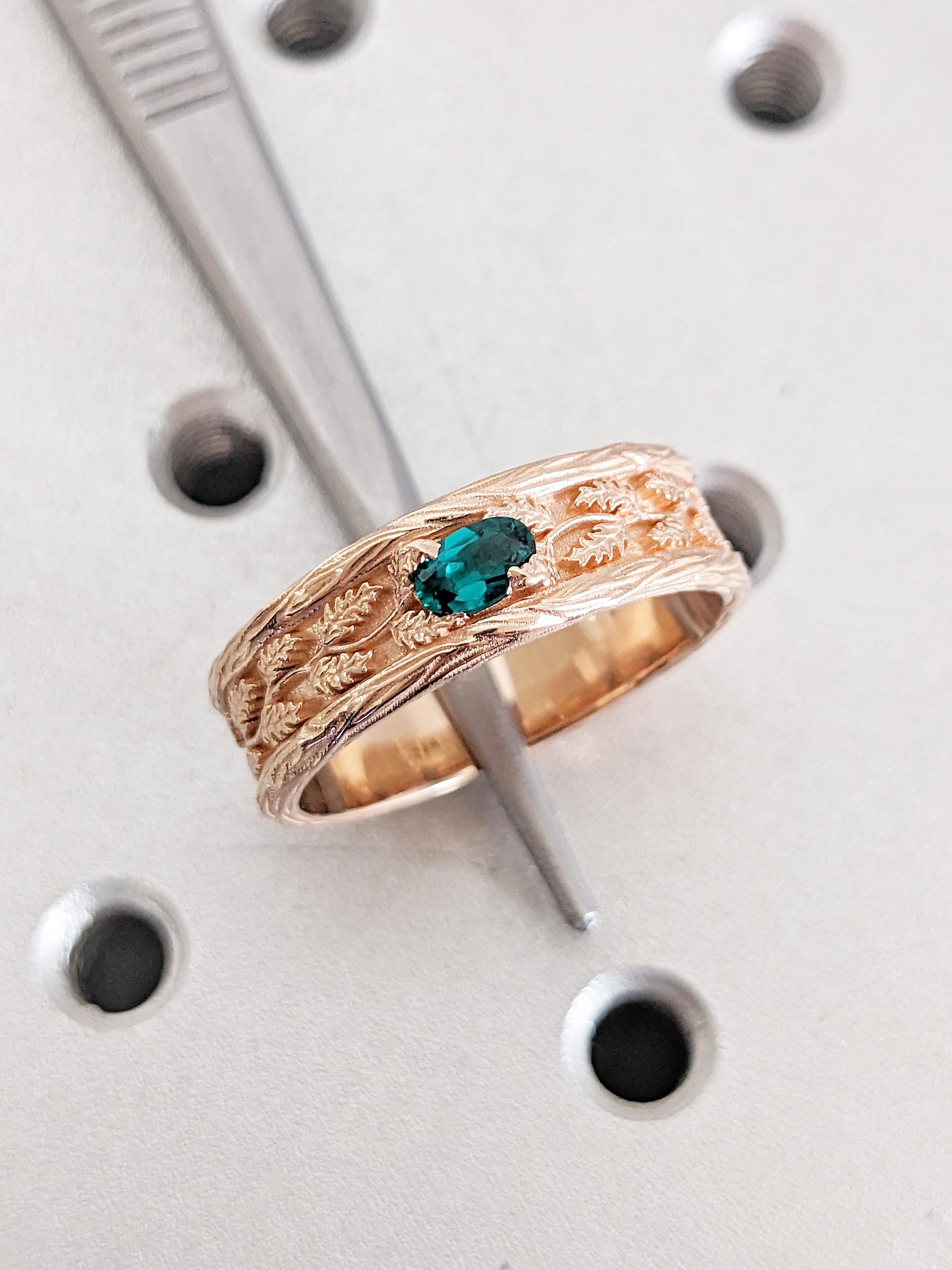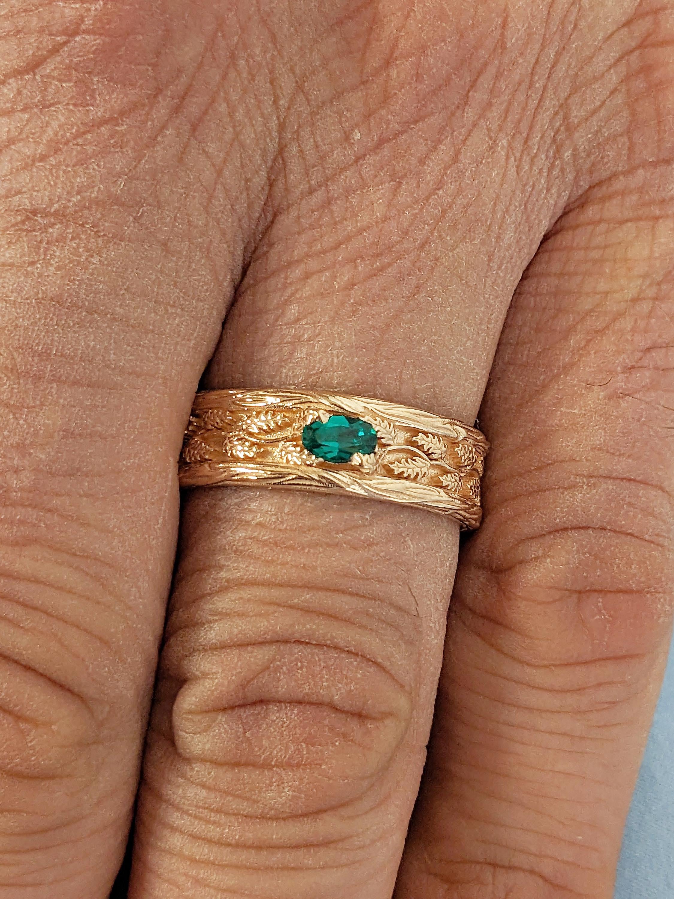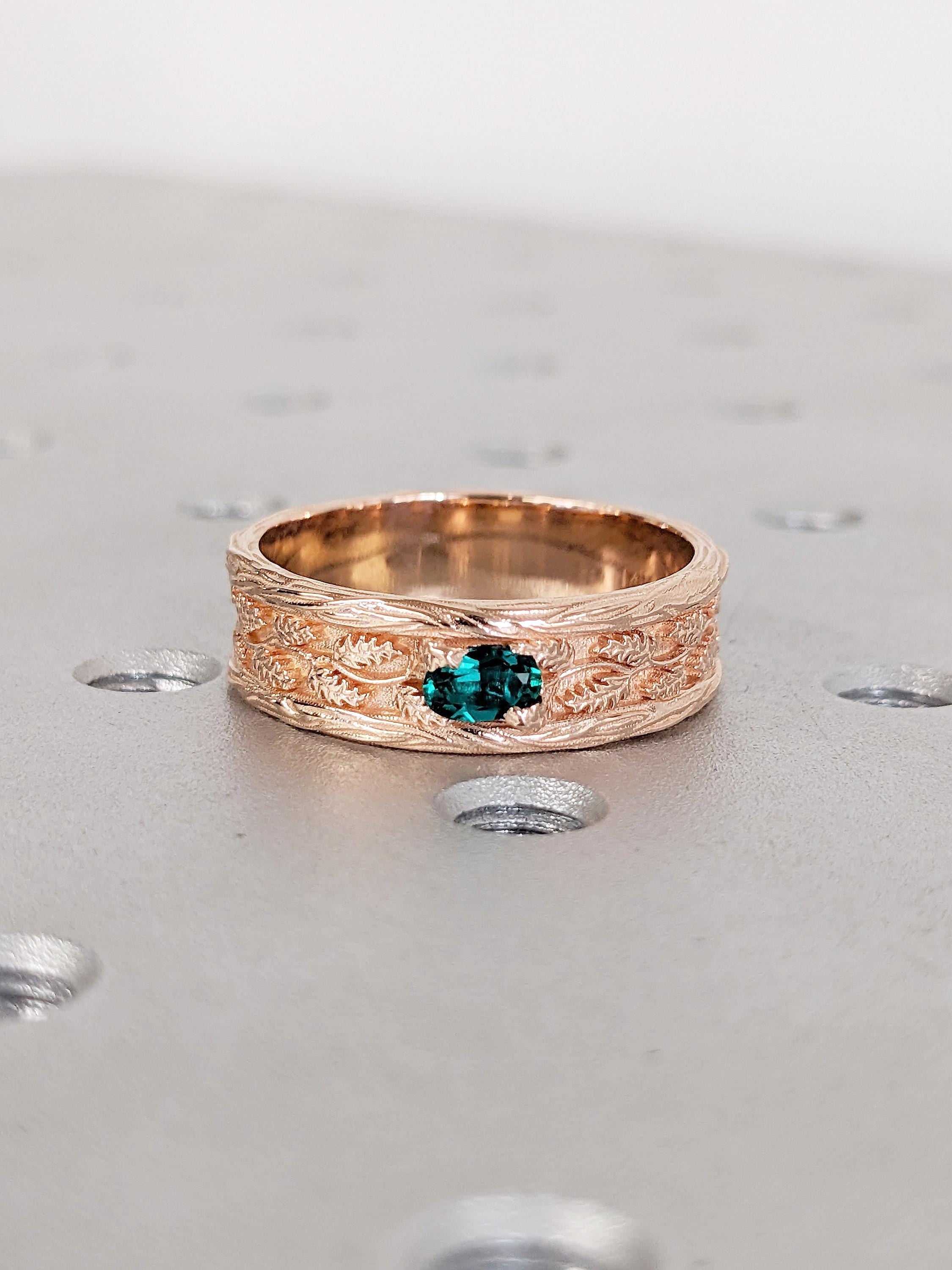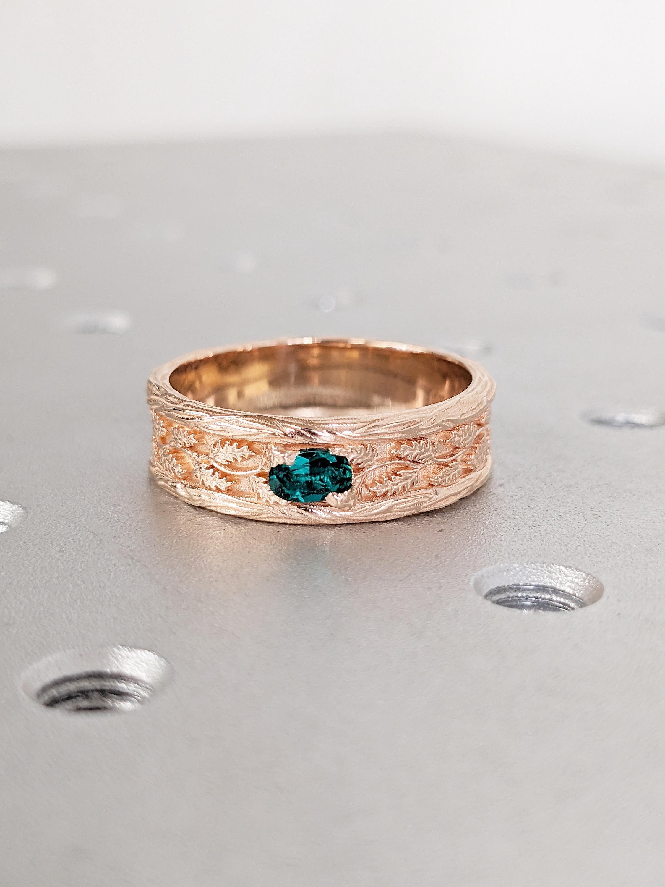 Vintage 14k Rose Gold Men Wedding Band, Art Deco Rings for Men, Oval Lab Emerald Men's Wedding Ring, Nature Inspired Ring, Gemstone Ring
