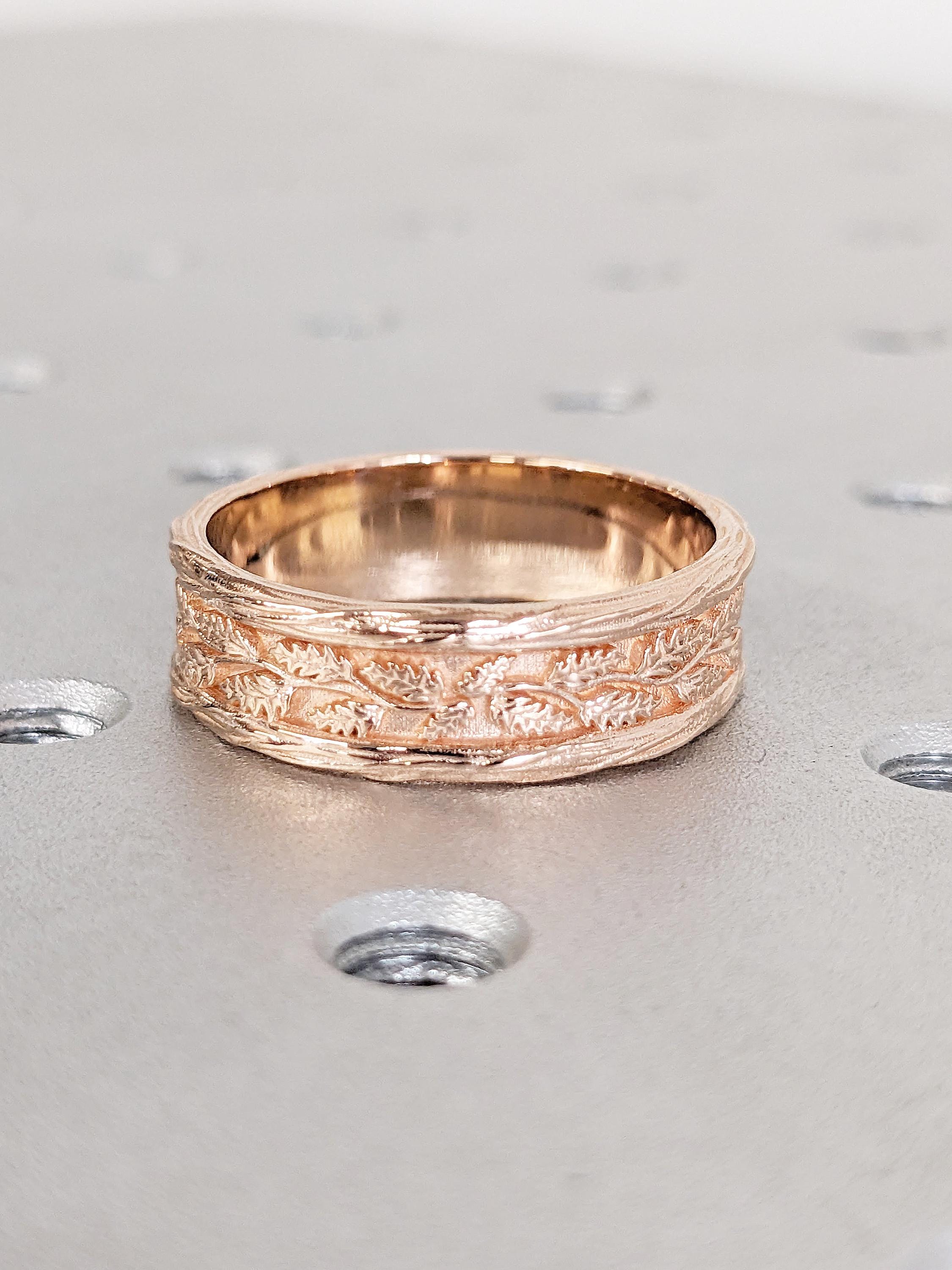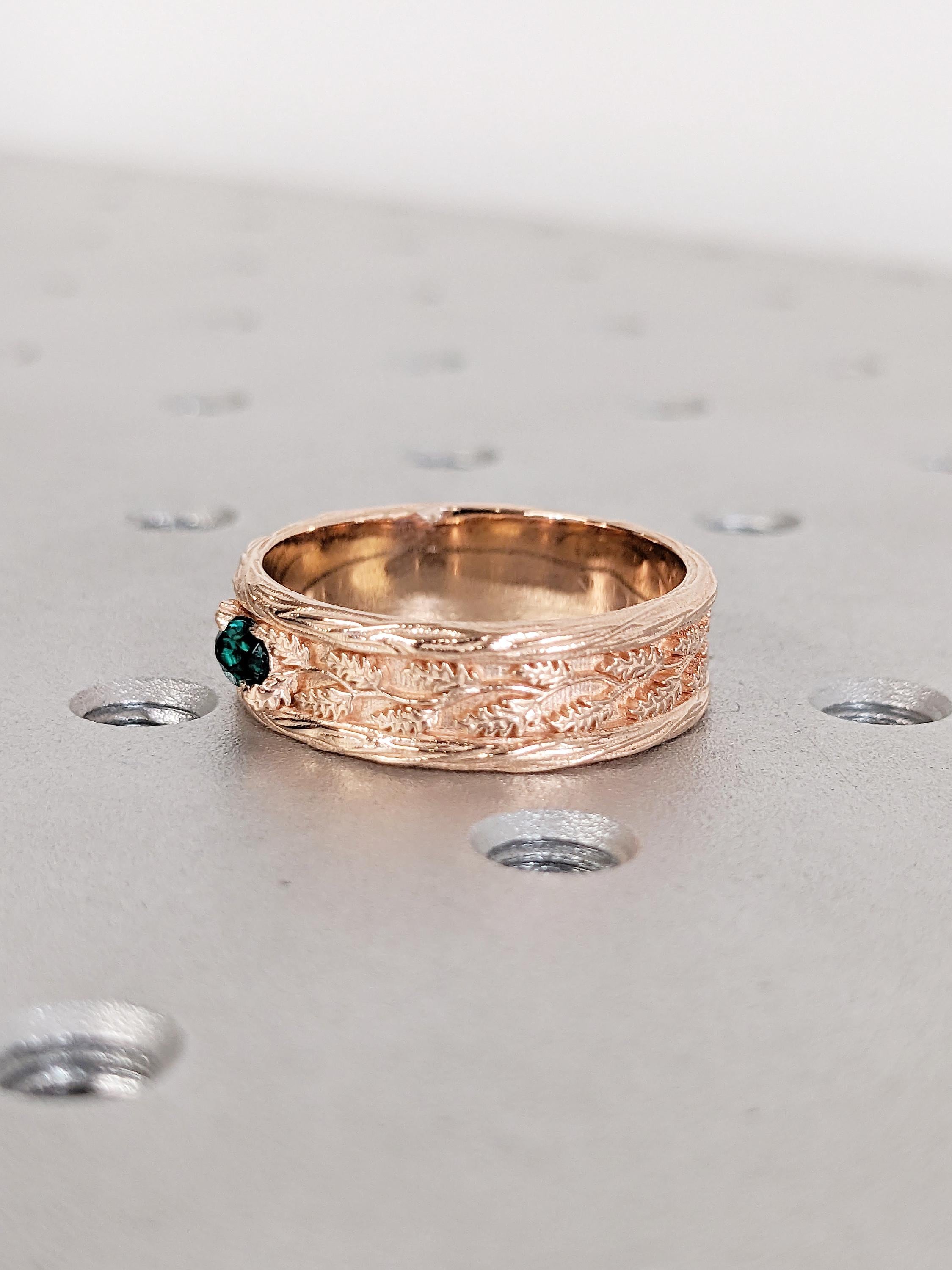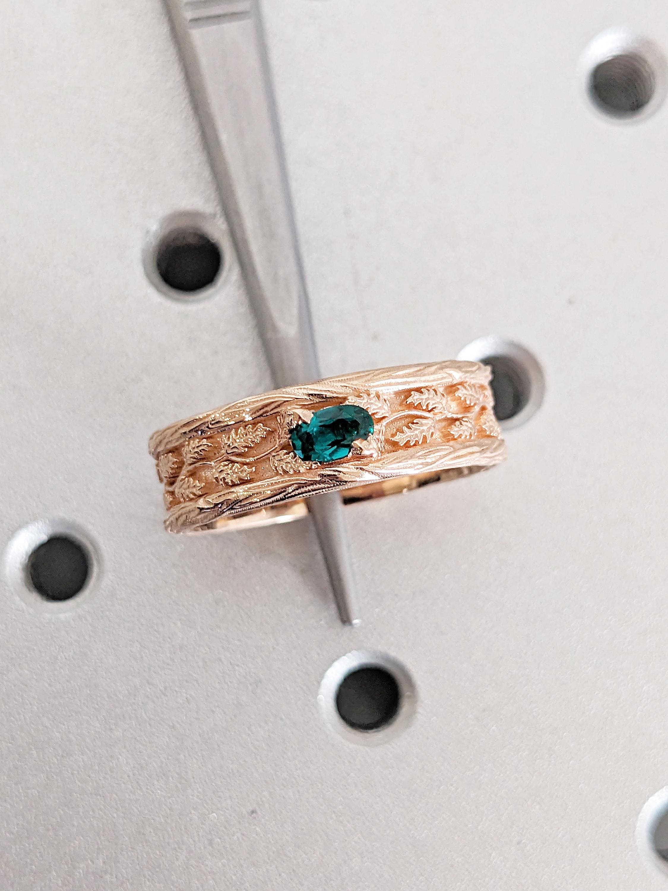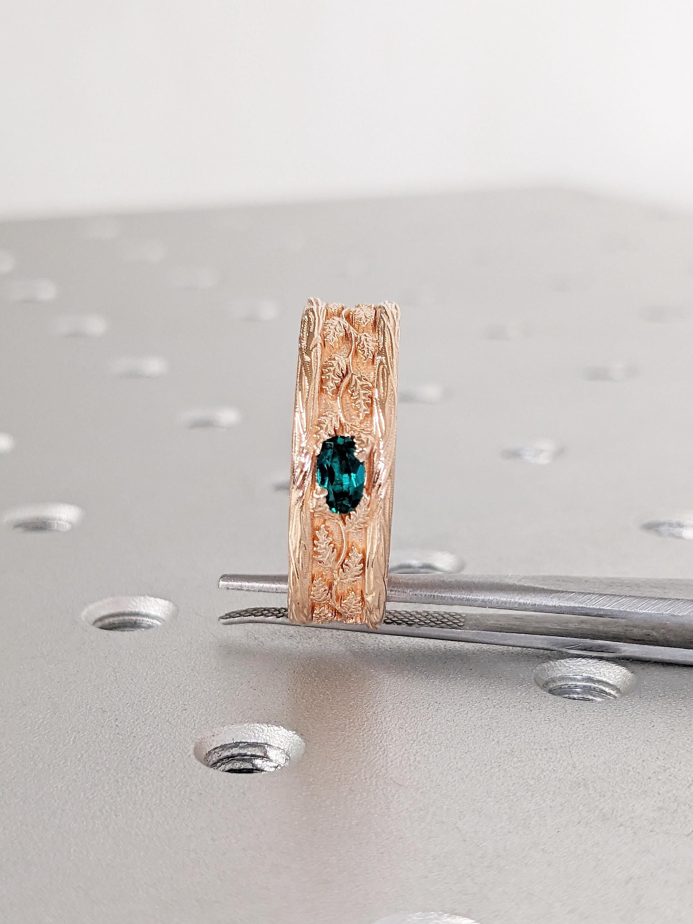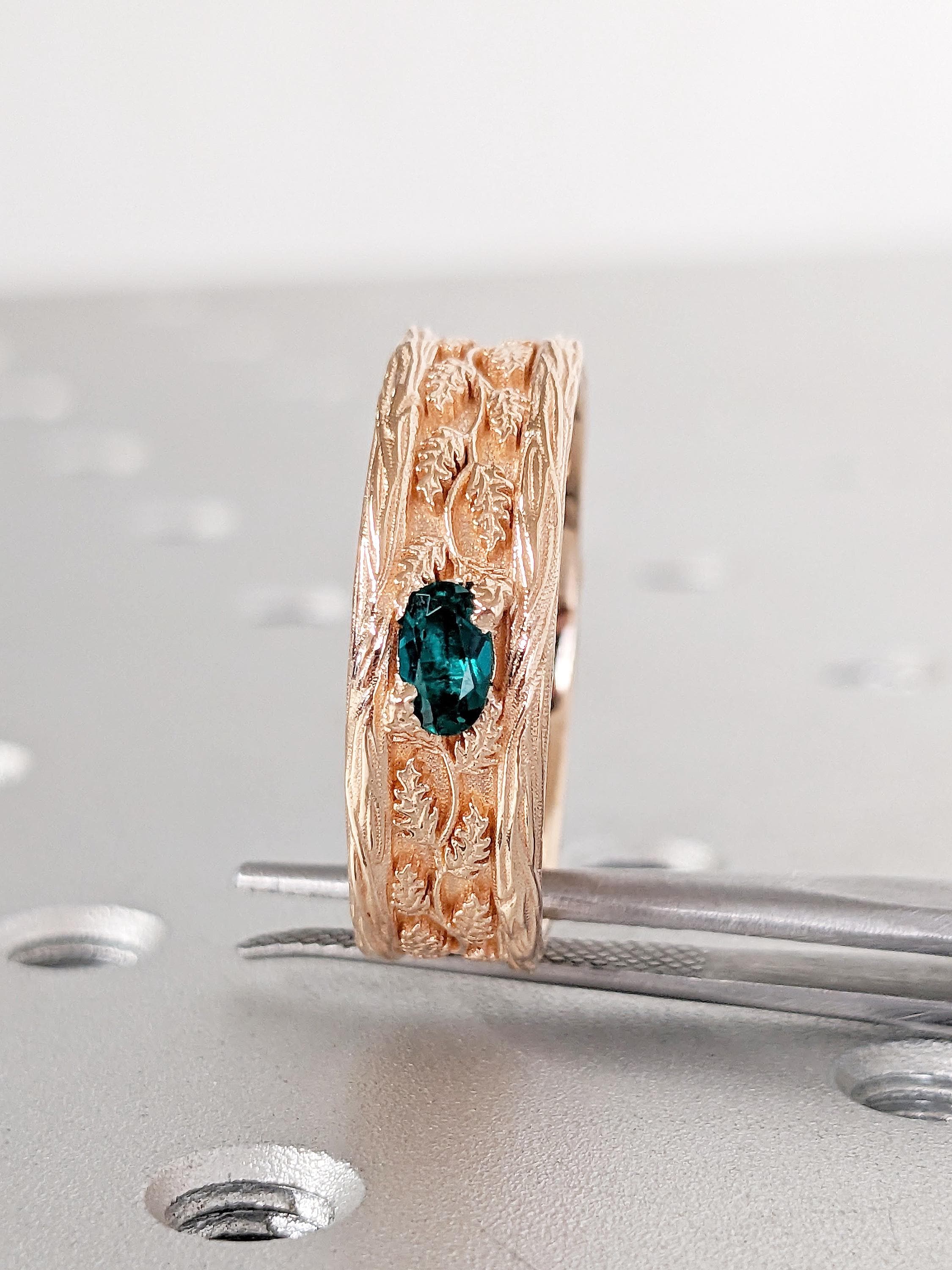 Vintage 14k Rose Gold Men Wedding Band, Art Deco Rings for Men, Oval Lab Emerald Men's Wedding Ring, Nature Inspired Ring, Gemstone Ring
