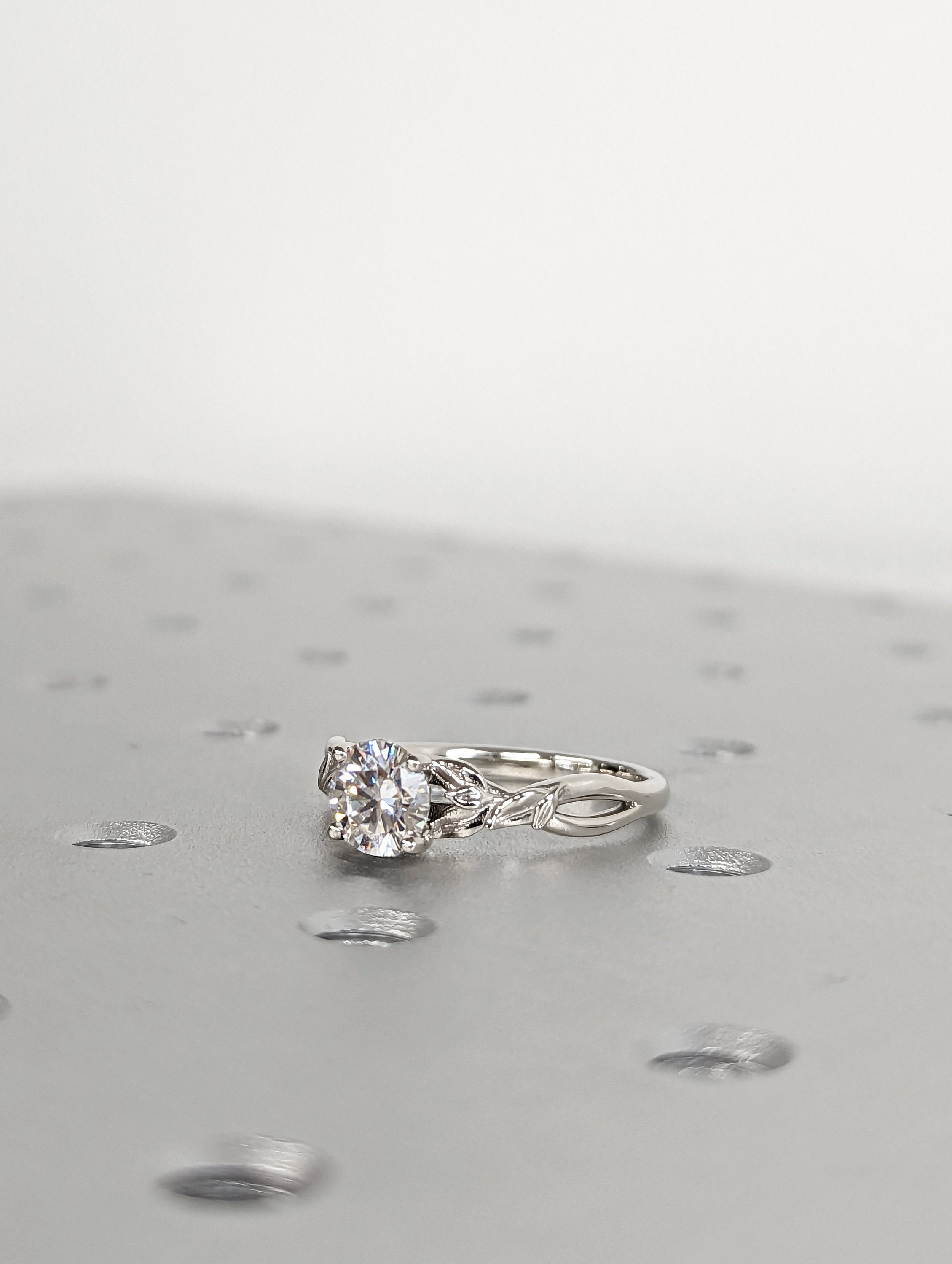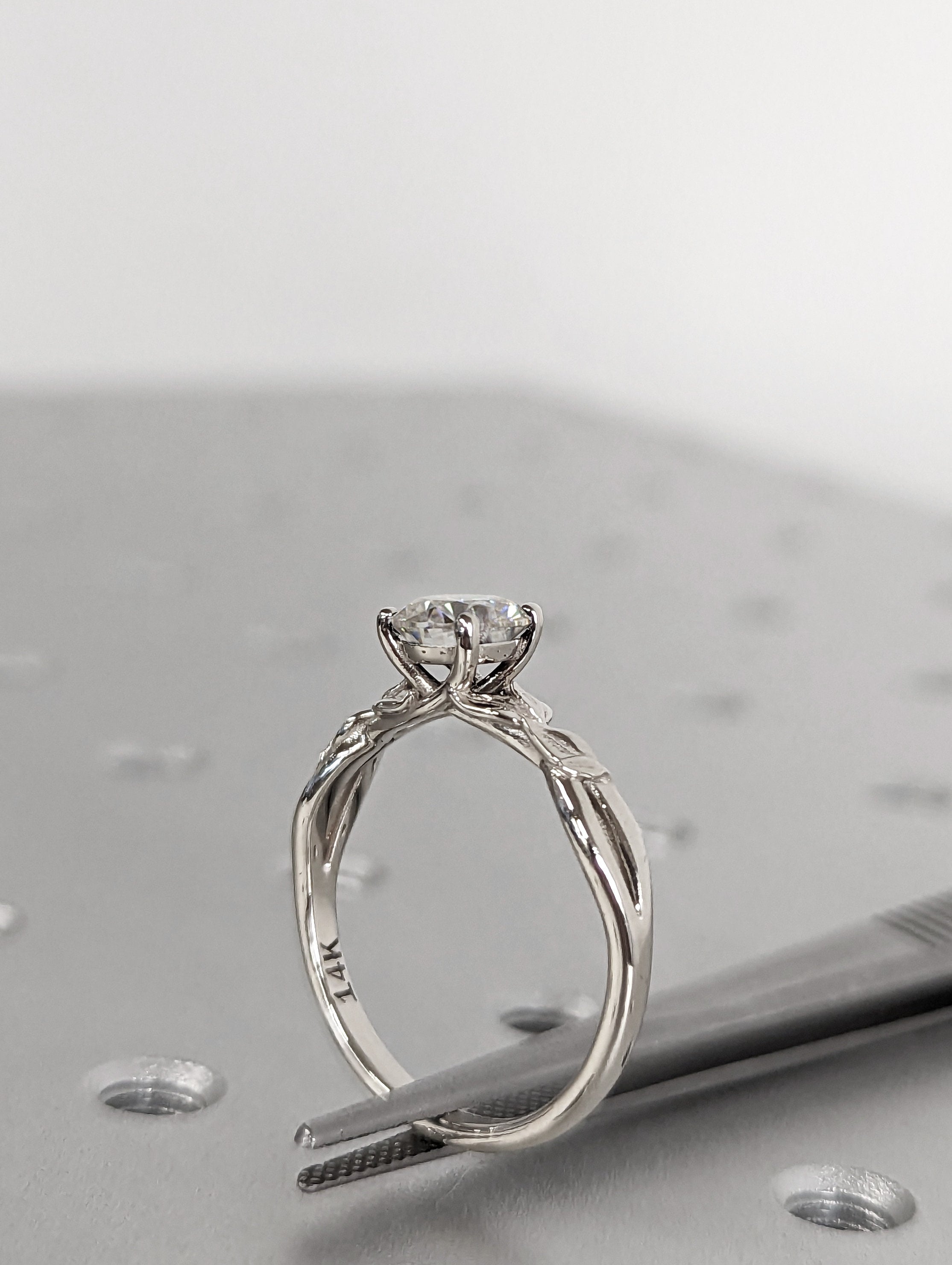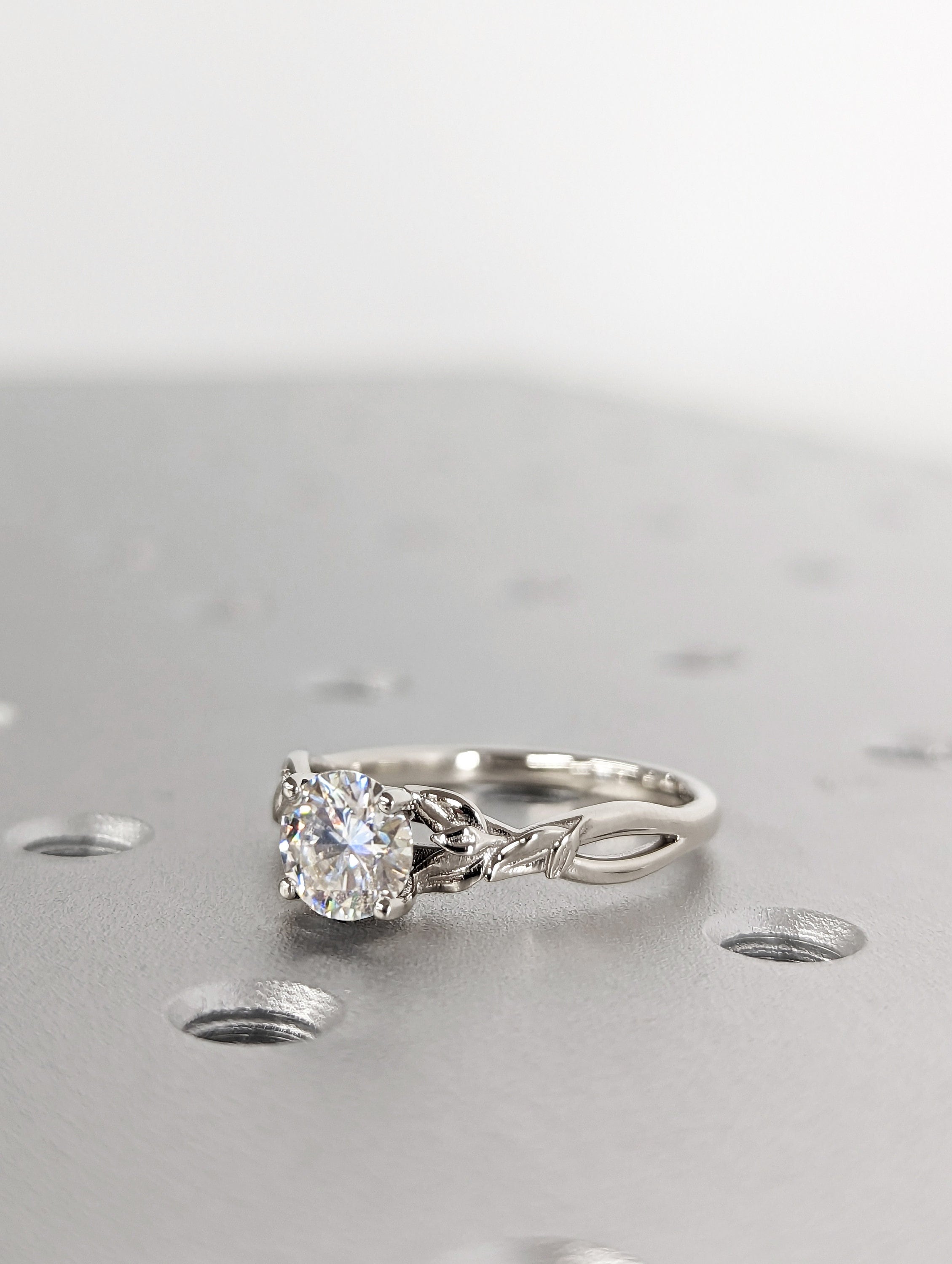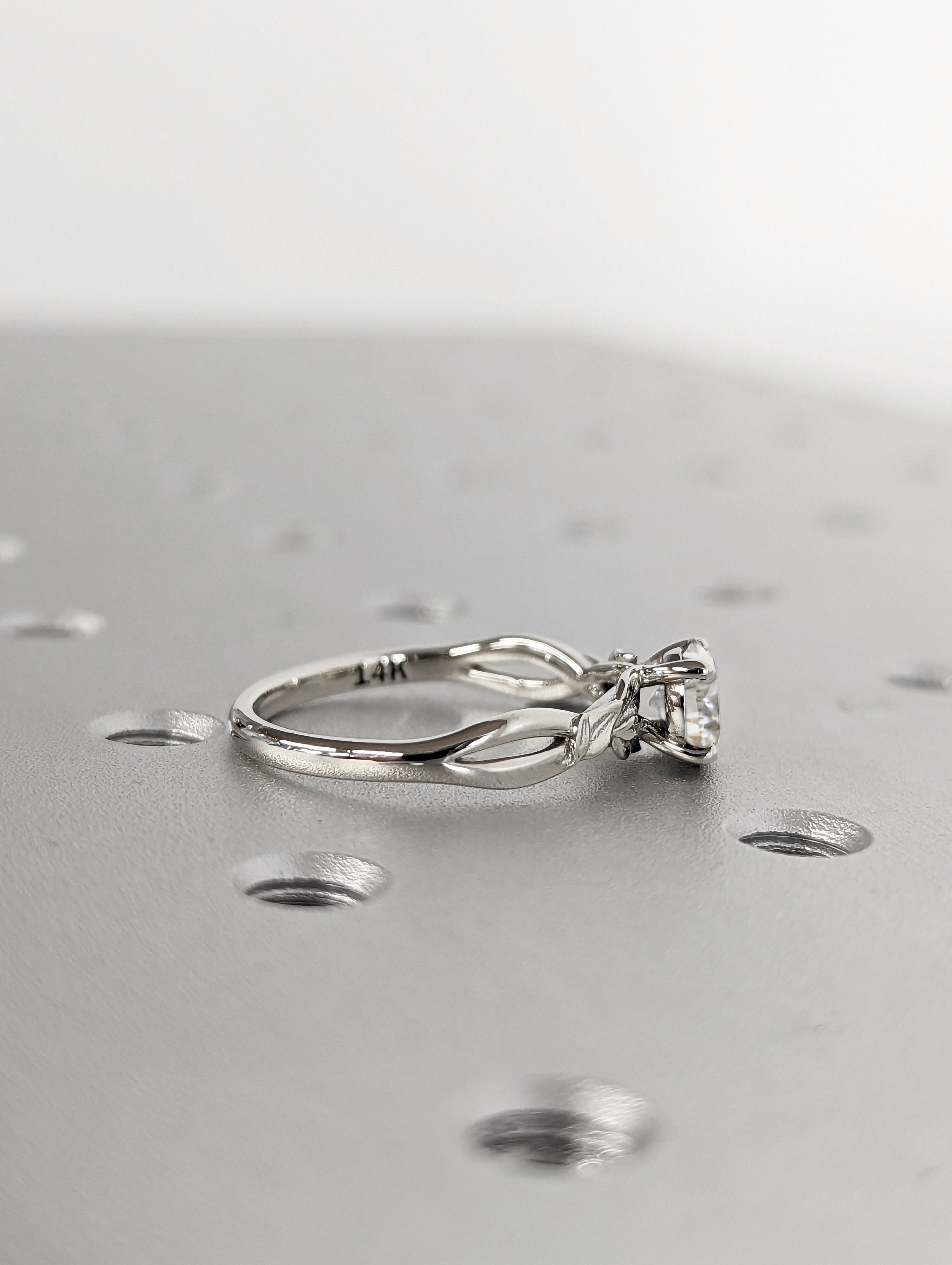 Vintage 1ct round moissanite engagement ring leaf 14k white gold ring branch twig Nature inspired engagement ring leaf Branch Twig Ring
