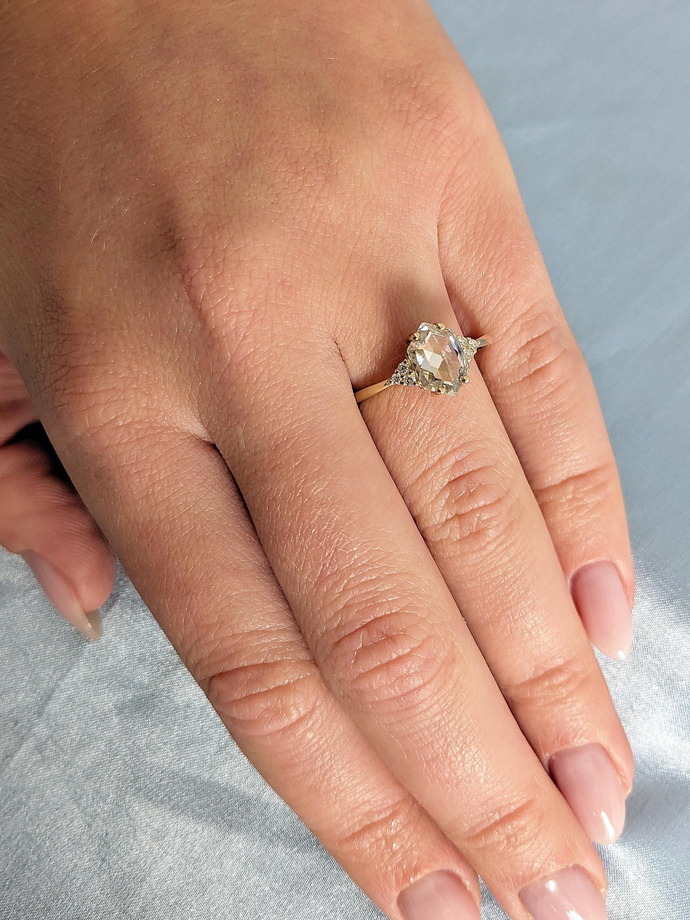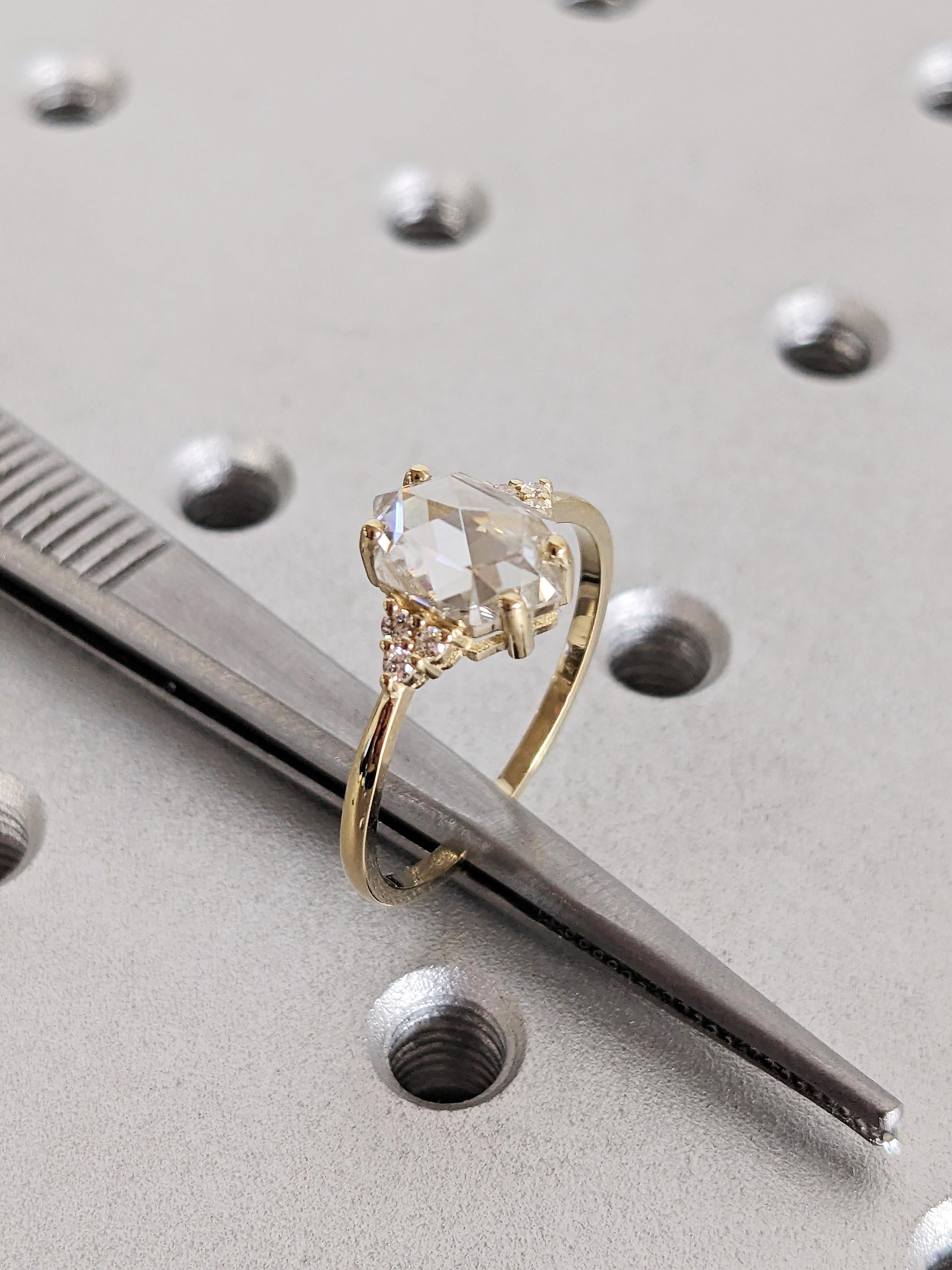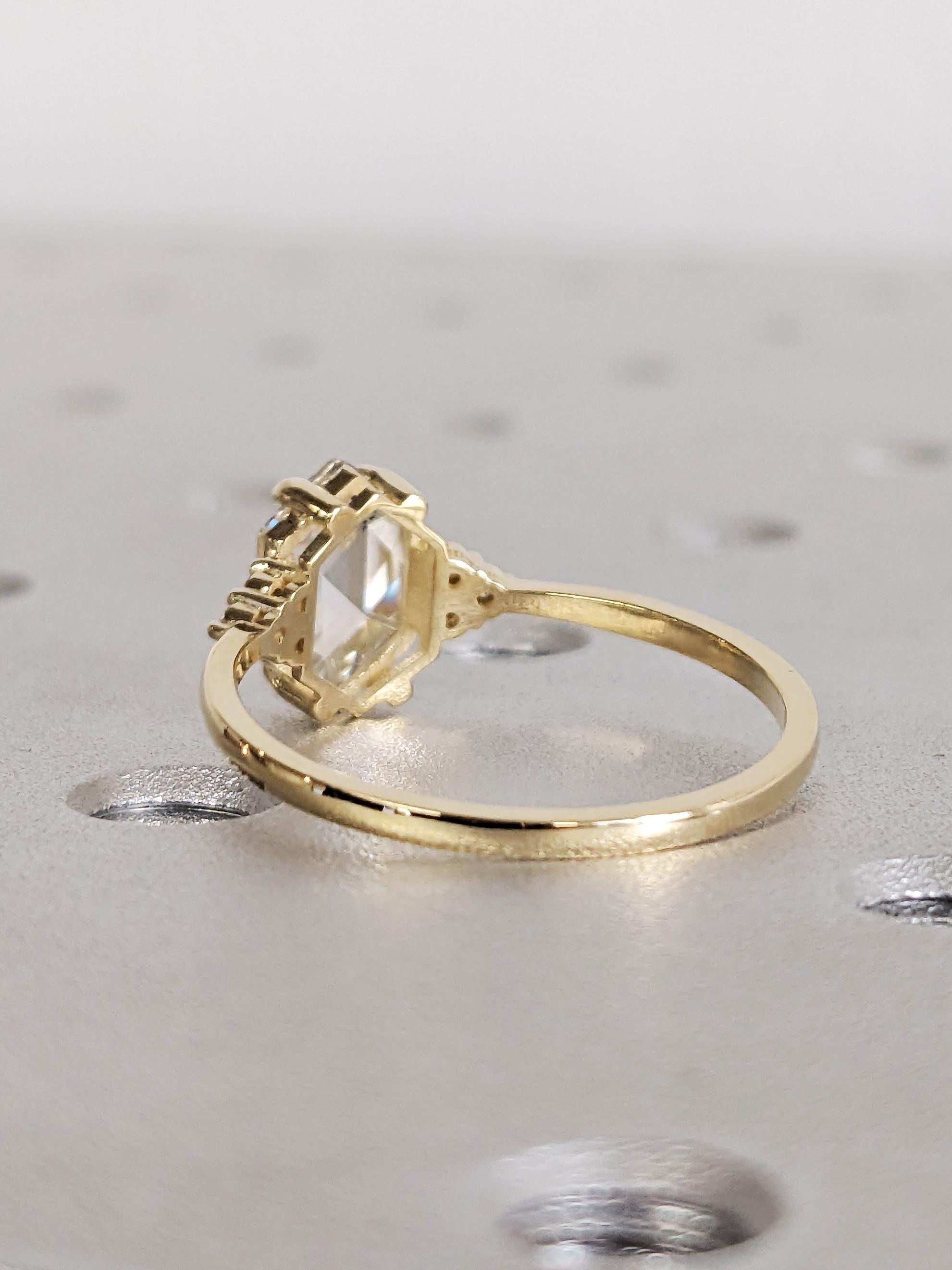 Vintage Art Deco Moissanite Engagement Ring, 14K Gold Hexagon Cut Moissanite Ring, Diamond Cluster Wedding Ring