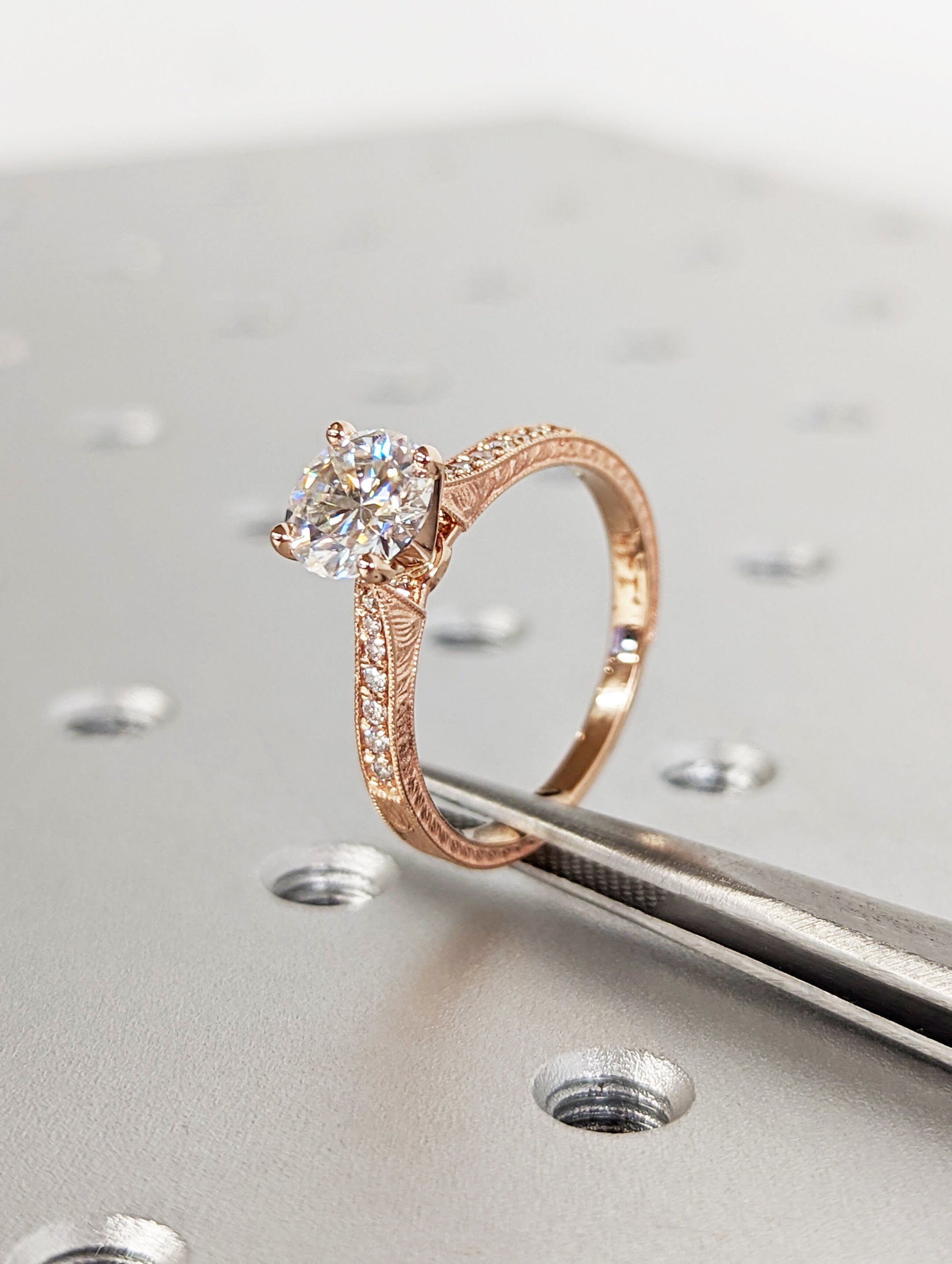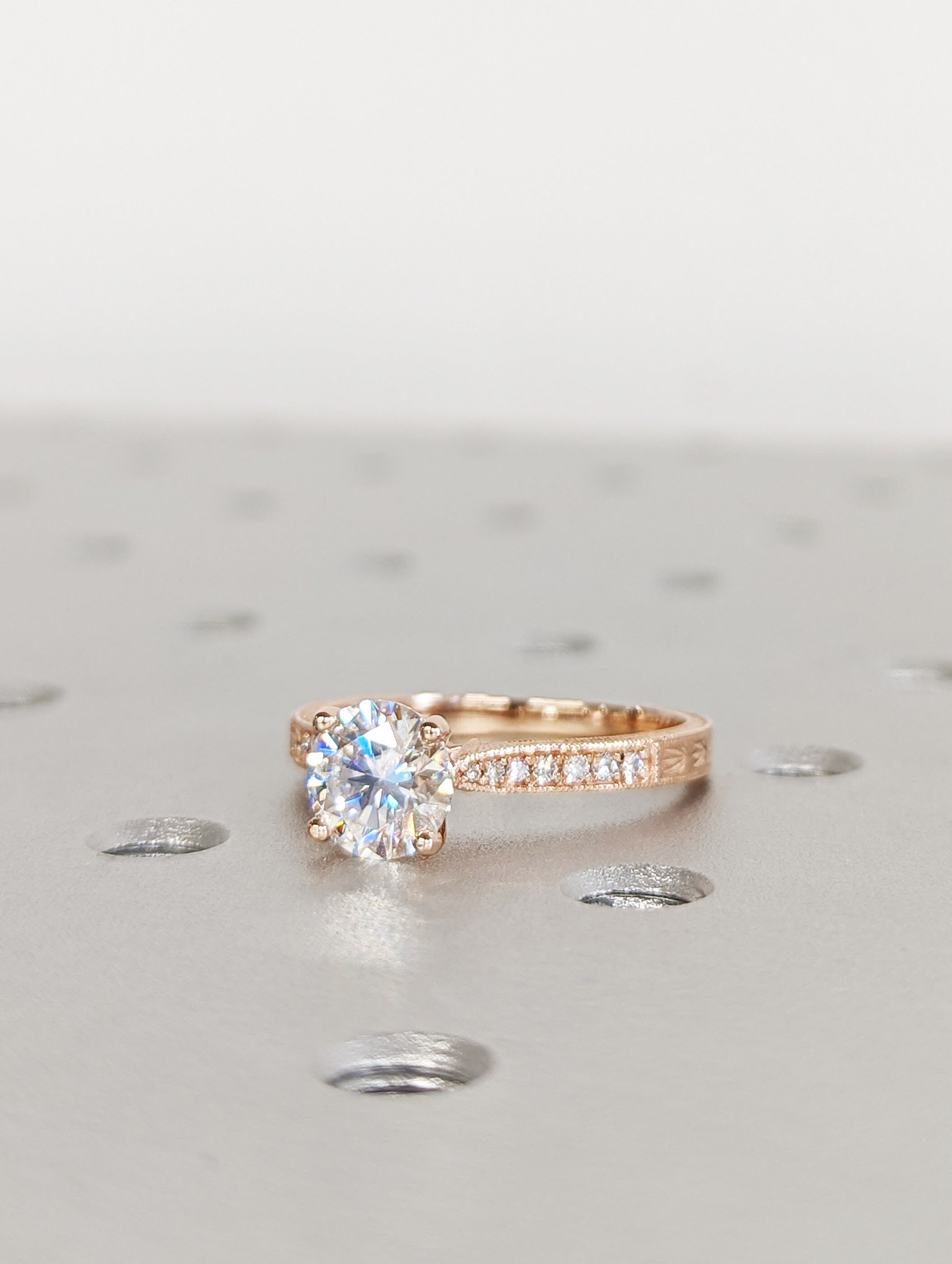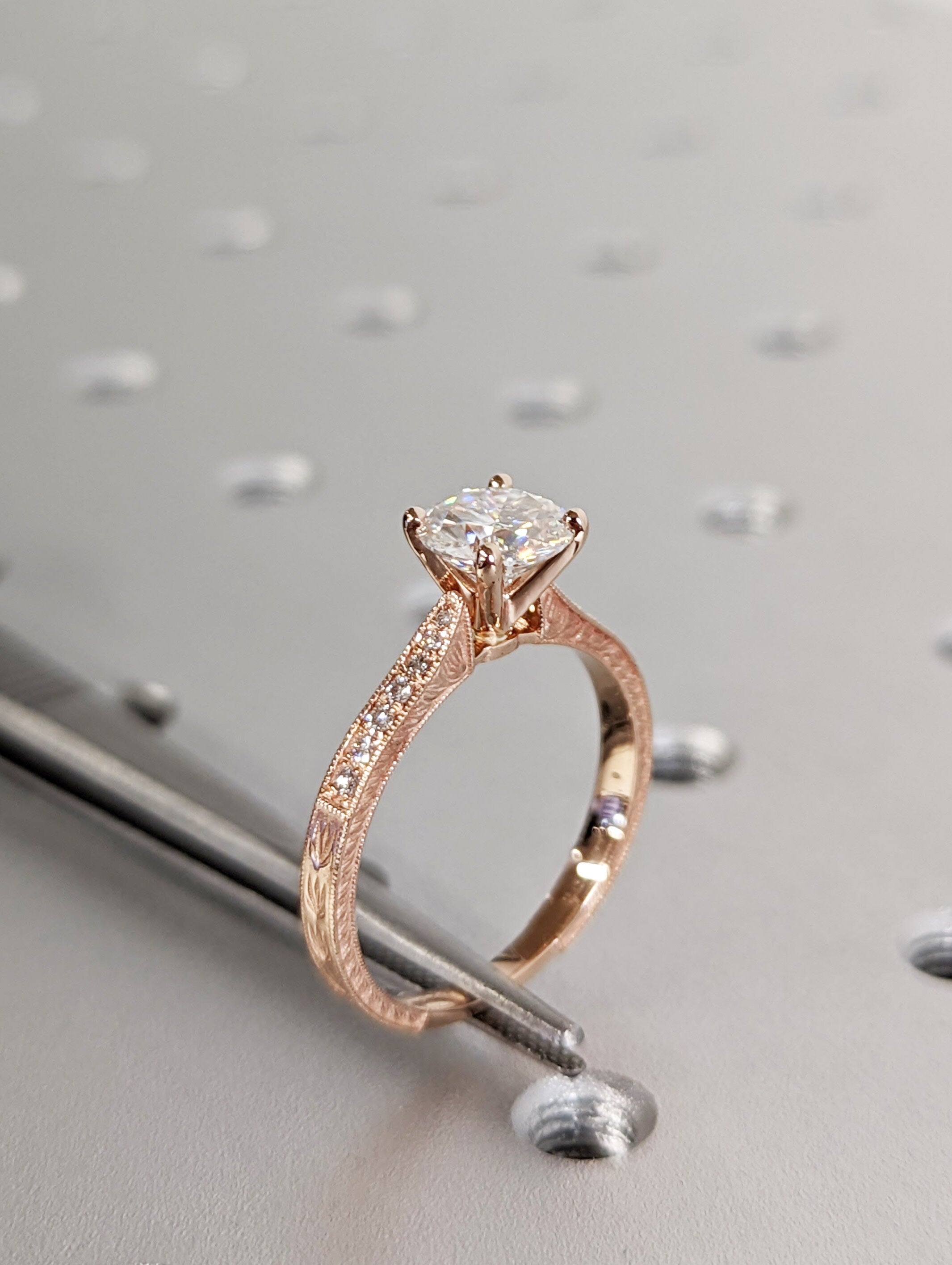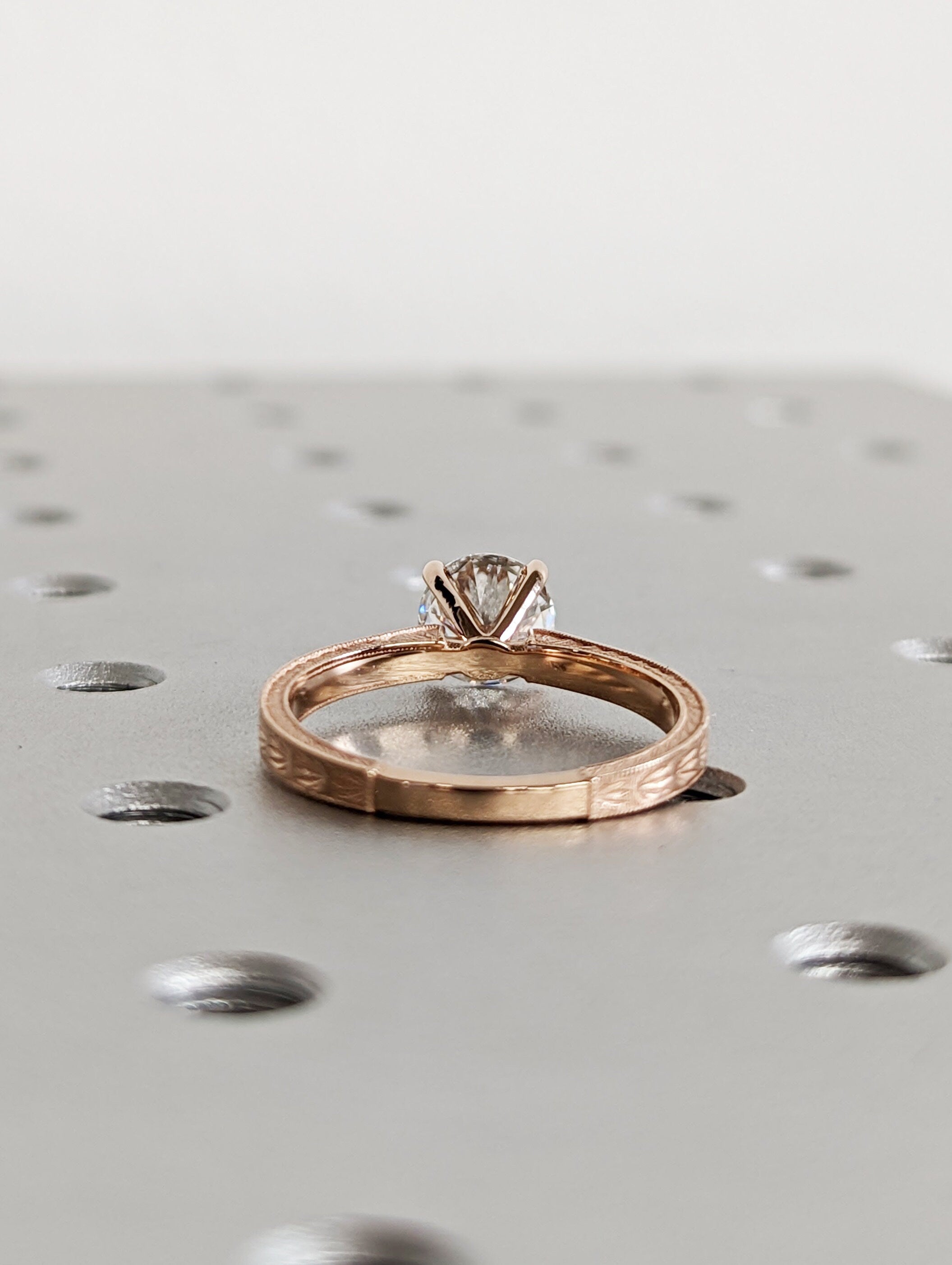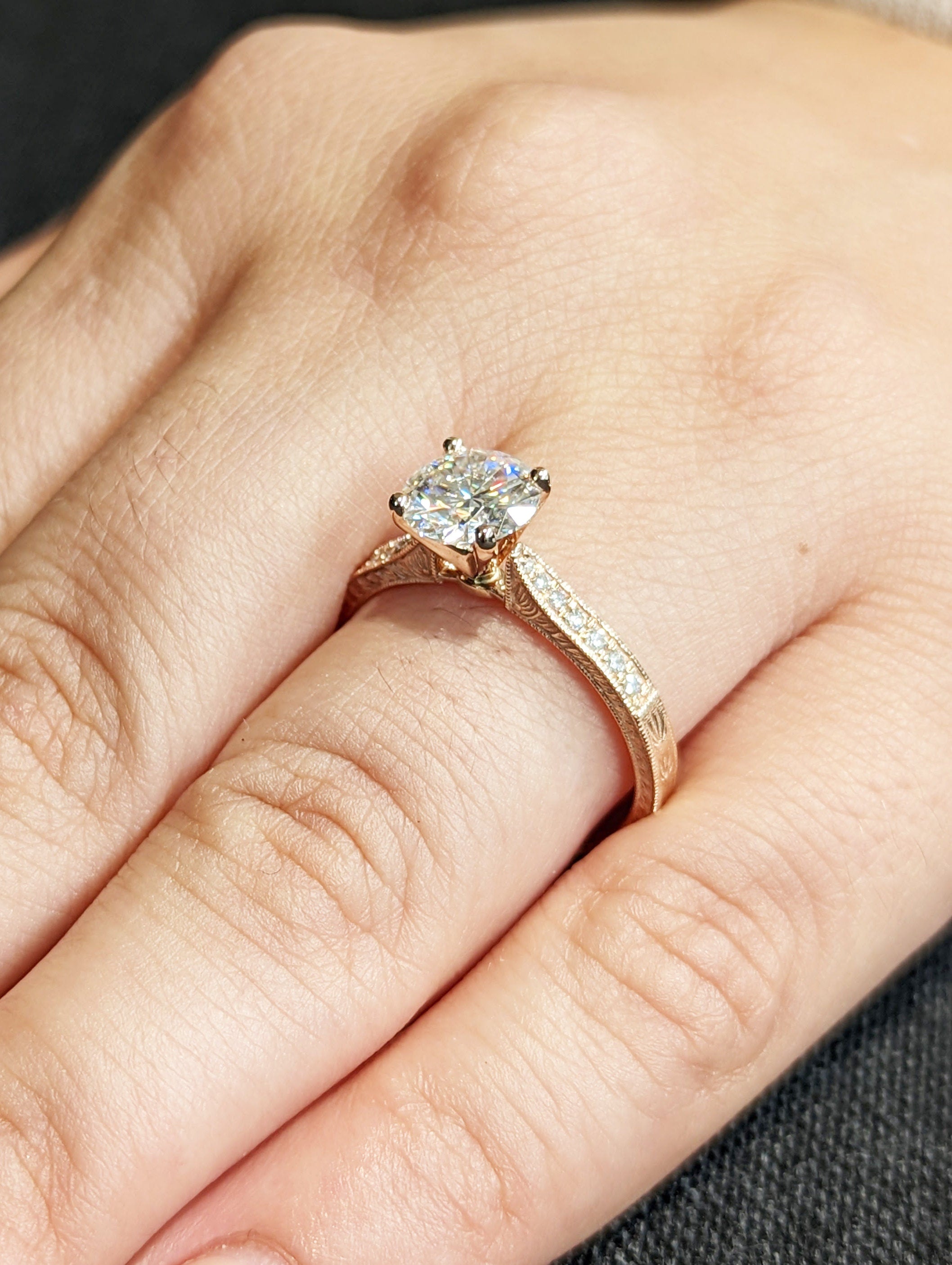 White Gold Hand Engraved Moissanite Ring, Vintage Engagement Ring 14k gold hand engraved ring, moissanite engagement ring, vintage ring, hand engraving