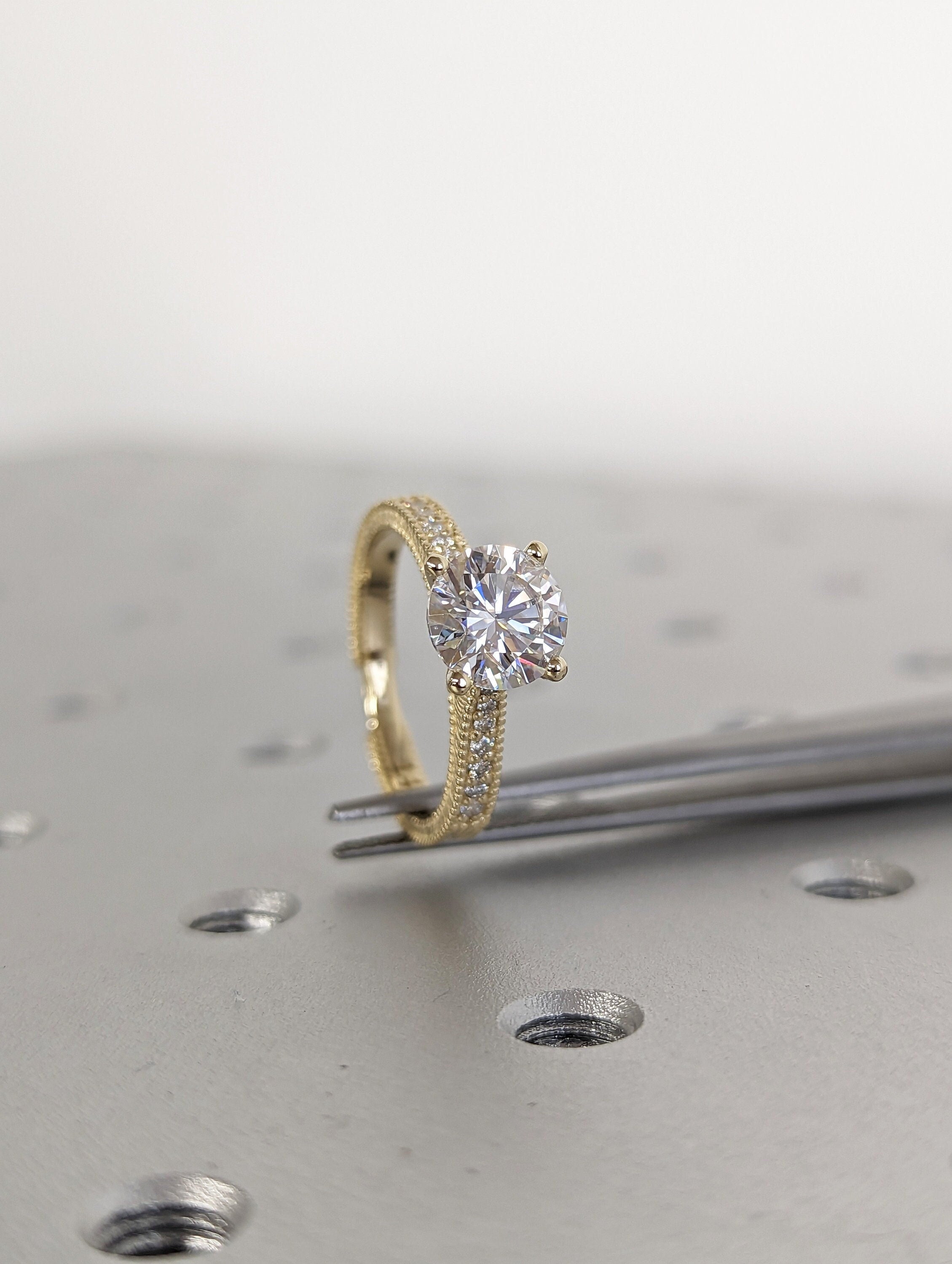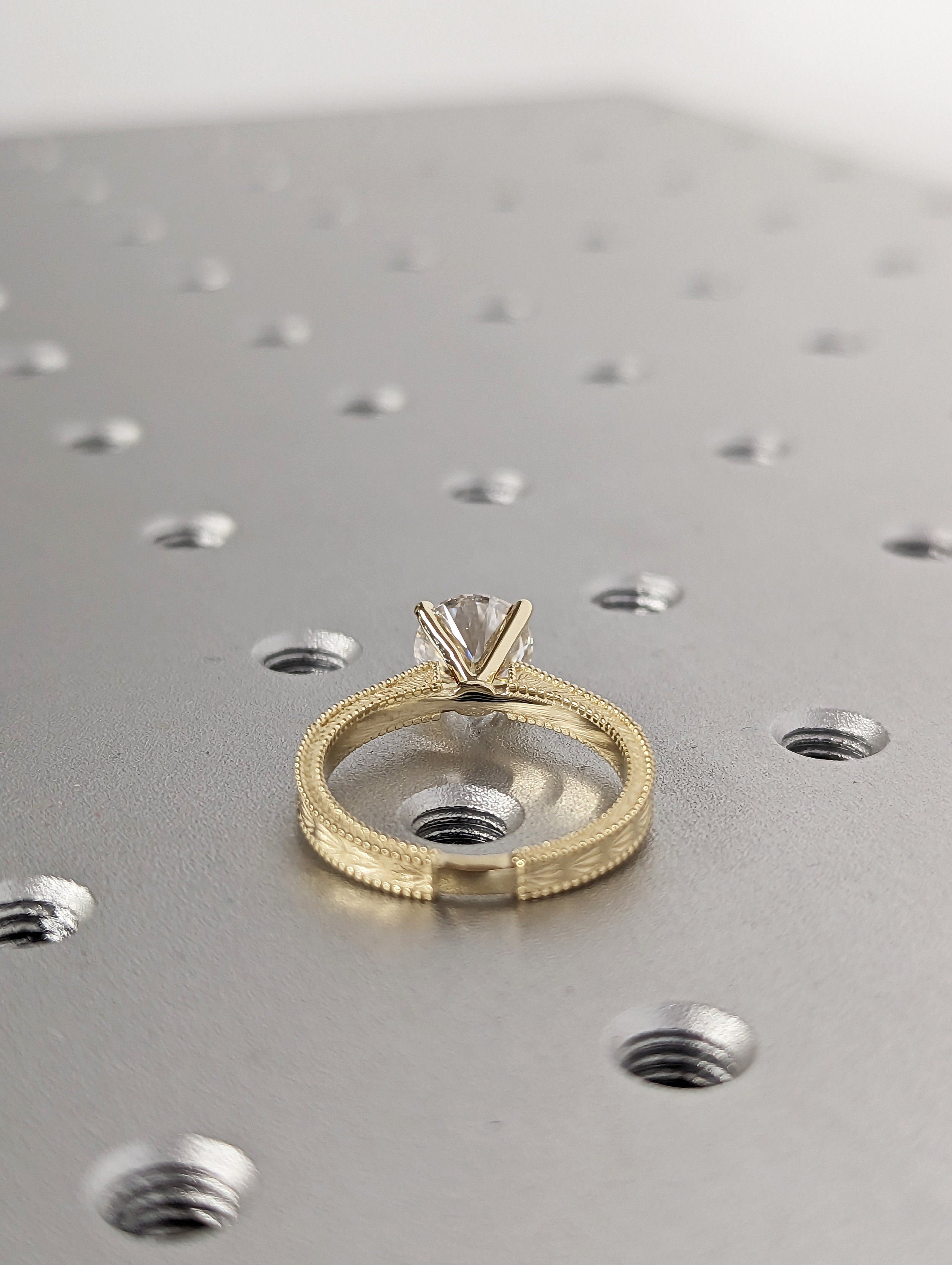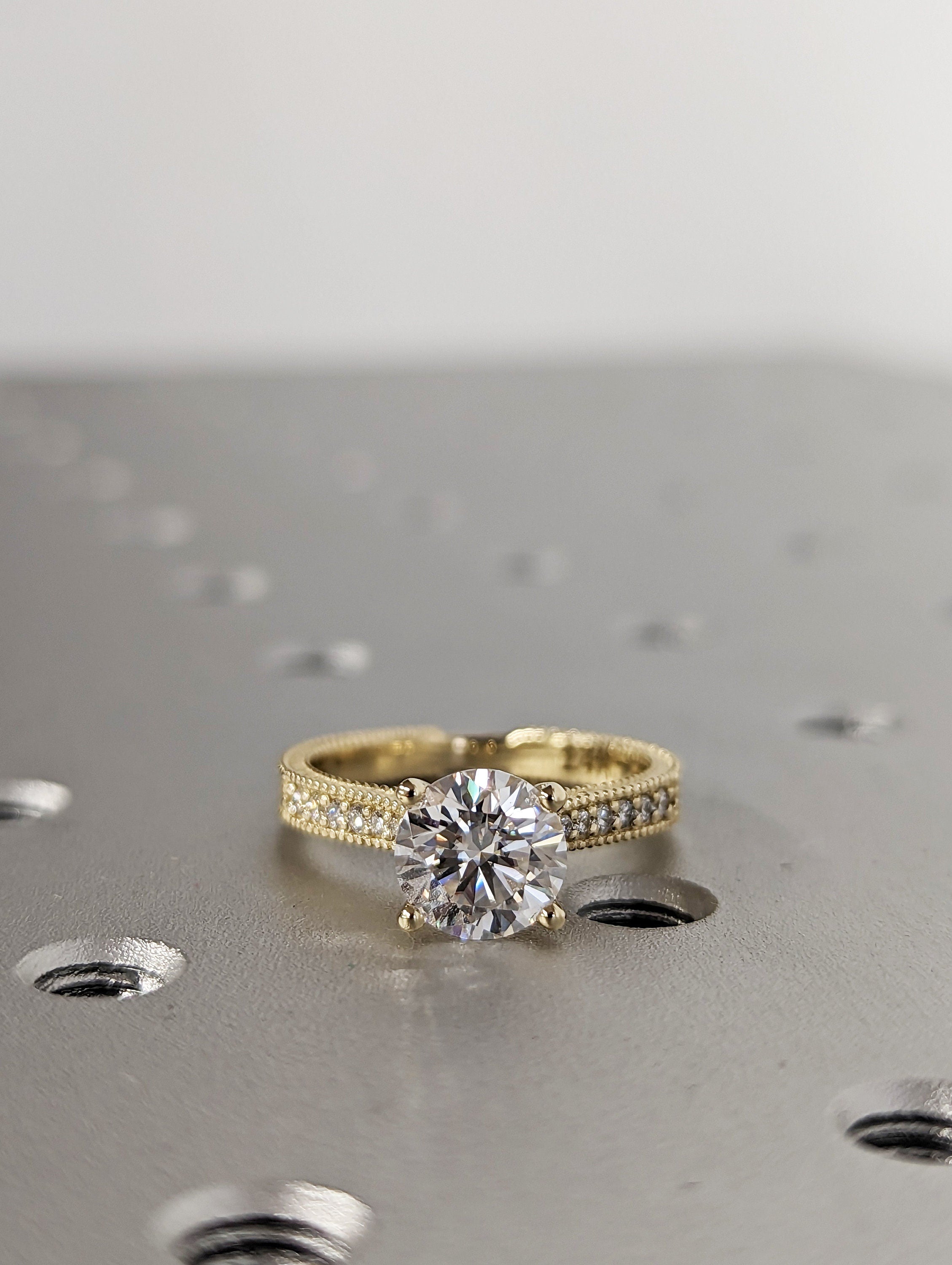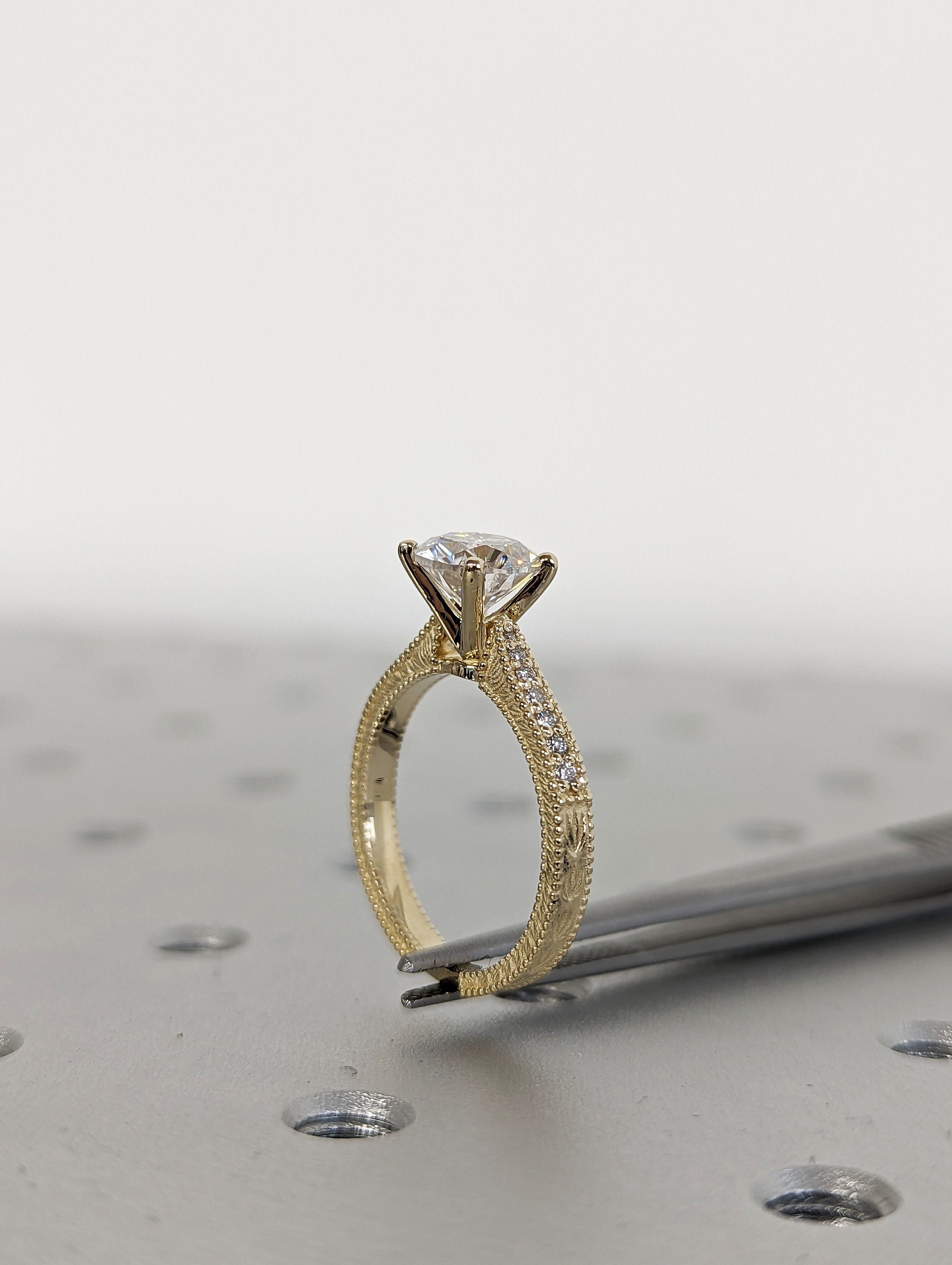 White Gold Hand Engraved Moissanite Ring, Vintage Engagement Ring 14k gold hand engraved ring, moissanite engagement ring, vintage ring, hand engraving