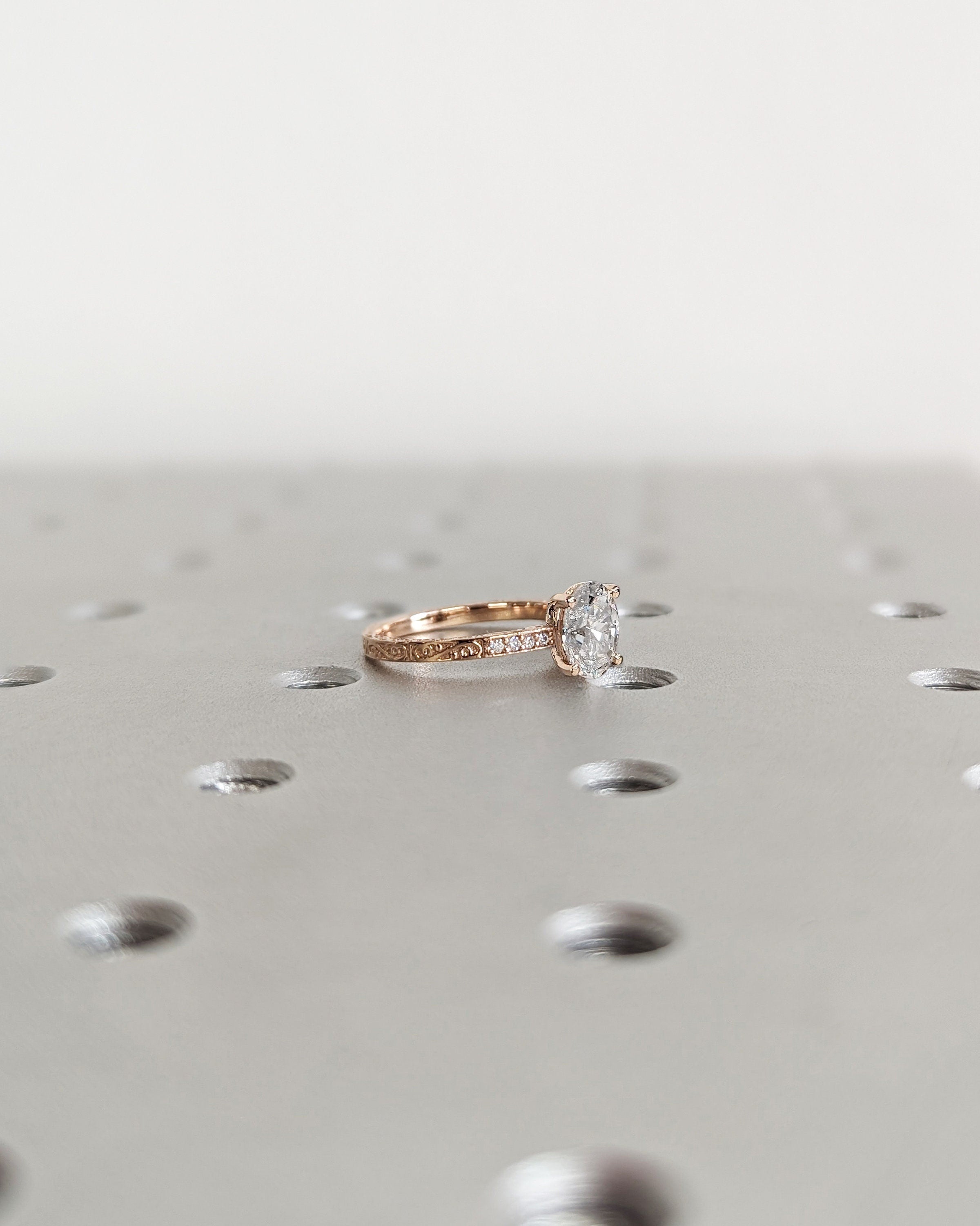 Vintage Engagement Ring, 18K Gold, Hand Engraved Ring, Moissanite Engagement Ring, Vintage Ring, Hand Engraving, Art Deco, Minimalist Ring