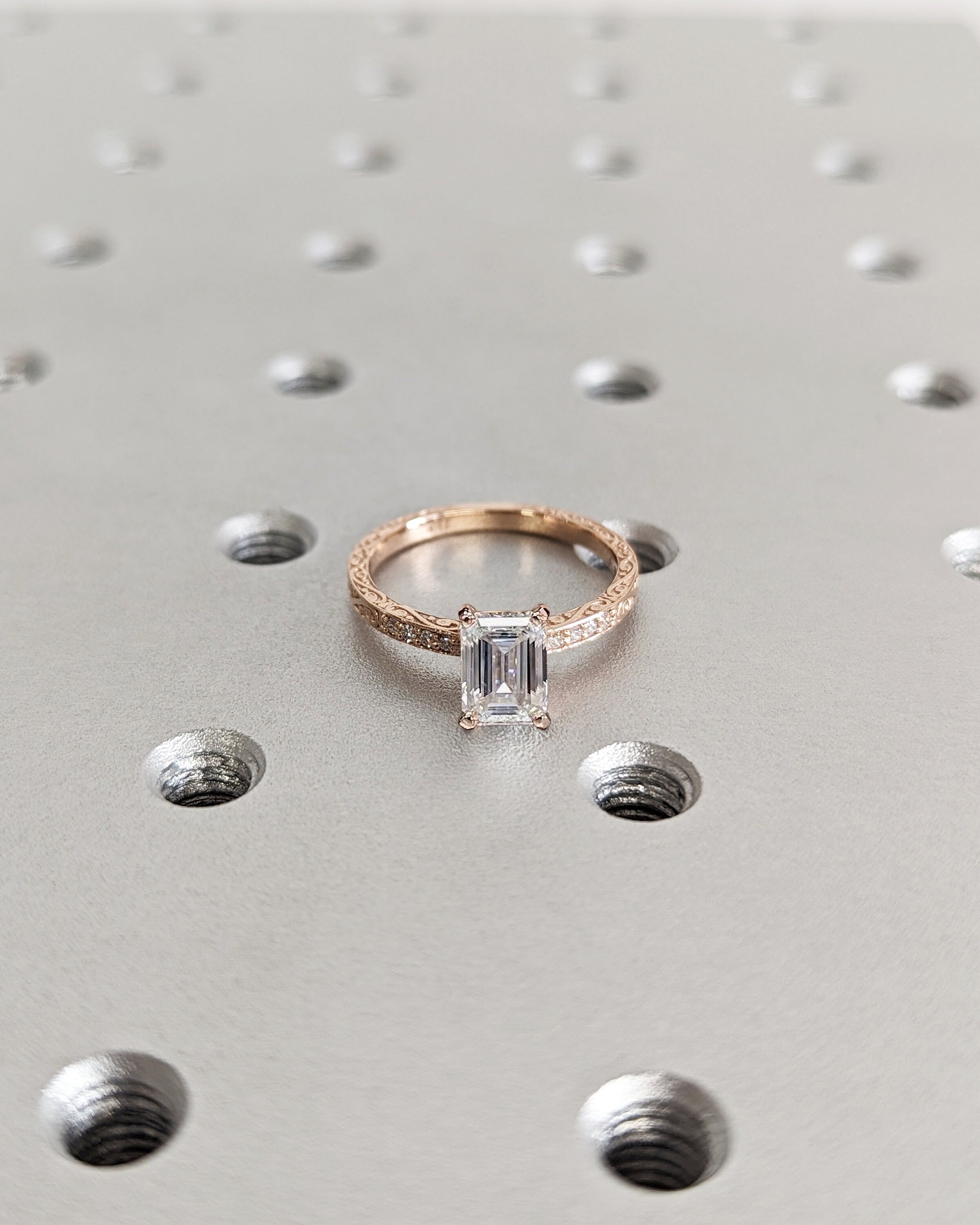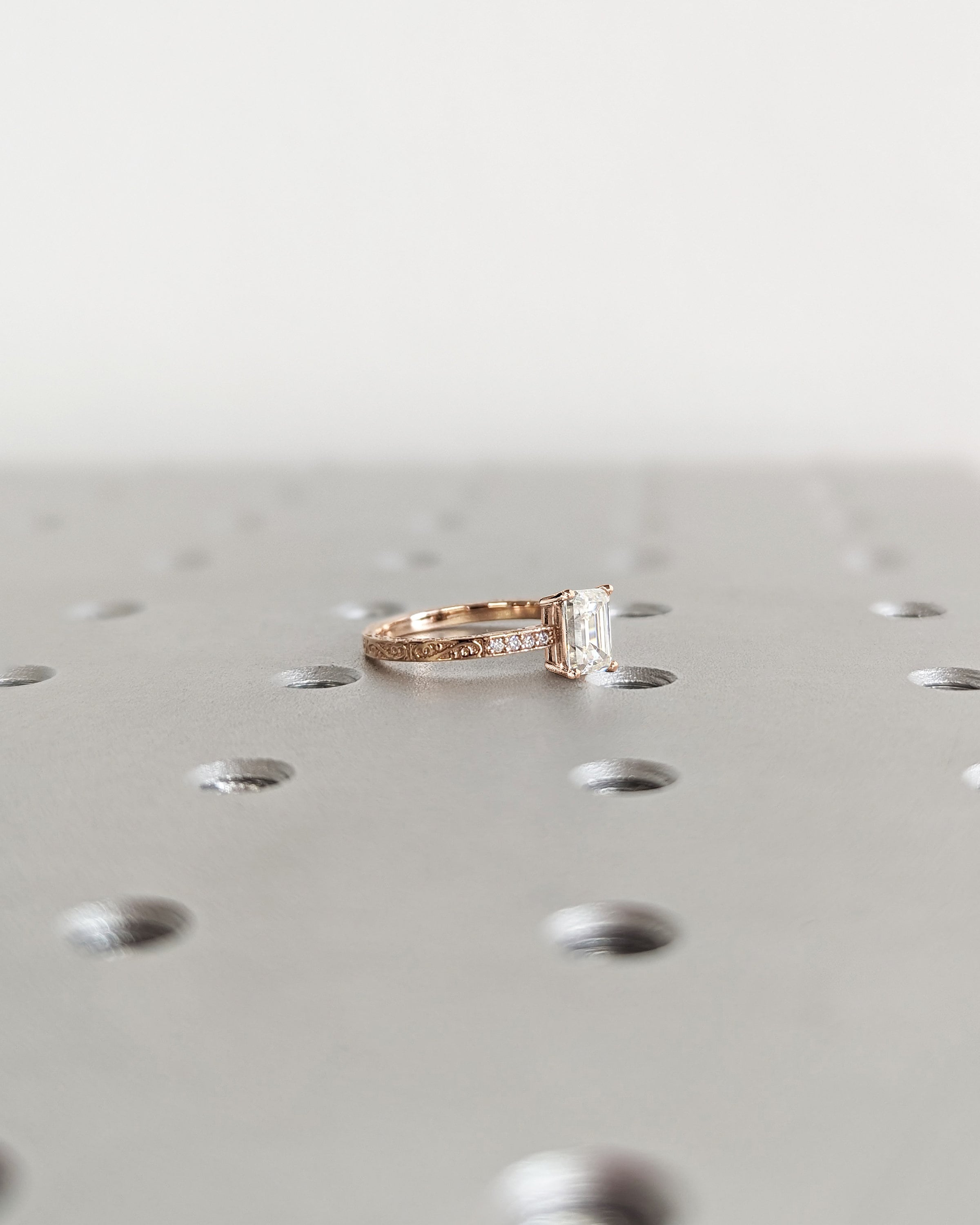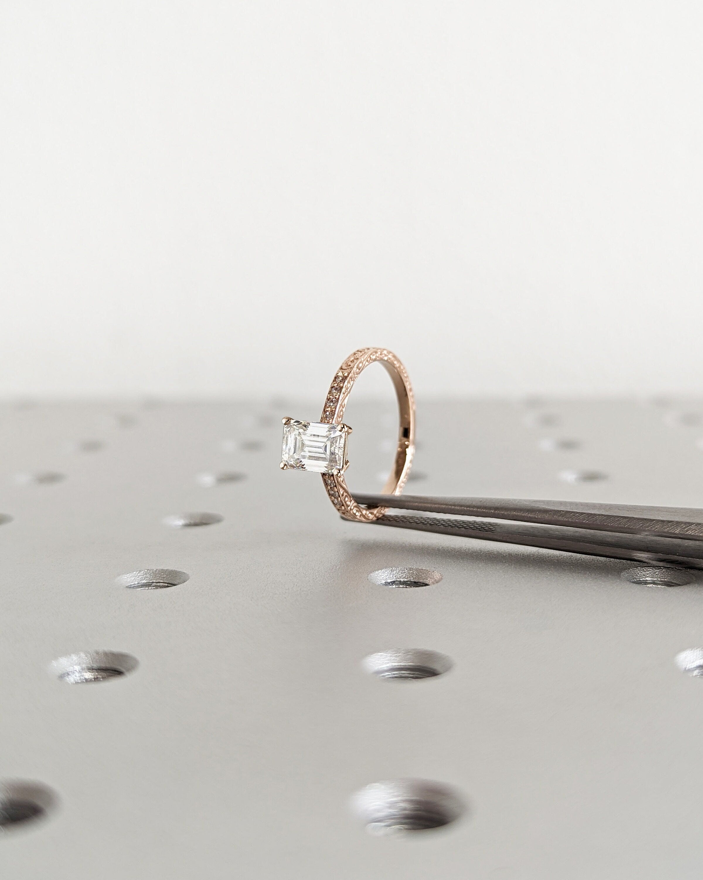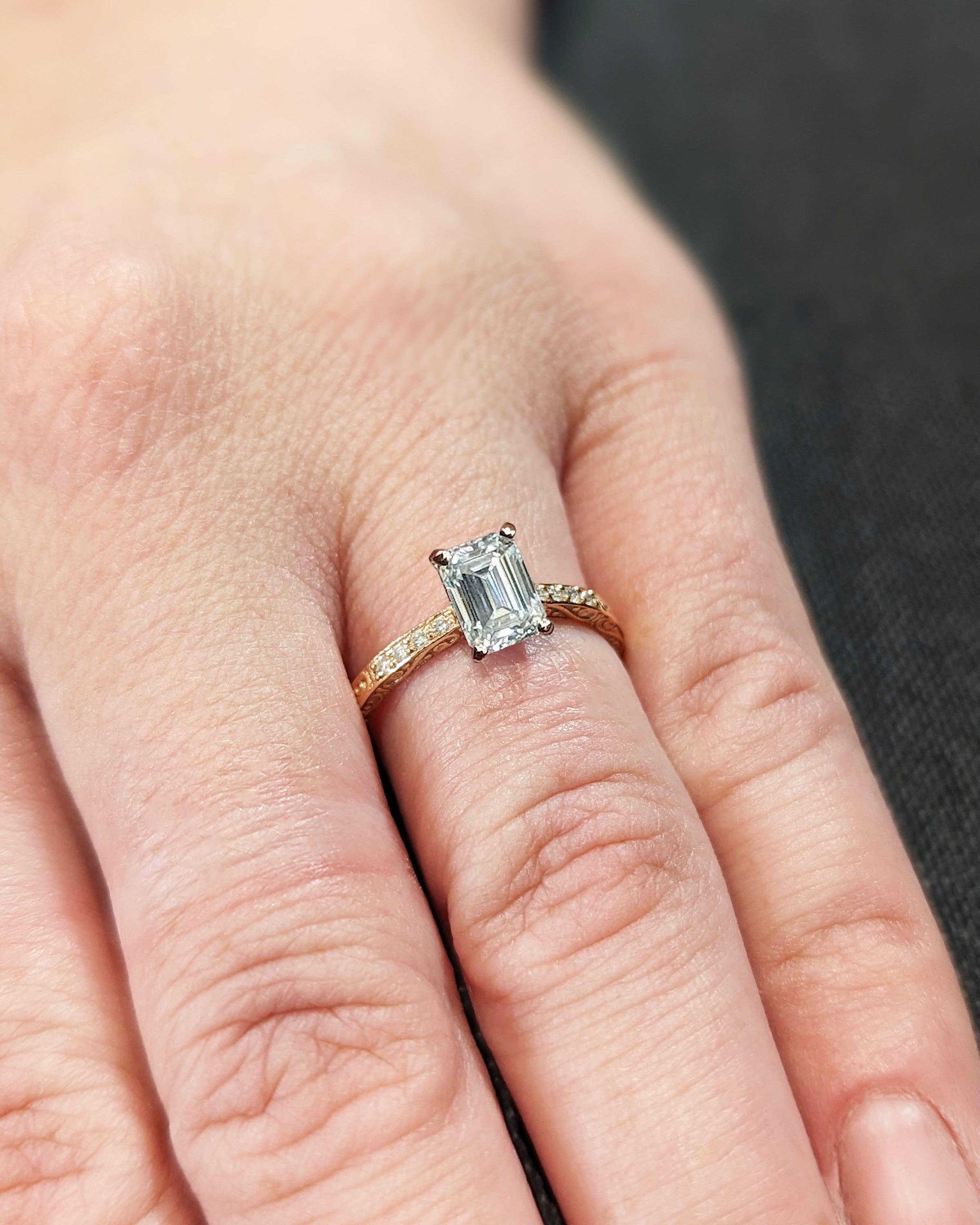 Vintage Engagement Ring, 18K Gold, Hand Engraved Ring, Moissanite Engagement Ring, Vintage Ring, Hand Engraving, Art Deco, Minimalist Ring