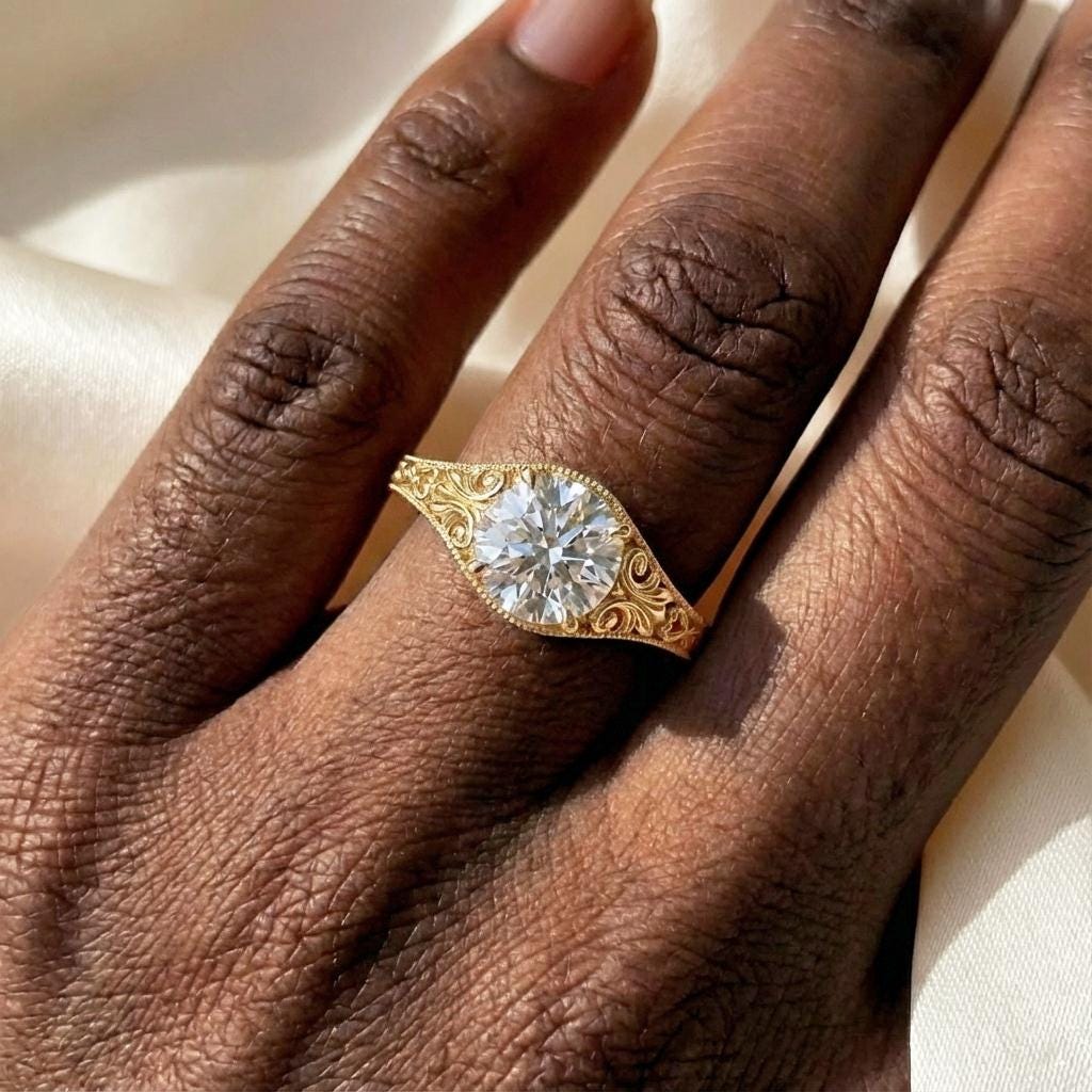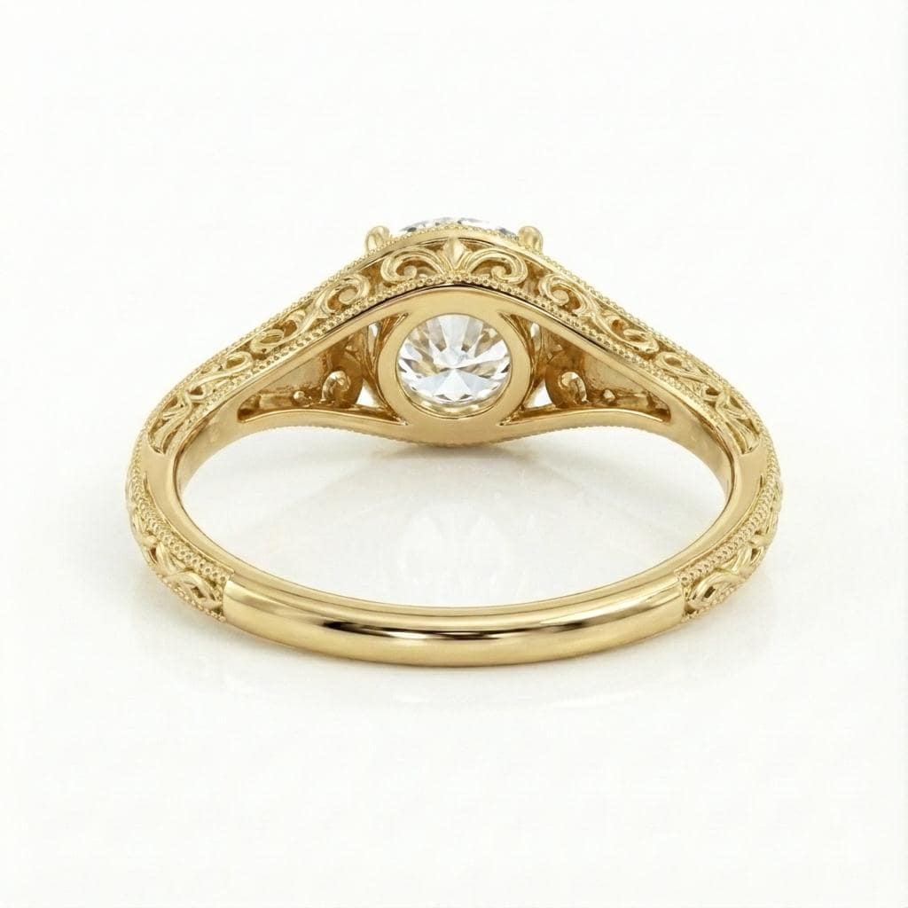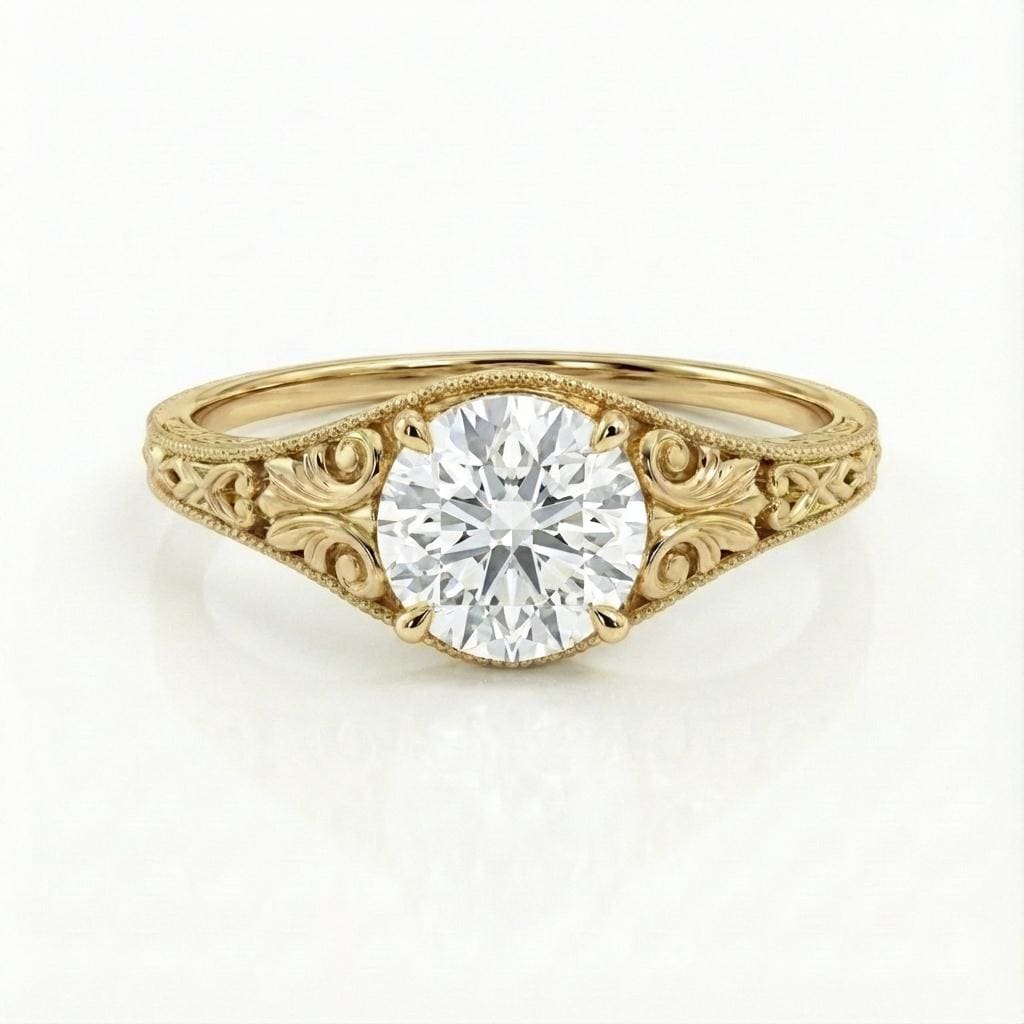 Vintage Filigree Lab Grown Diamond Ring | Round cut Lab Diamond Engagement Ring | 14K Solid Gold Art Deco Wedding Ring | Antique Style Ring