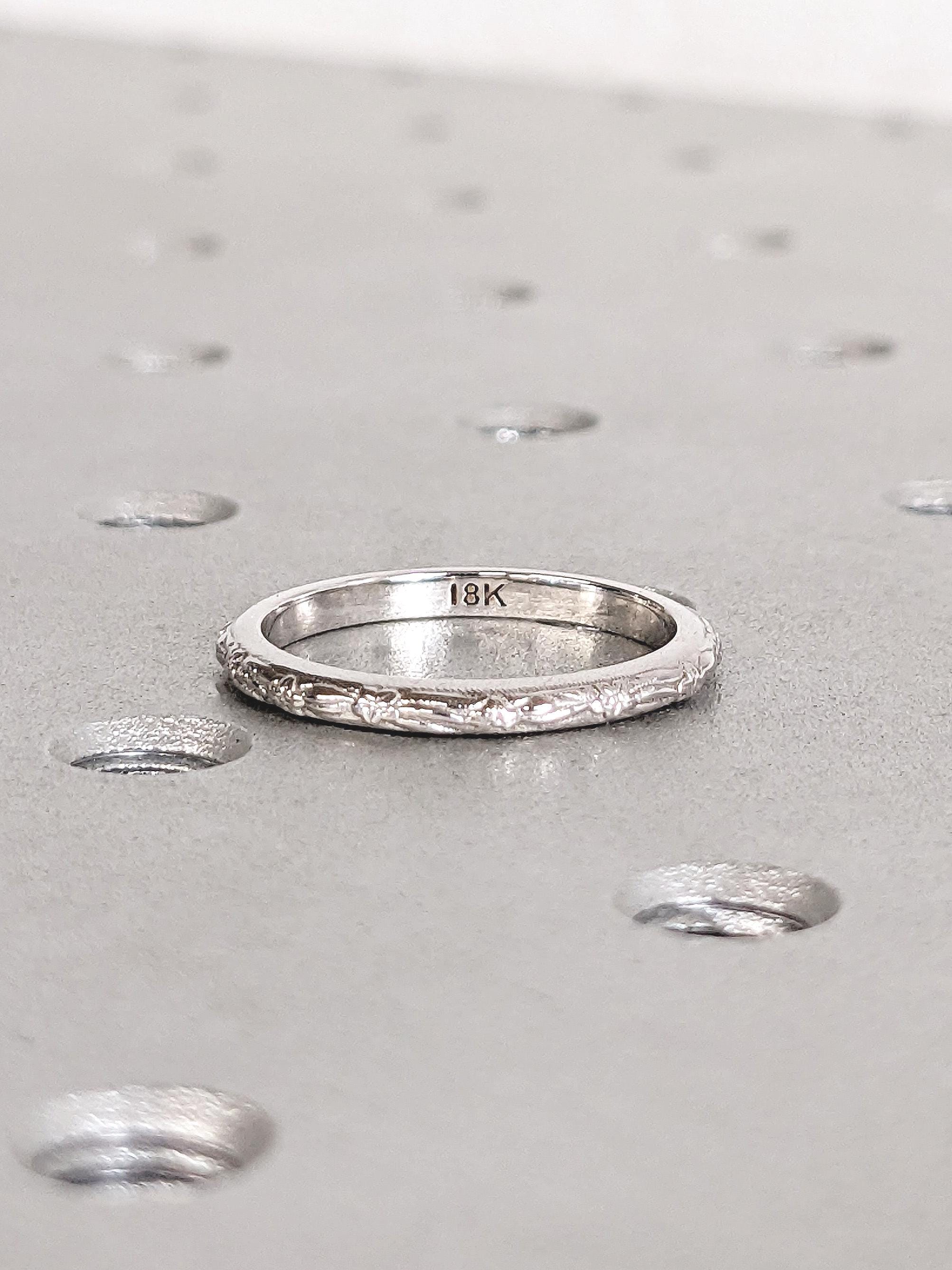 Vintage Floral Wedding Band: Dainty 18K White Gold Classic Engagement Ring, Stackable Unisex Jewelry
