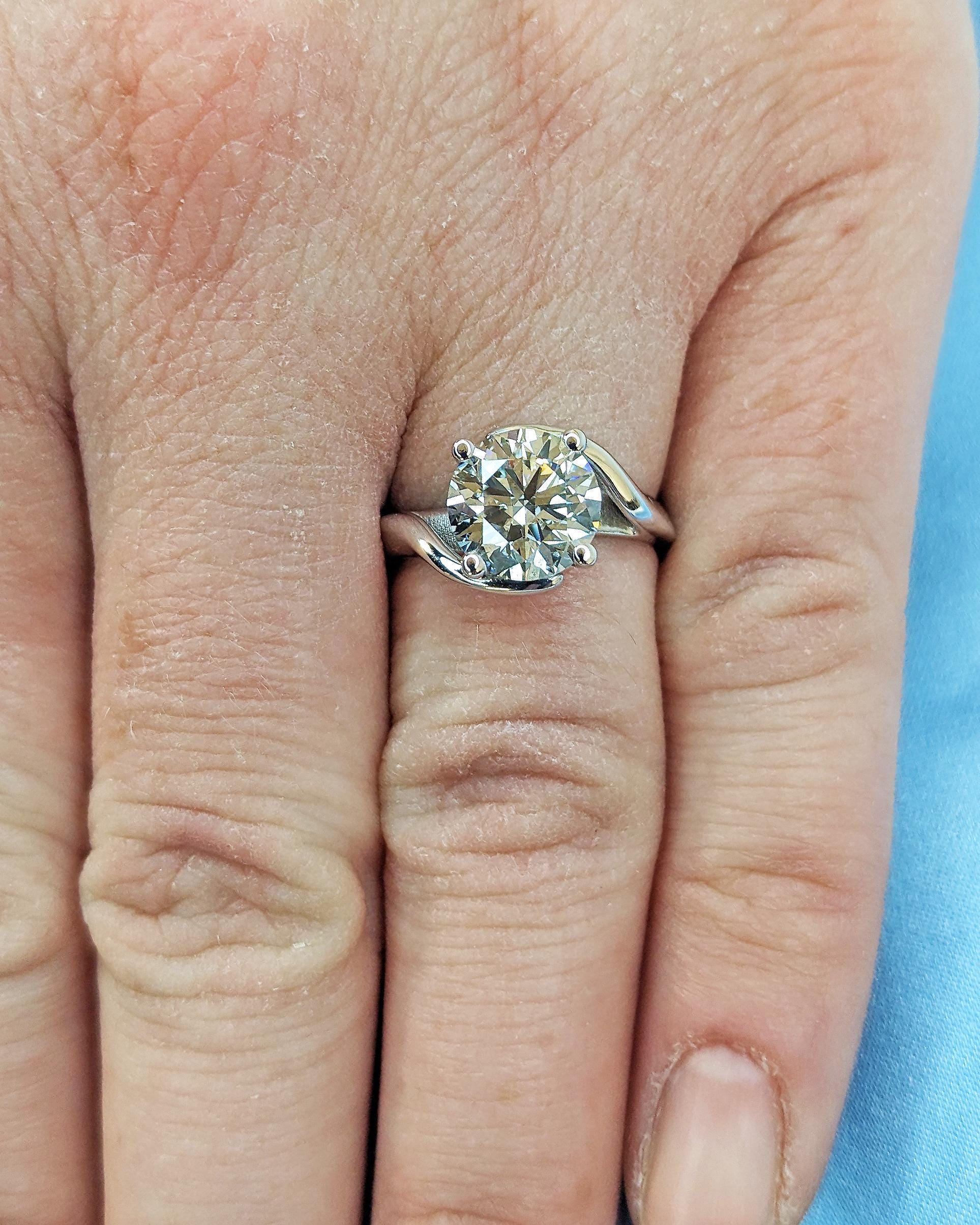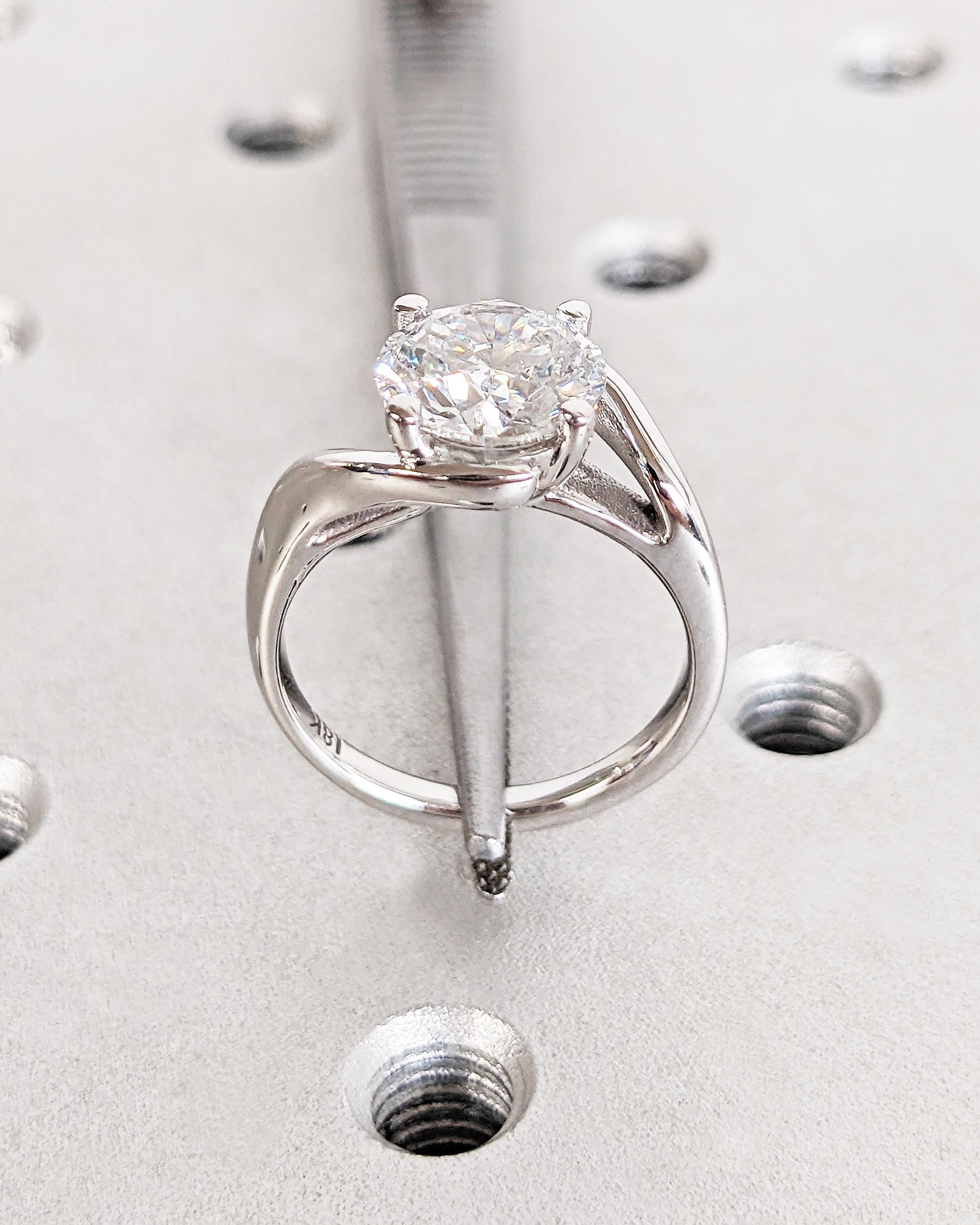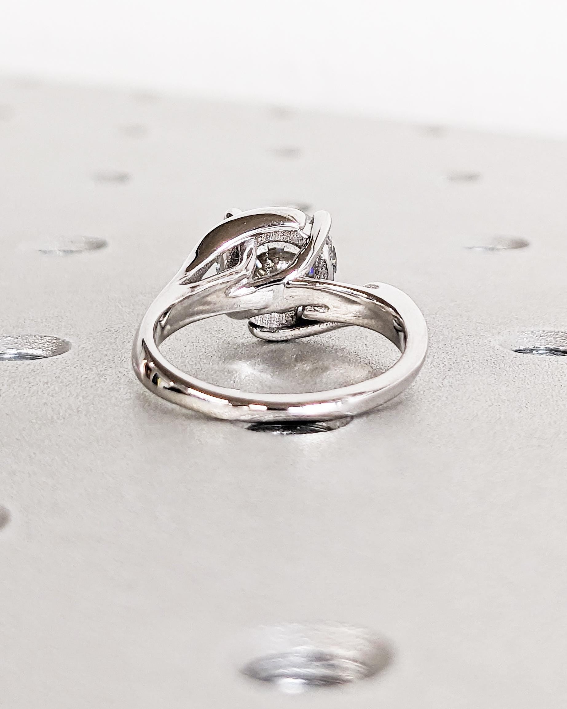 Ignite the spark of your love journey with our enchanting engagement ring, boasting a beautifully twisted band that encircles a pronged basket setting, unveiling the radiant allure of a lab-grown diamond.