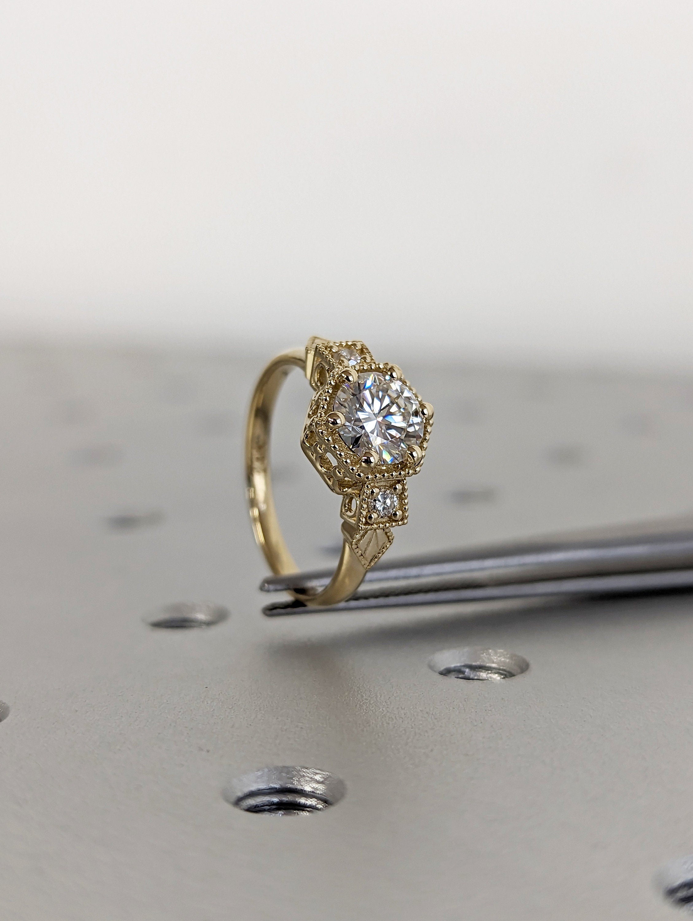 Vintage moissanite engagement ring 14k white gold diamond Art deco wedding ring diamond Vintage Filigree Ring engagement anniversary promise
