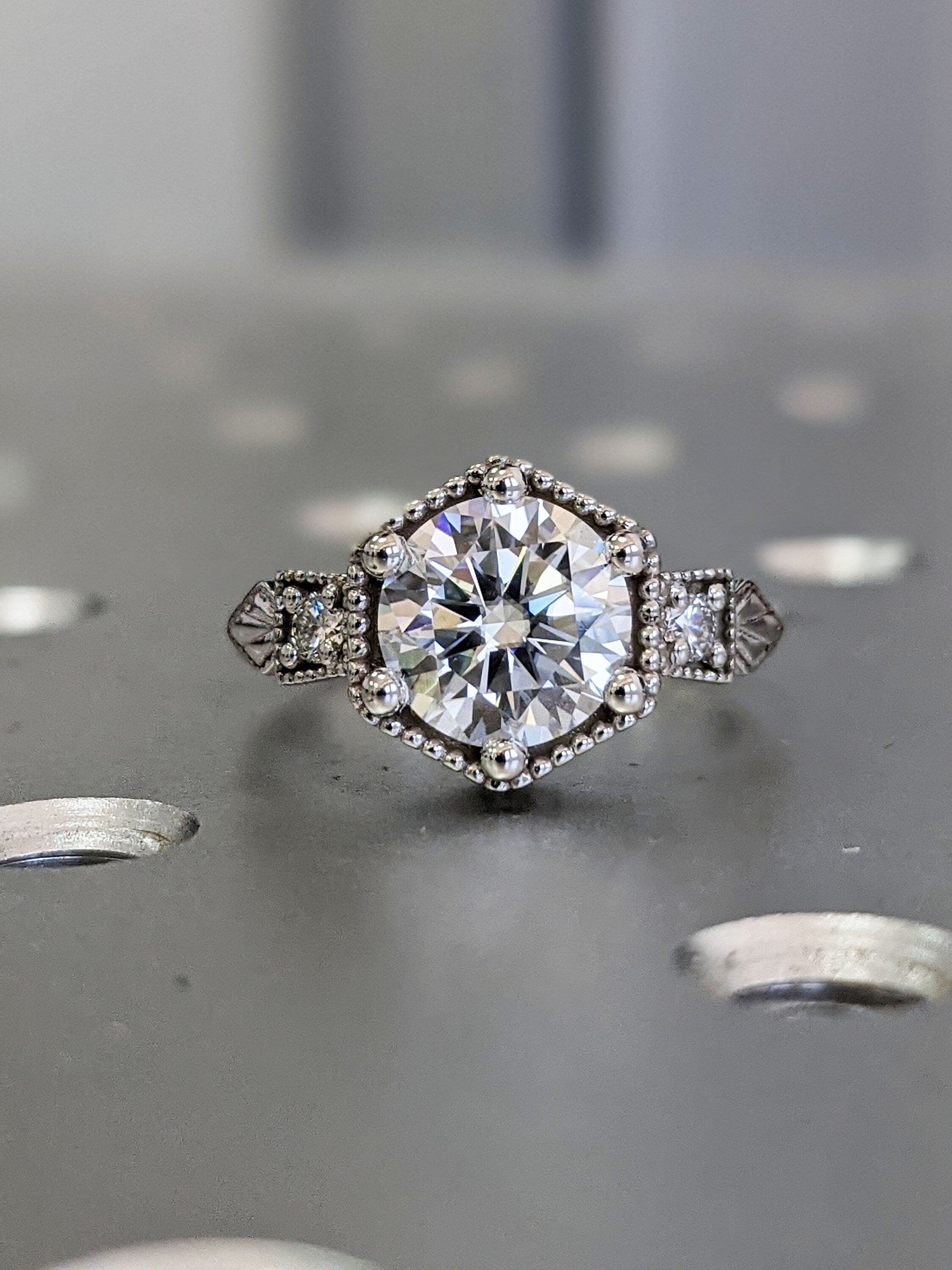 Vintage moissanite engagement ring 14k white gold diamond Art deco wedding ring diamond Vintage Filigree Ring engagement anniversary promise