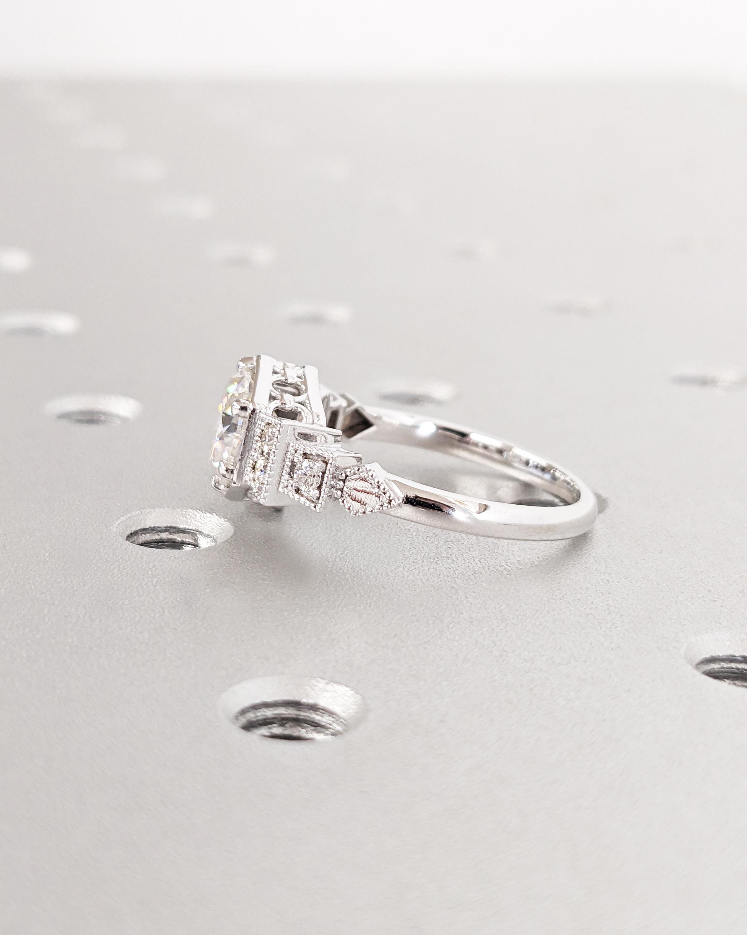 Vintage Moissanite Engagement Ring 14K White Gold Ring Gift Unique Antique Wedding Anniversary Promise Ring Vintage Filigree Engagement Ring