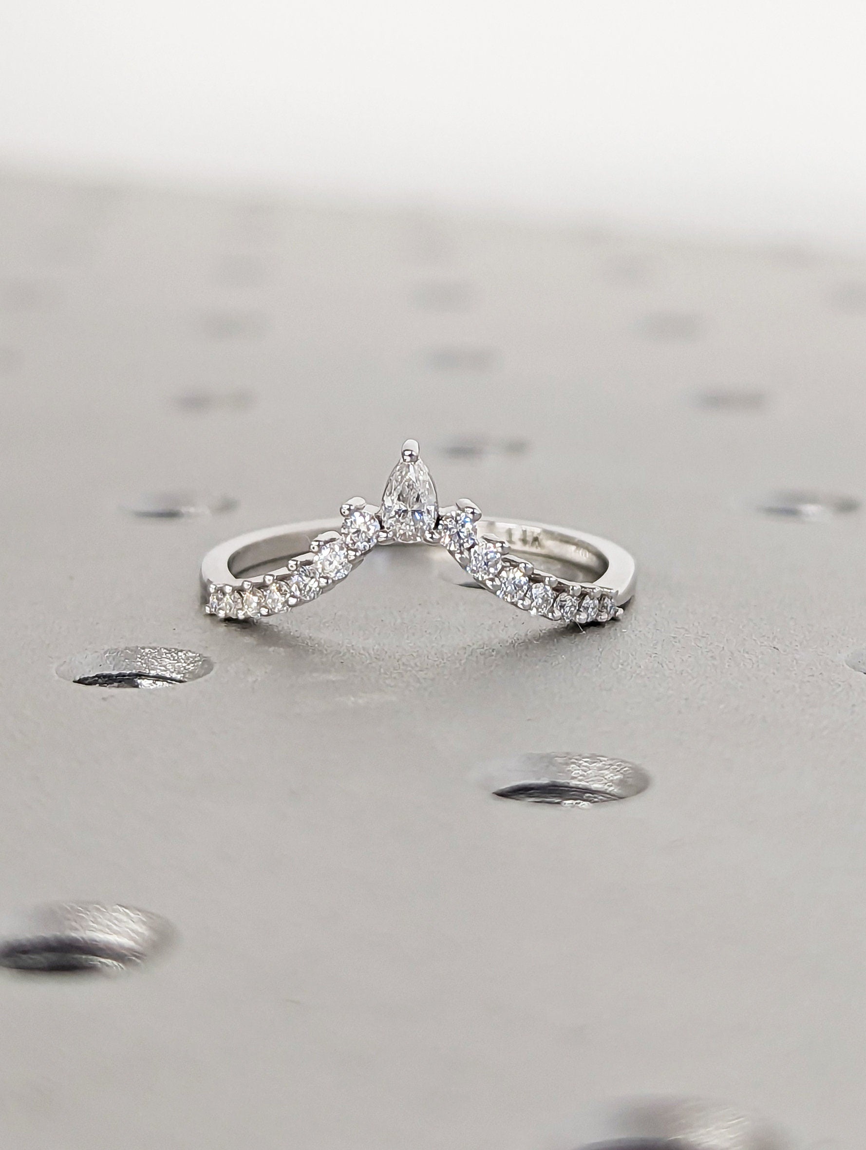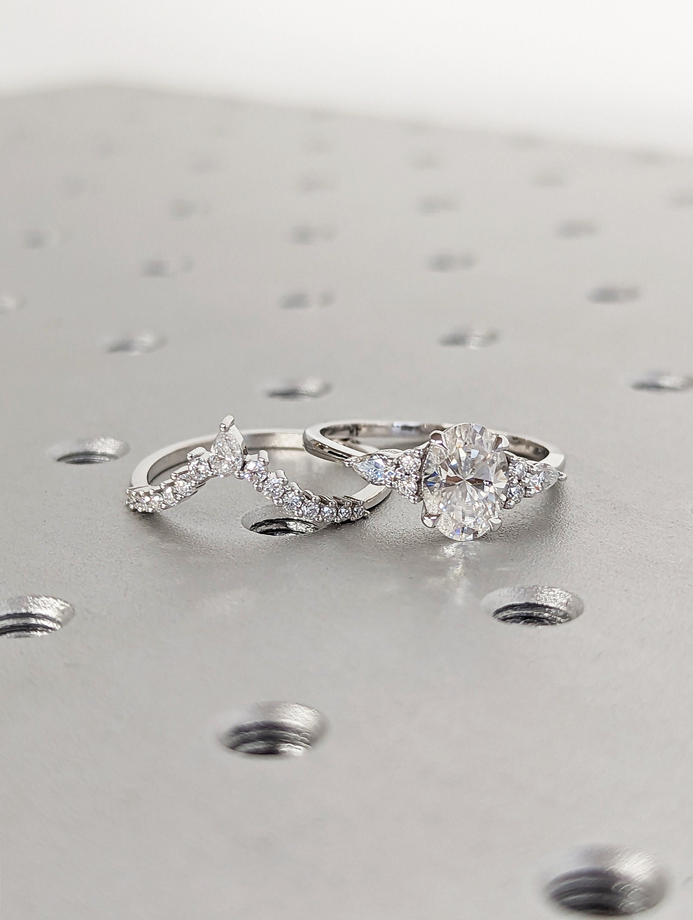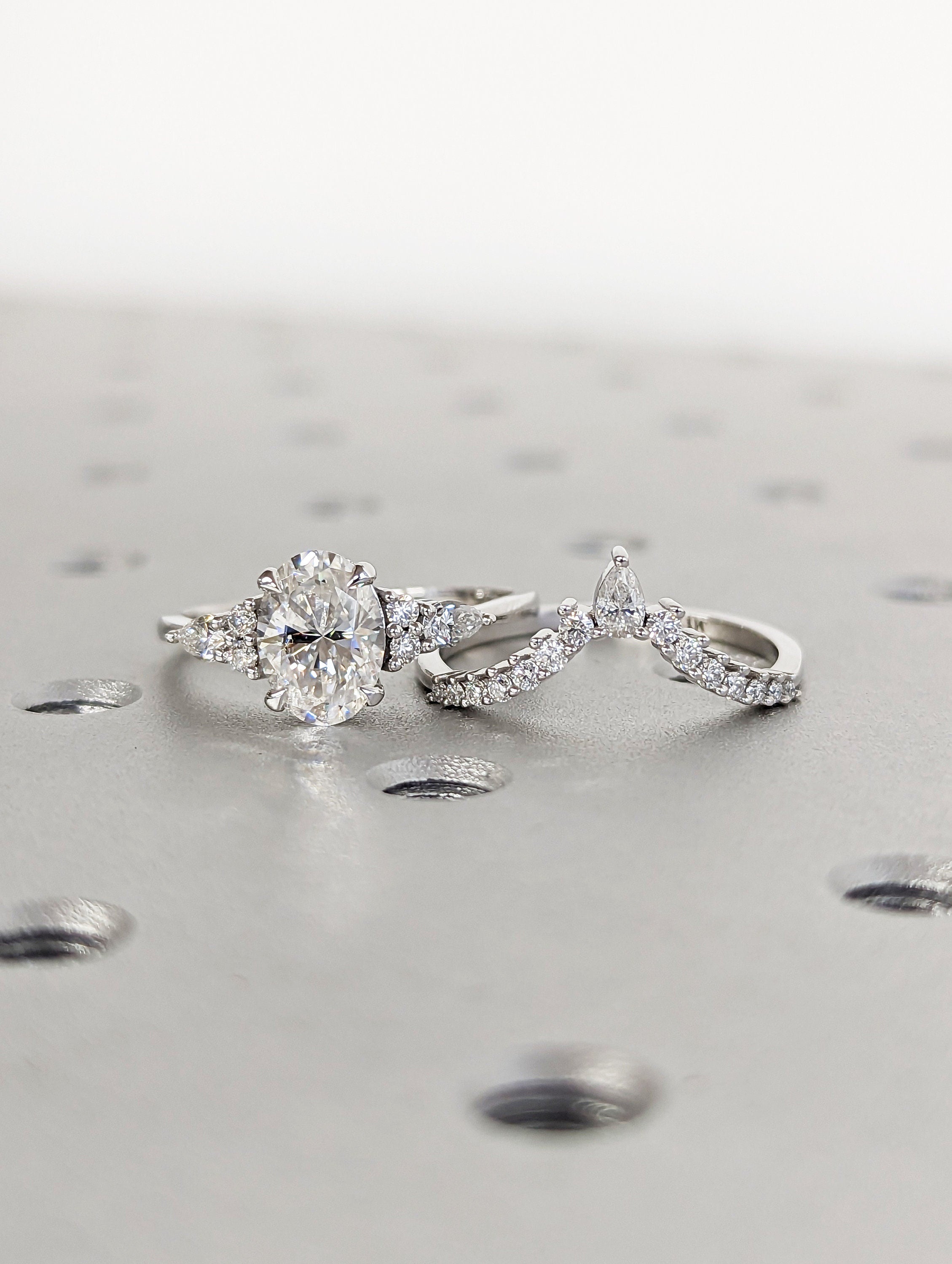 Vintage Moissanite Engagement Ring Set White Gold Pear Shaped Cluster Moissanite Bridal Set Art Deco Moissanite Wedding Ring Set Stackable