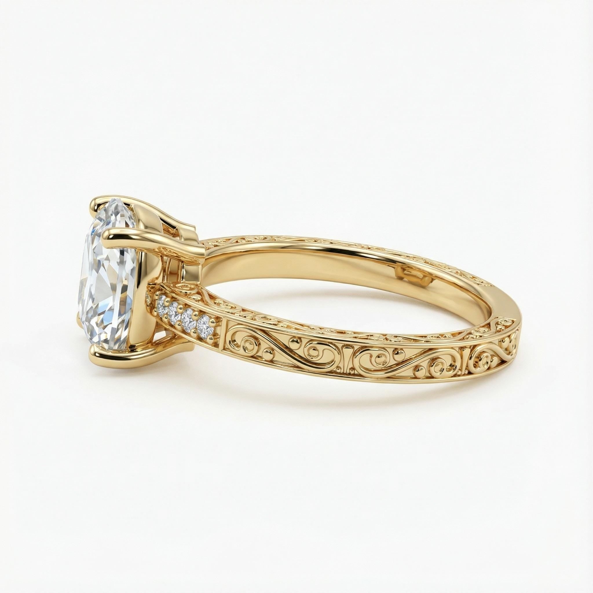 Vintage Old Mine cut Moissanite Engagement Ring | Long Cushion Cut Moissanite Promise Ring | 14K Yellow Gold Filigree Engraving Wedding Band