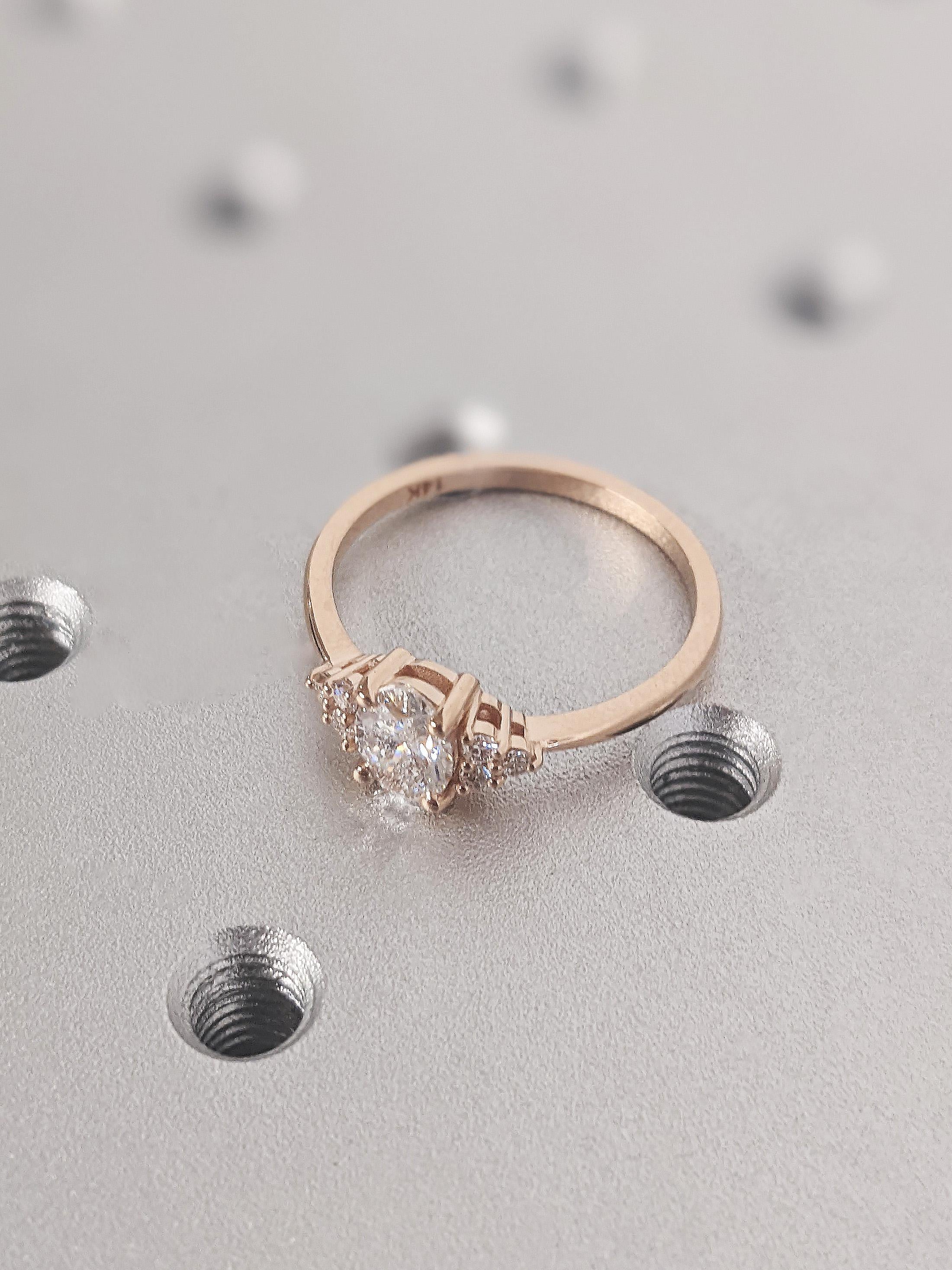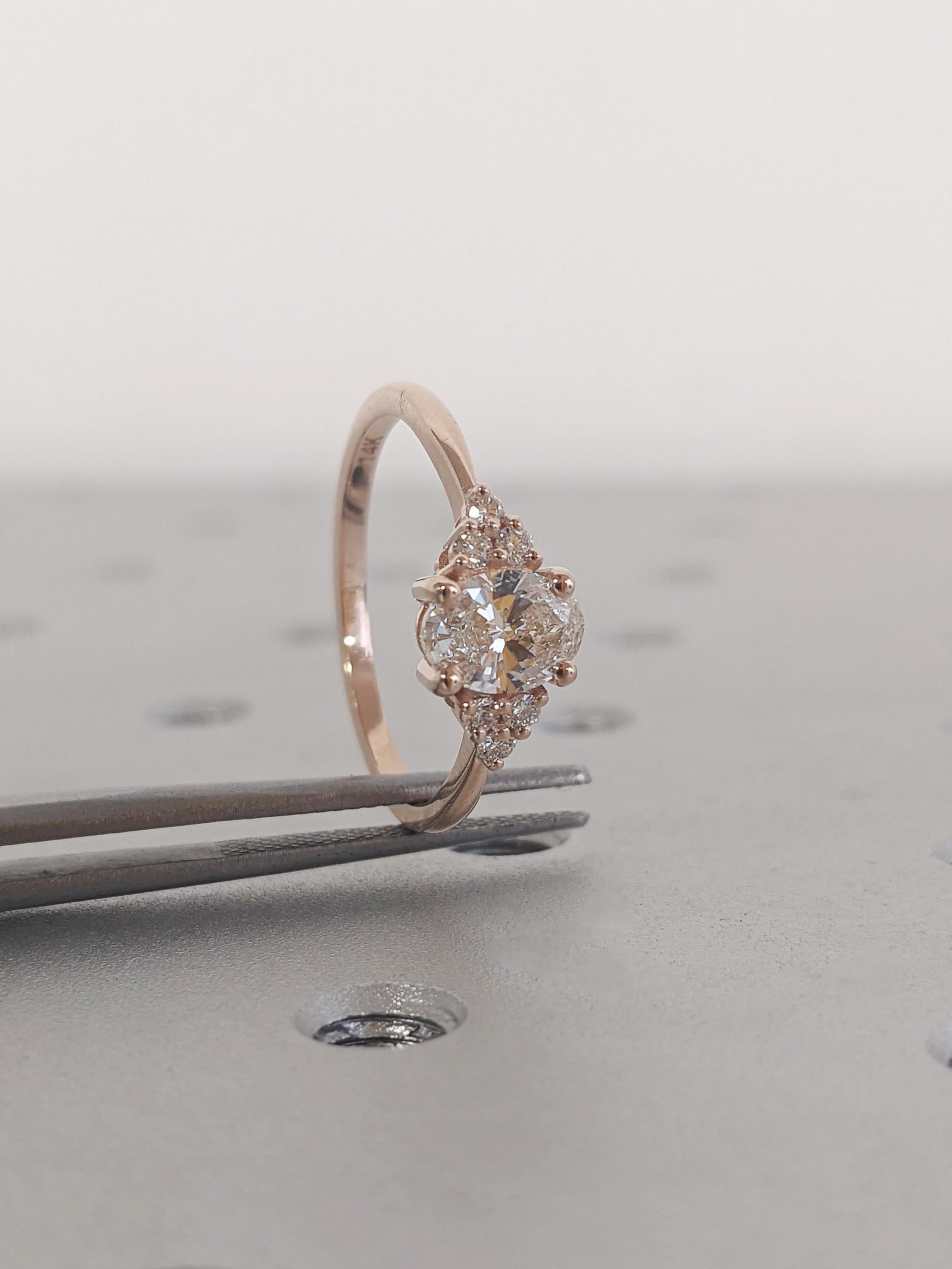 Vintage Oval Cut Moissanite Engagement Ring, Dainty 14K Solid Rose Gold Cluster Diamonds Wedding Band, Classic Art Deco White Diamond Ring