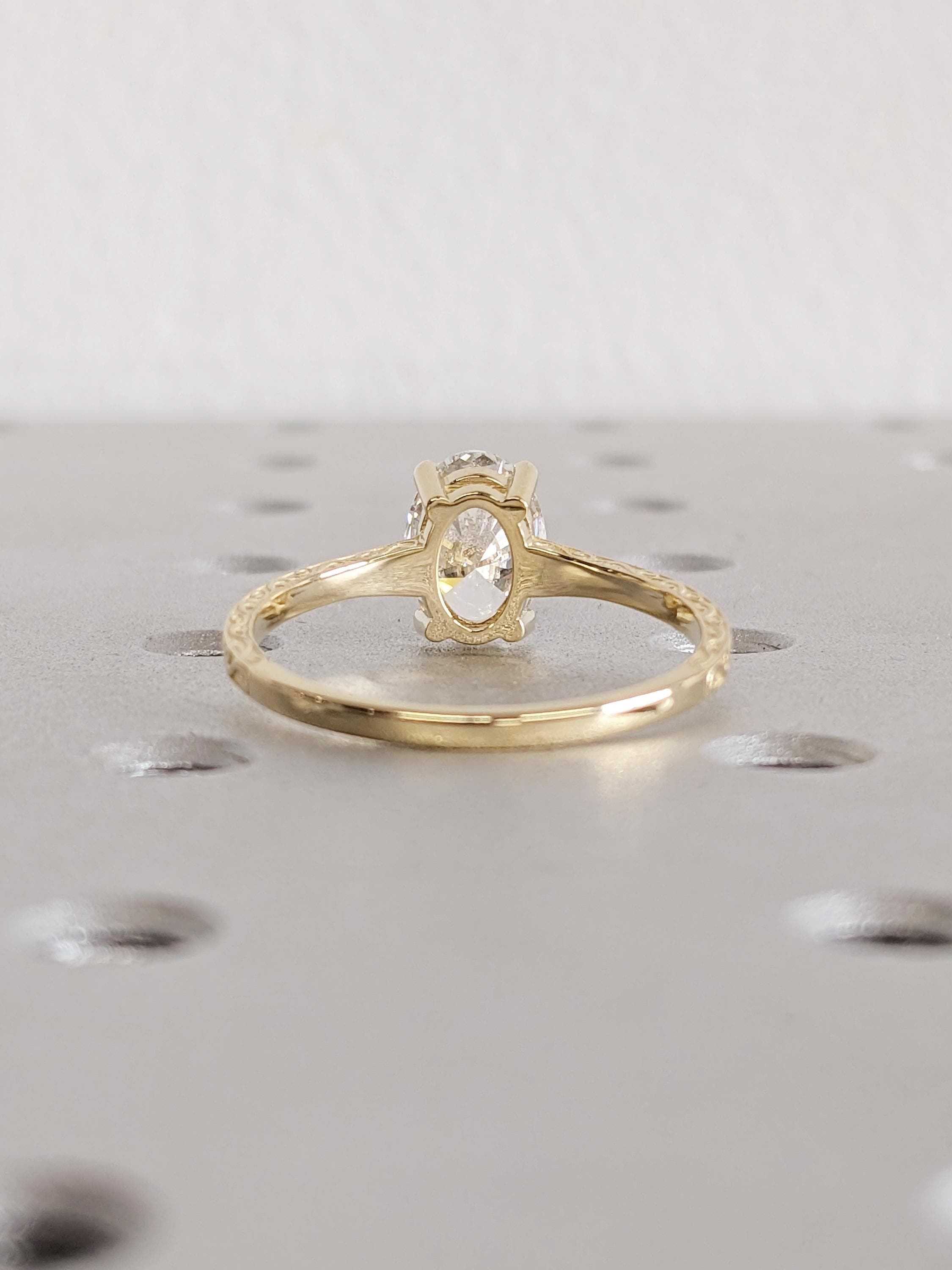 Vintage Oval Cut Moissanite Wedding Ring, 14K Yellow Gold Filigree Solitaire Ring, Women’s Engagement Ring