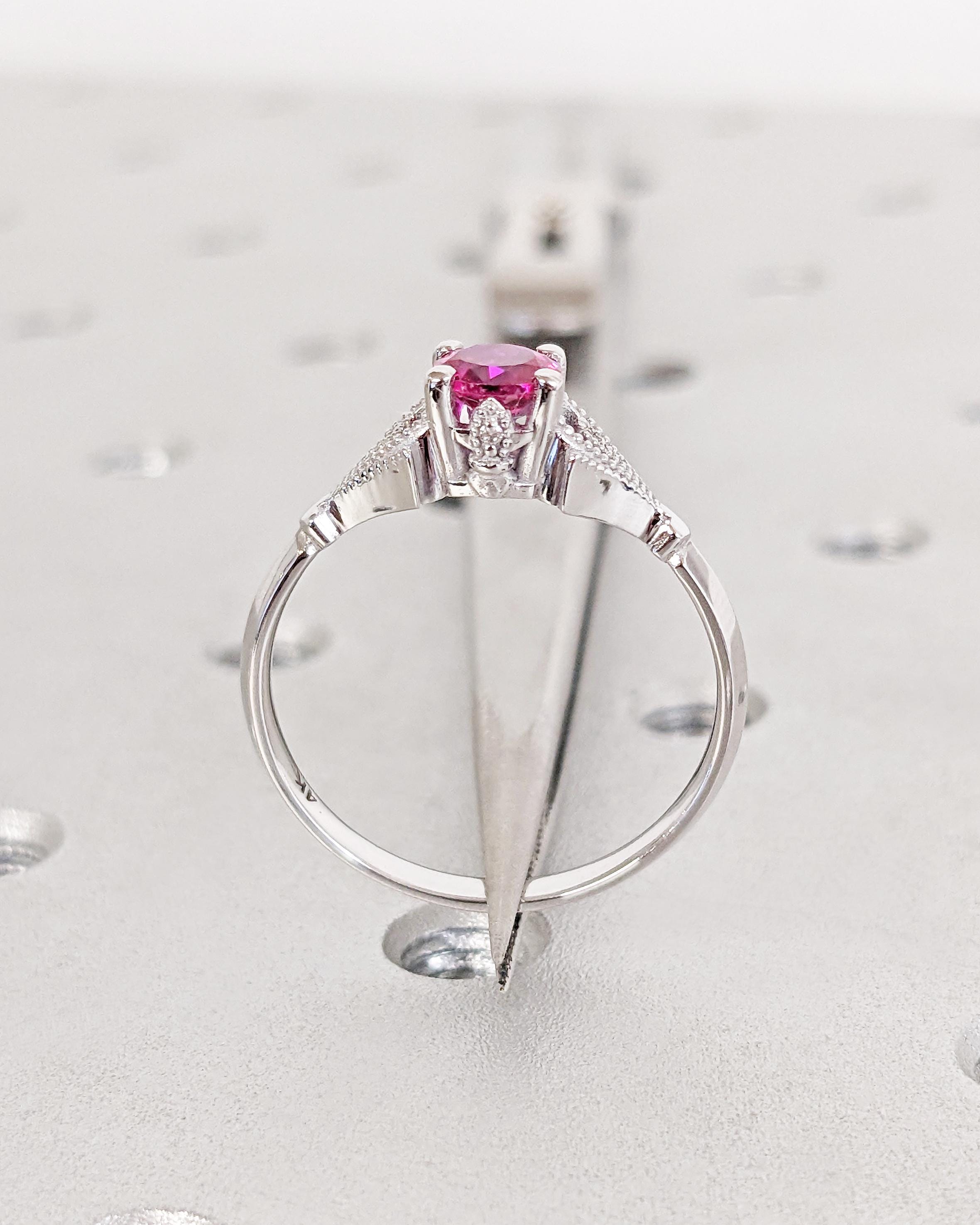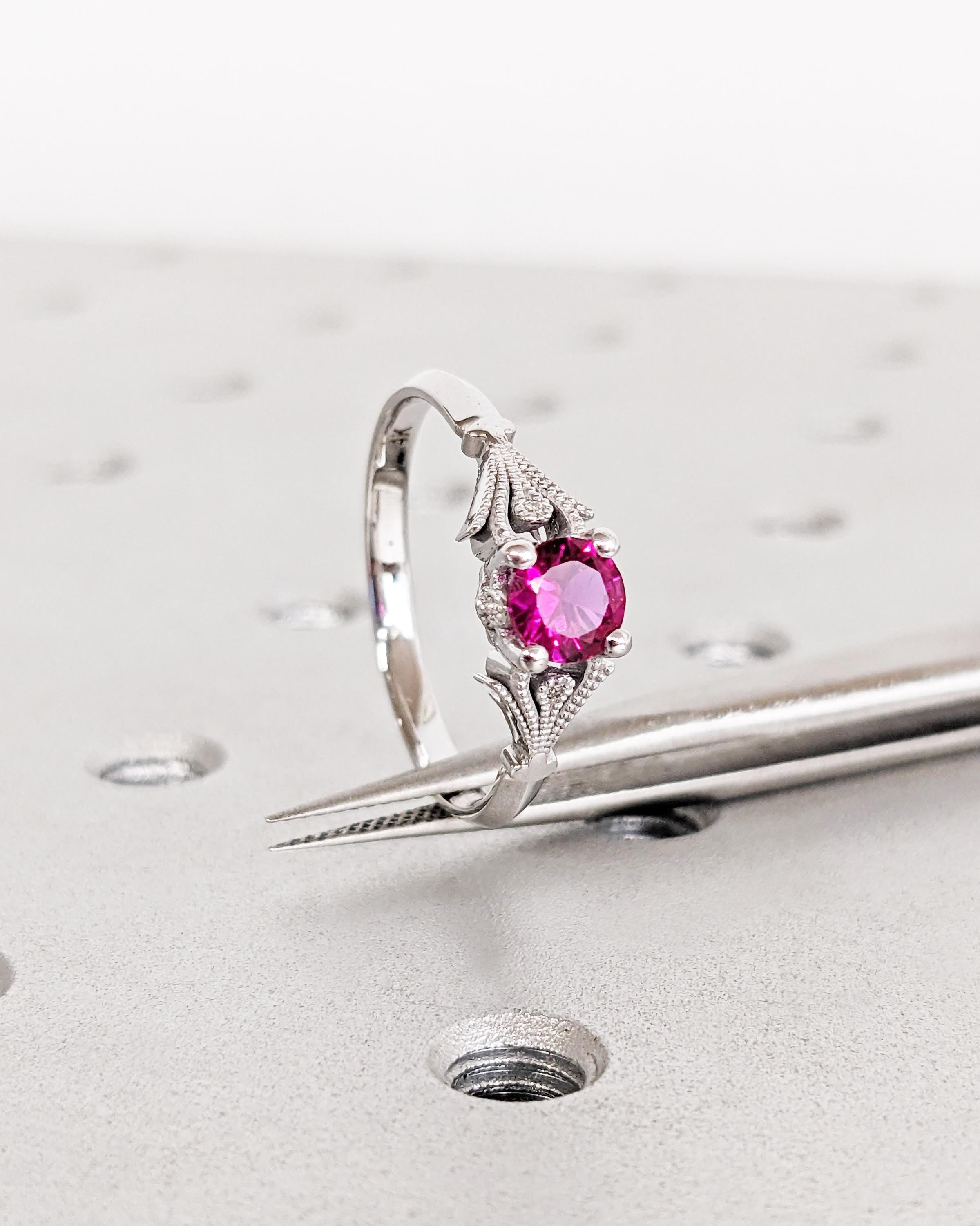Vintage Ruby Engagement Ring, 14k White Gold, Lab Ruby Engagement Ring, Antique Round cut Bridal Ring, Art Deco Ring, Milgrain Wedding Ring