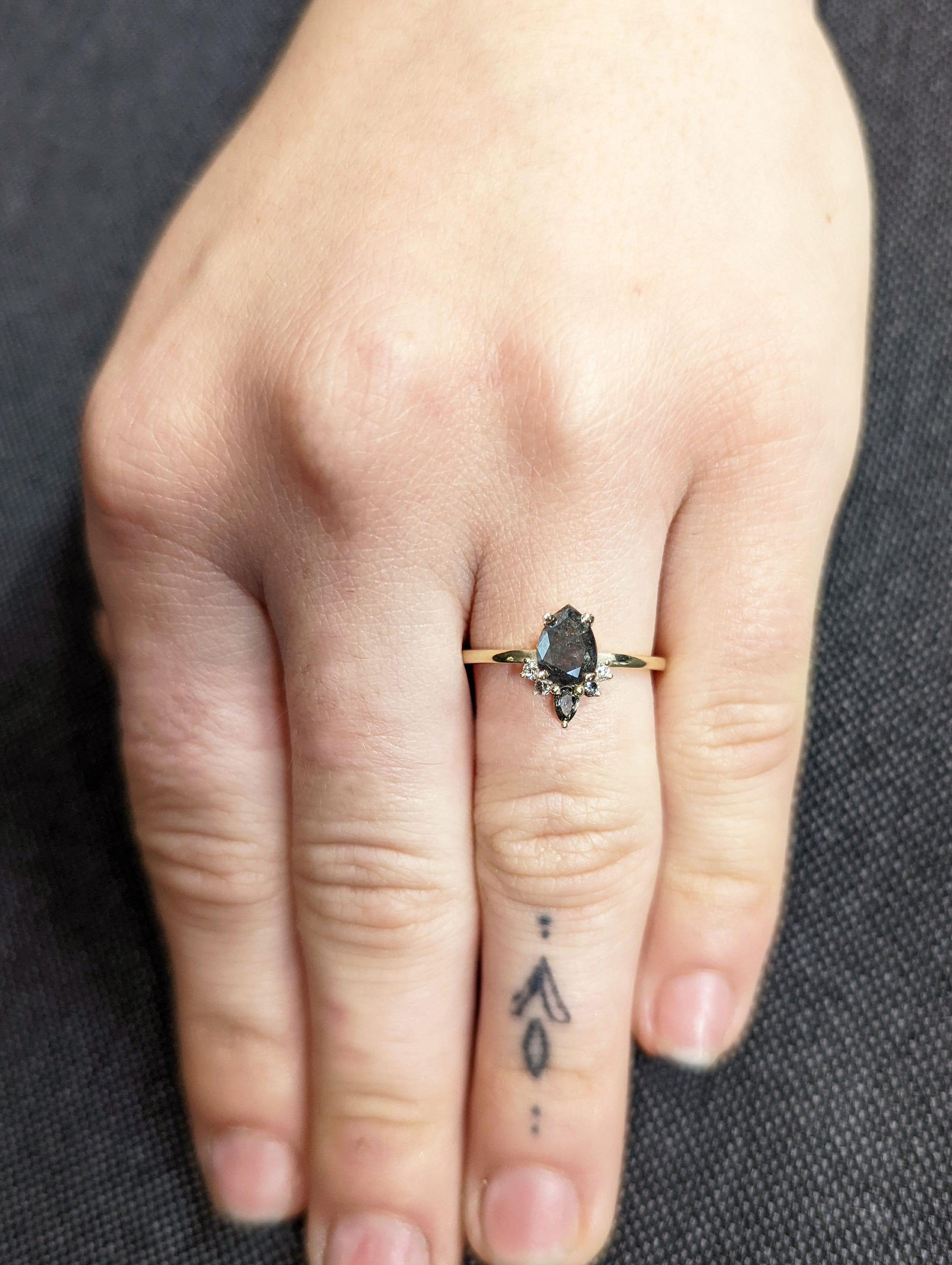ONE-OF-A-KIND Pear salt and pepper diamond, a diamond ring that is just pure uniqueness, nothing that has ever been seen before.