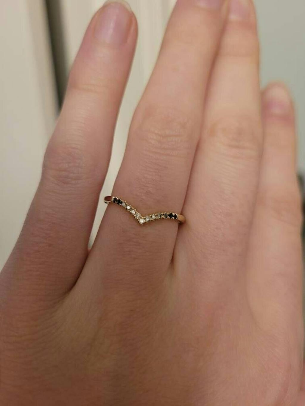 A super delicate and thin setting, curved a row of diamonds ,a thin band of 1.6mm width, make this ring a true stunner!