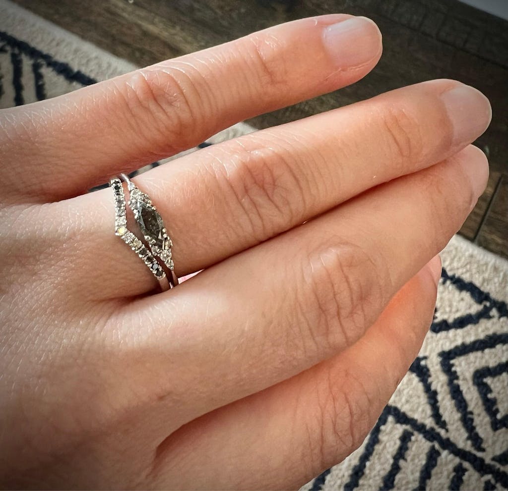 Vintage Salt and Pepper Diamond Wedding Band Half Eternity 14K 18K Gold Gradient Ombré White Gray Black Ring Stacking