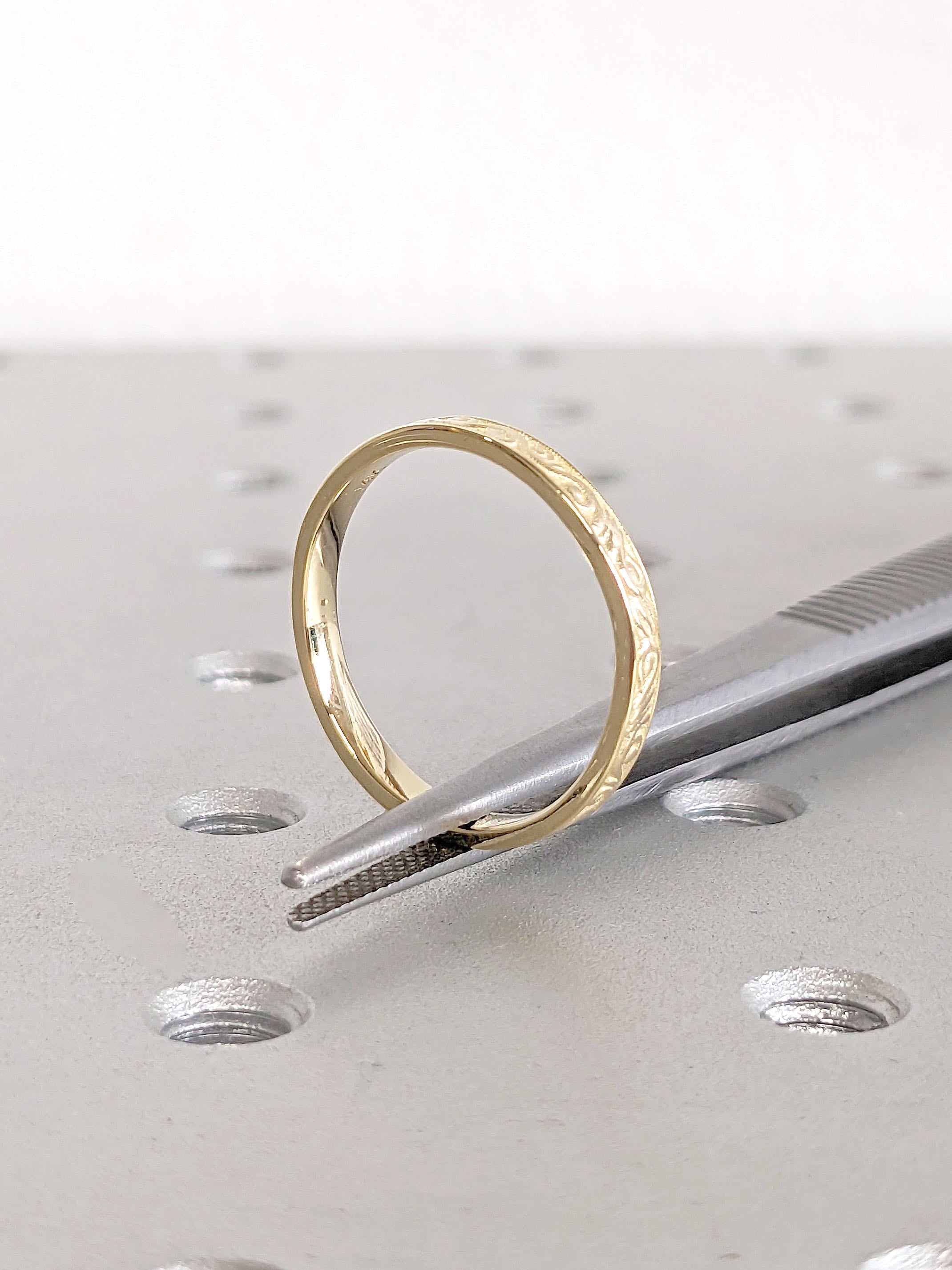 Vintage Wedding Ring for Her | Hand Engraved Filigree Yellow Gold Band | Curved Wedding Ring | Antique Ring | 2.5mm Gold Band Stacking Ring