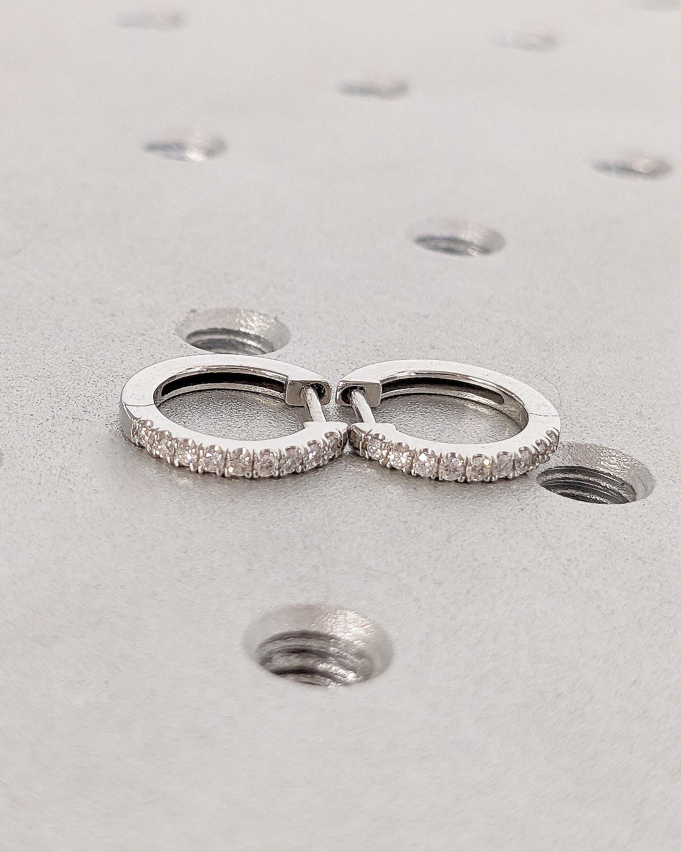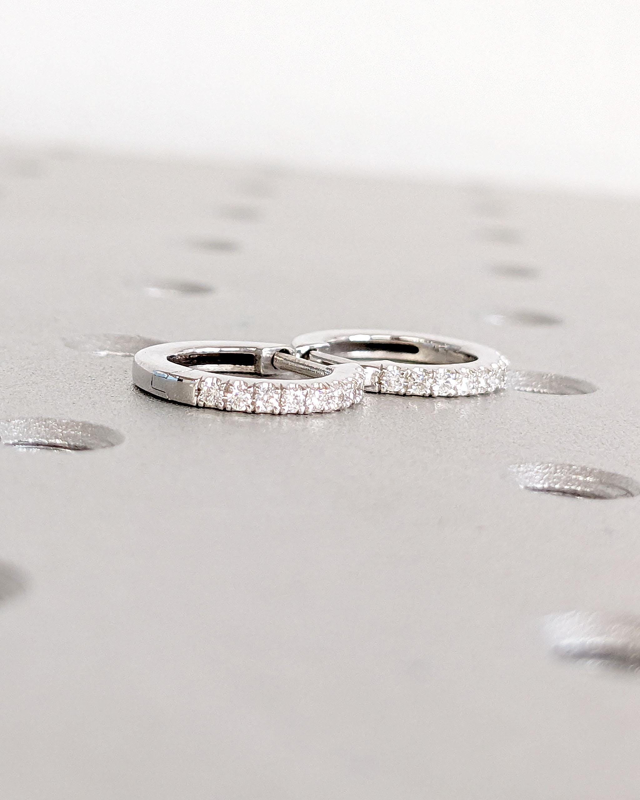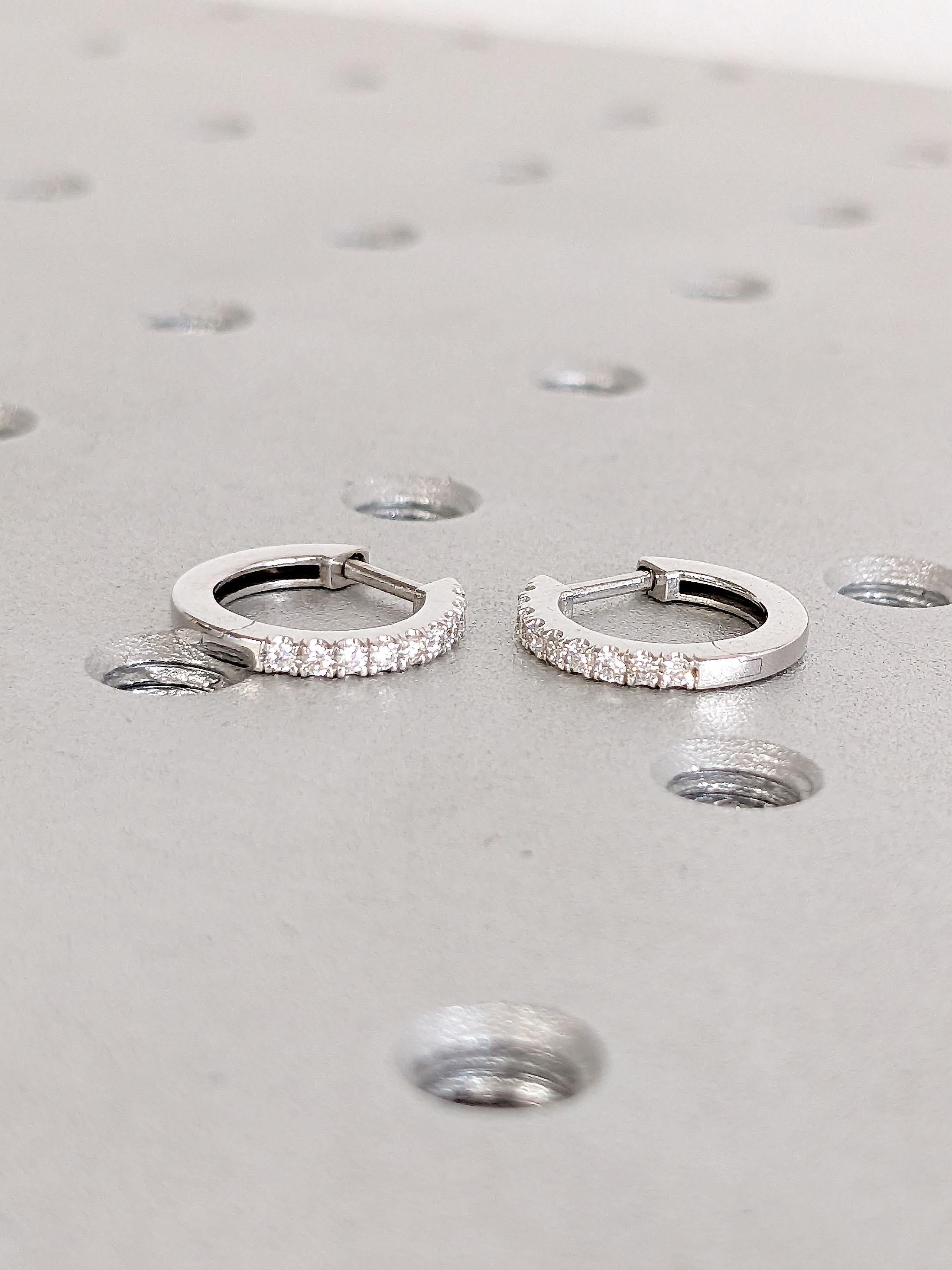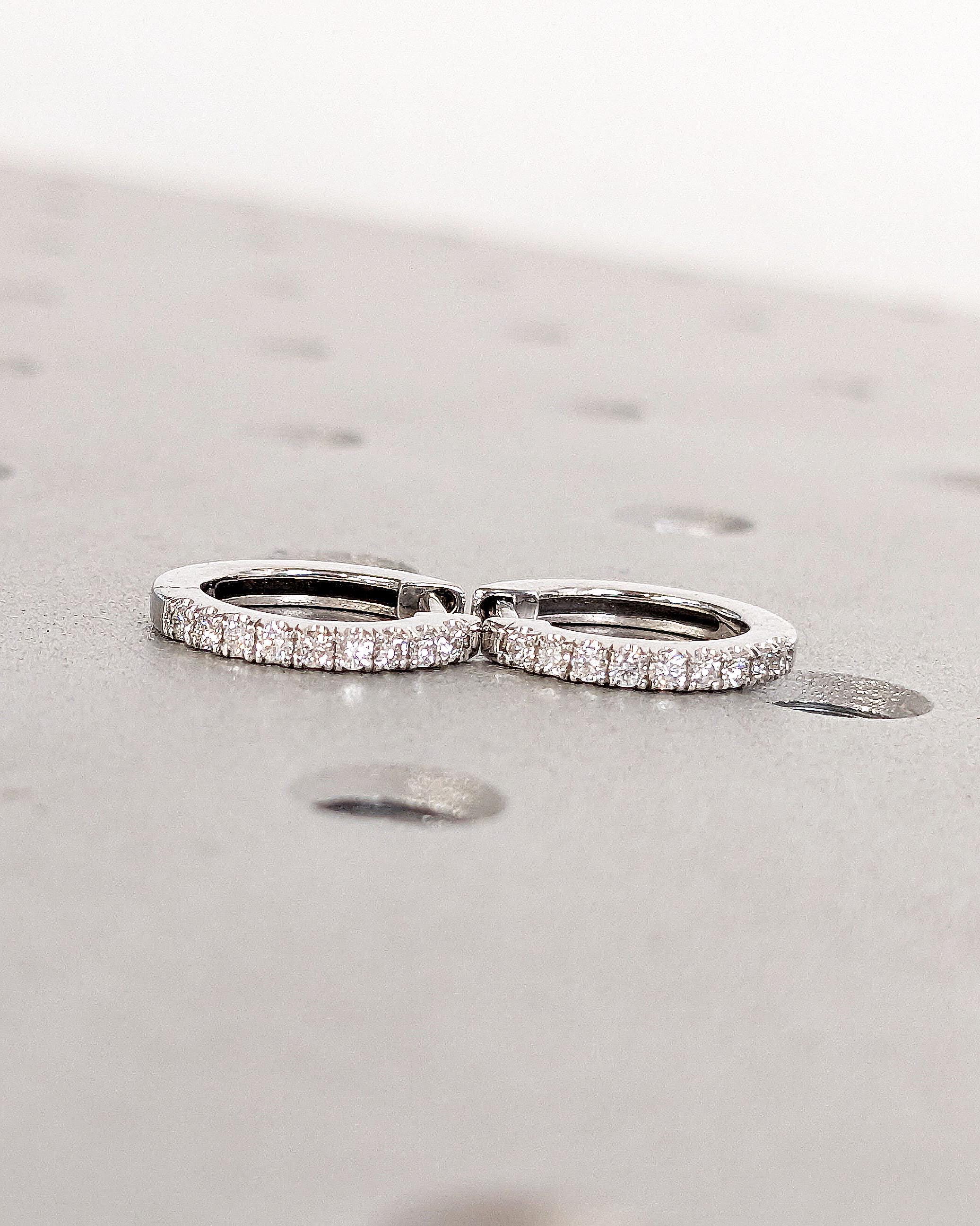 Simple and luxurious, this mini huggie hoop earrings, paved with a row of round gemstones in your choice of natural diamonds, lab diamonds or moissanites. Suitable for everyday wear for an understated elegant style, and its sparkles fit for any special occasion such as engagement or wedding.