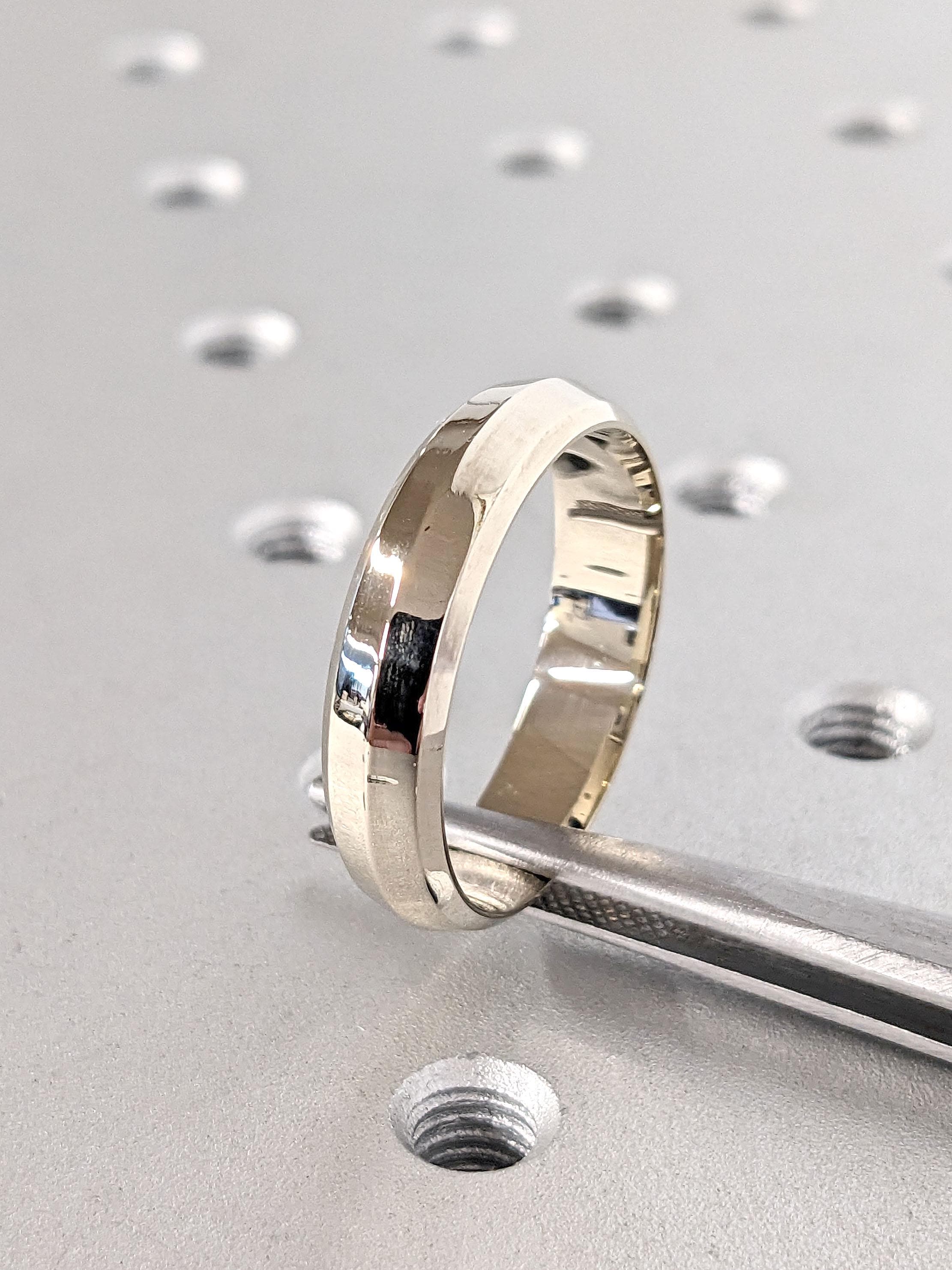 White Gold Men Unique Wedding Band with Beveled Edge | Engagement Band - Mens 14k Gold Ring, Gift for Him | Everyday Wear Simple Gold Ring