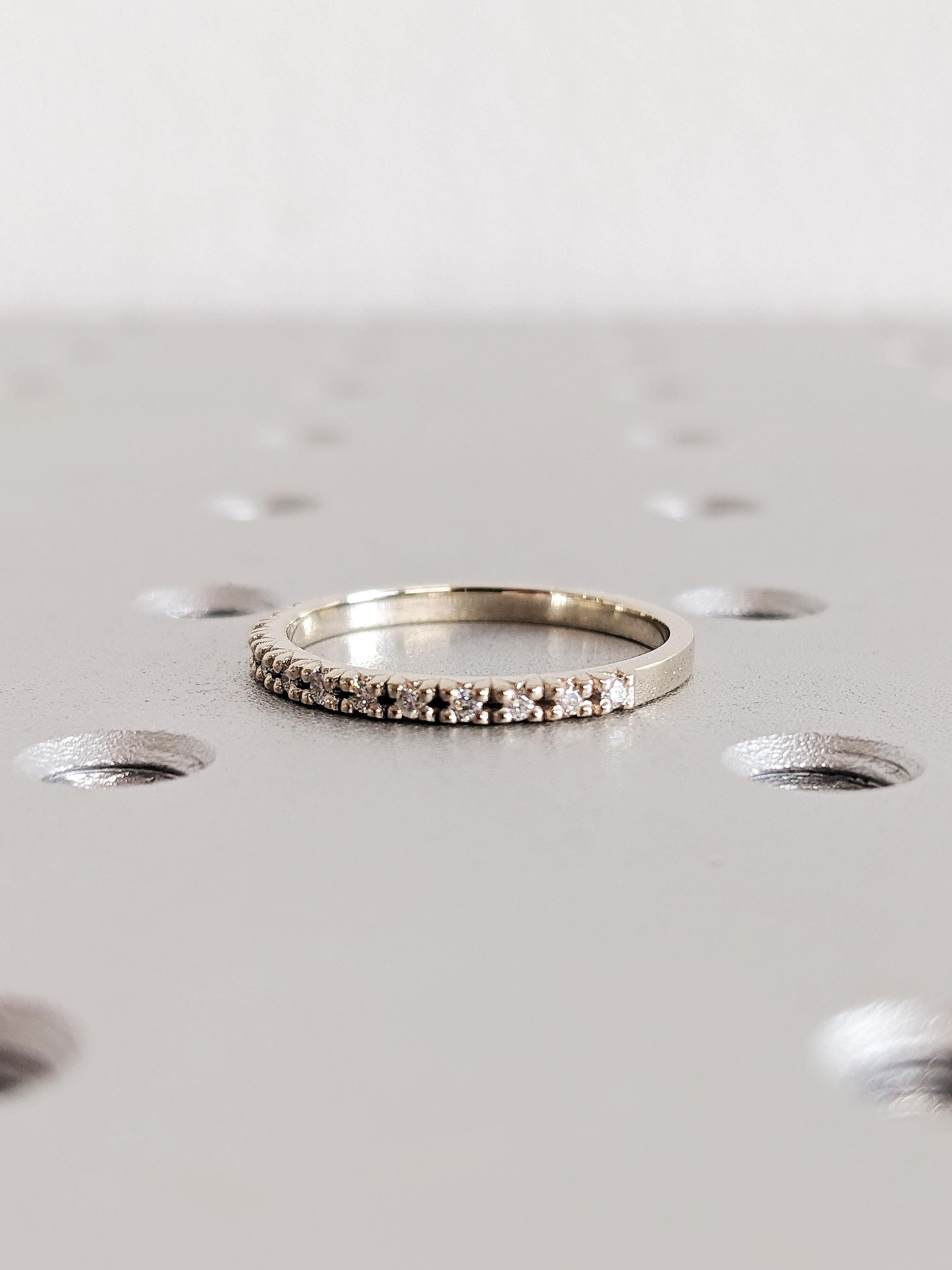 A delicate and timeless piece designed to capture love in its simplest form. This matching ring features dainty pavé diamonds that shimmer beautifully in any light. Perfect as an engagement ring, stacking band or everyday piece, it offers a graceful balance of elegance and modern style.